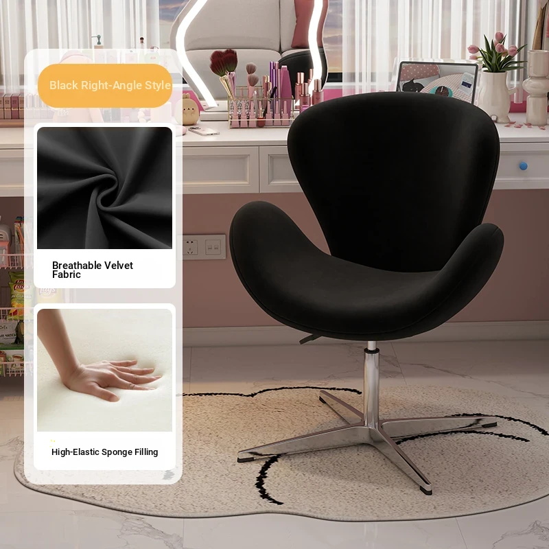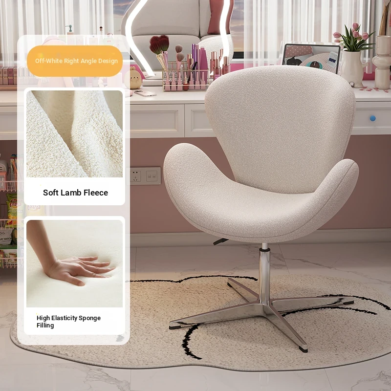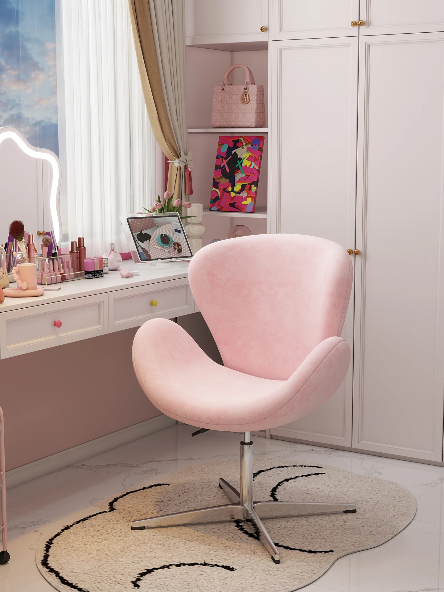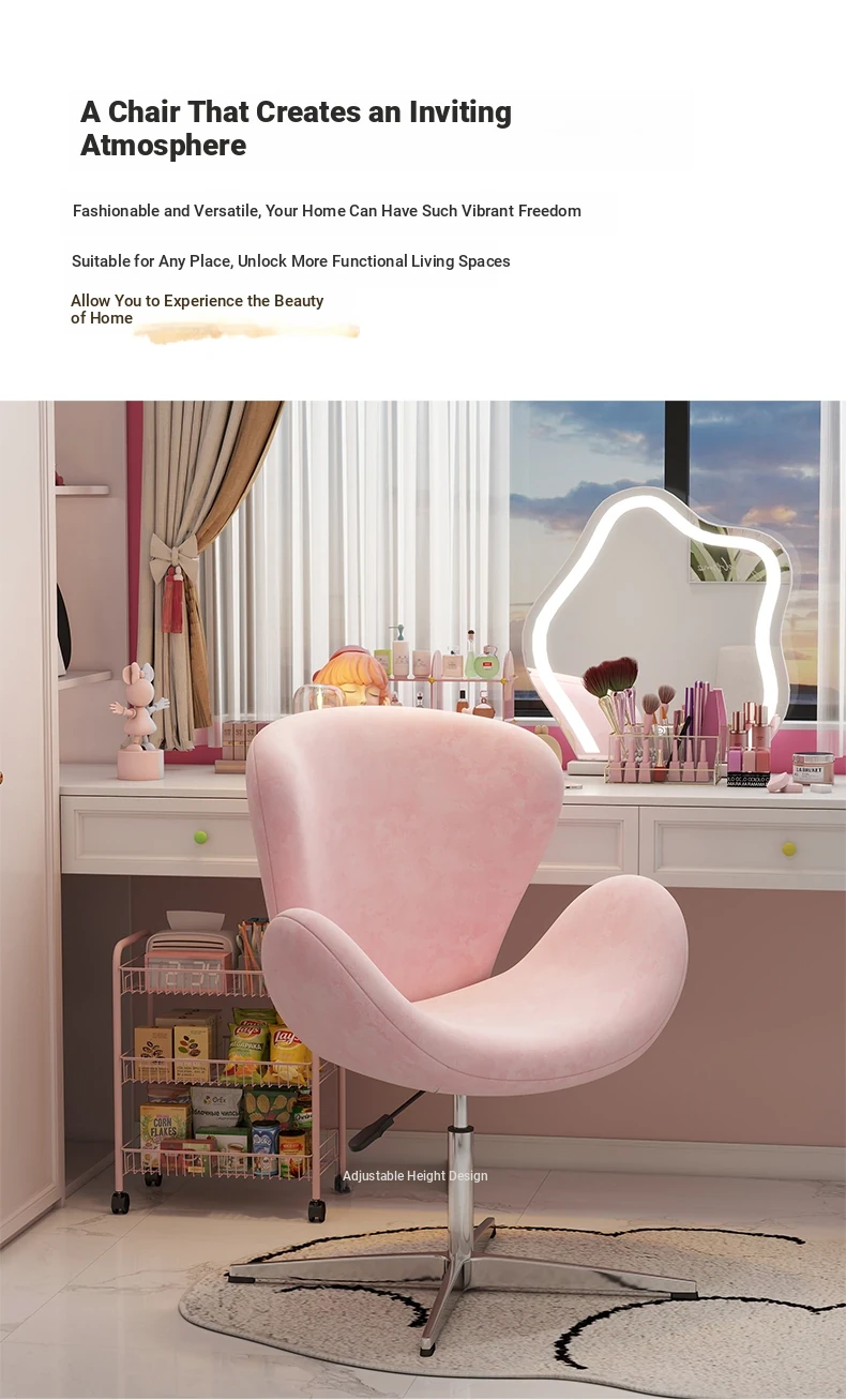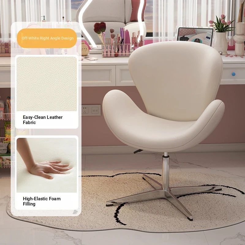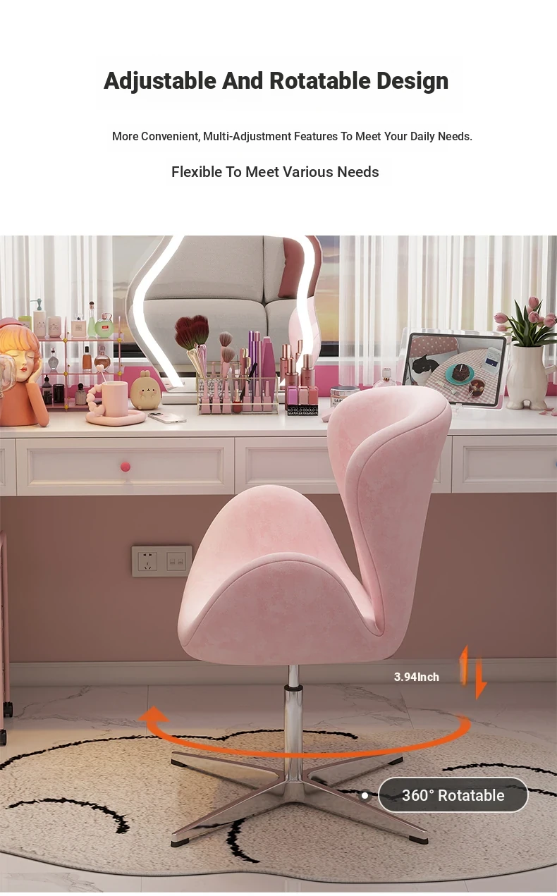 Stylish Adjustable Makeup Chair for Home Bedroom - Swivel with Backrest, Perfect for Vanity or Desk Use, Elegant Swan Design