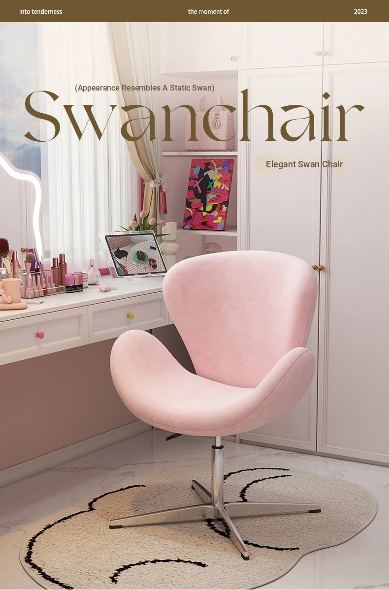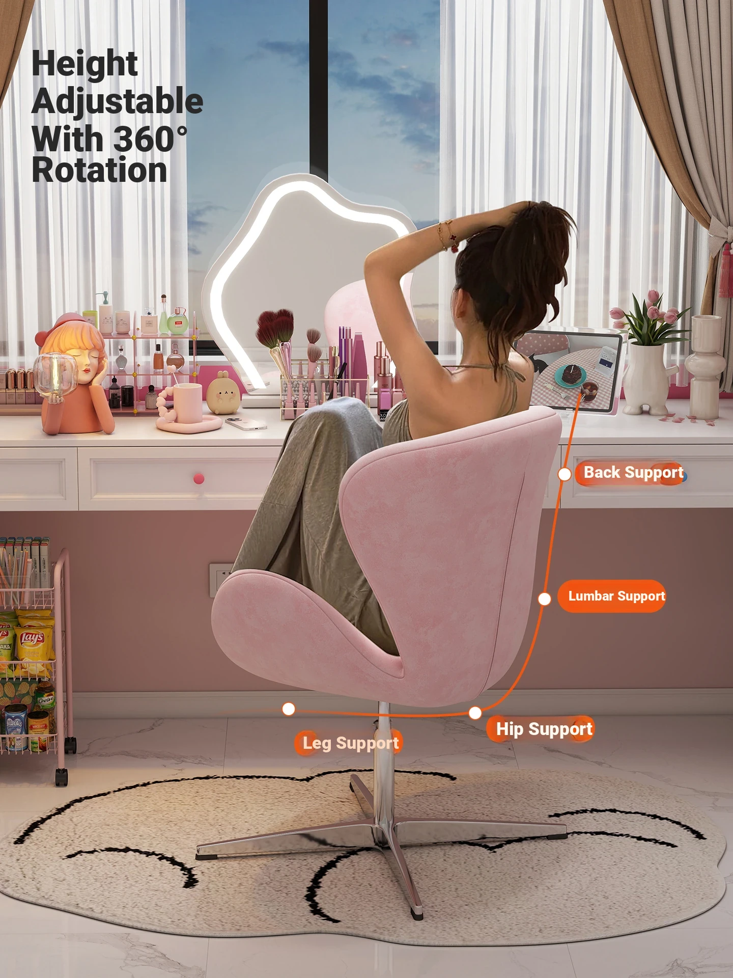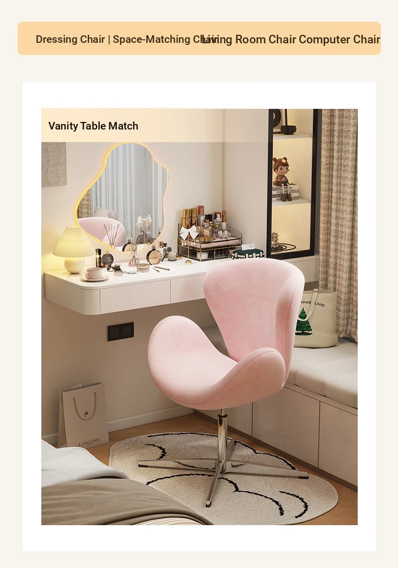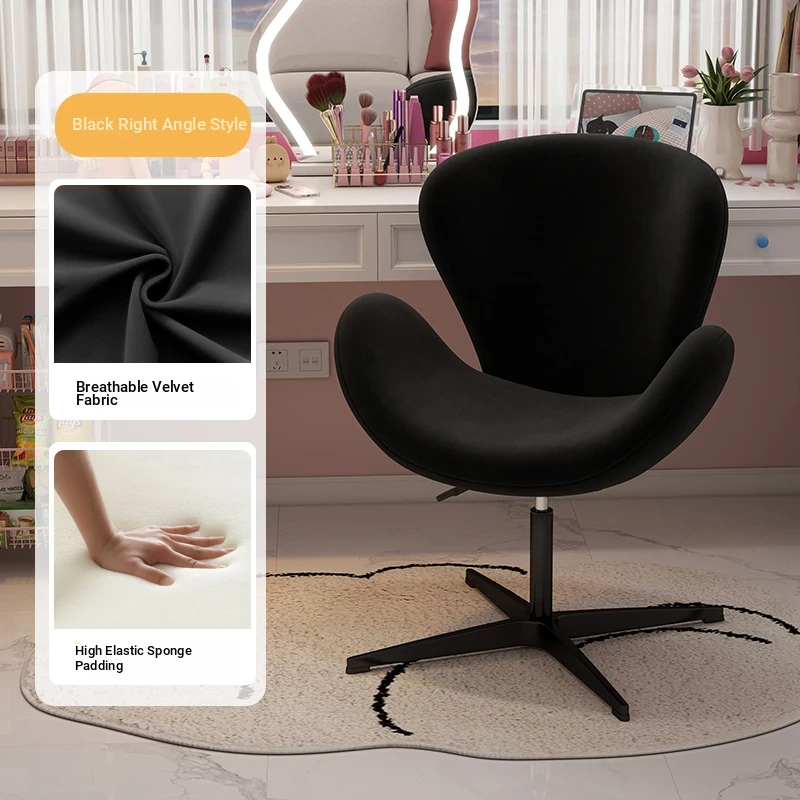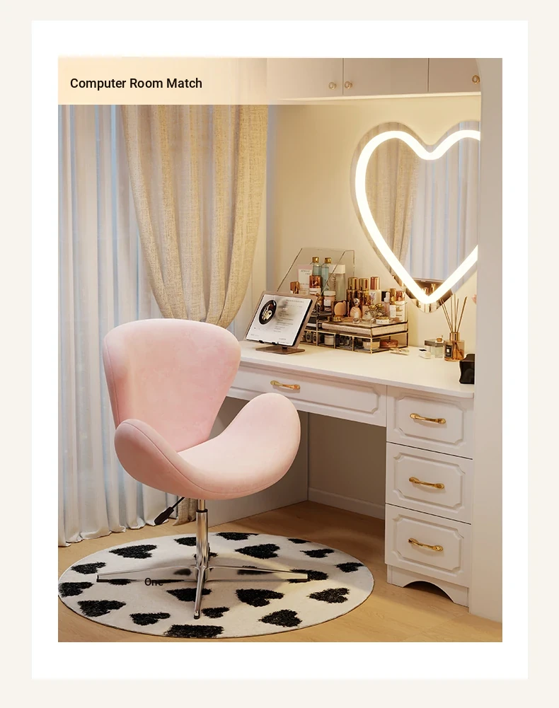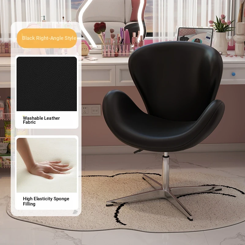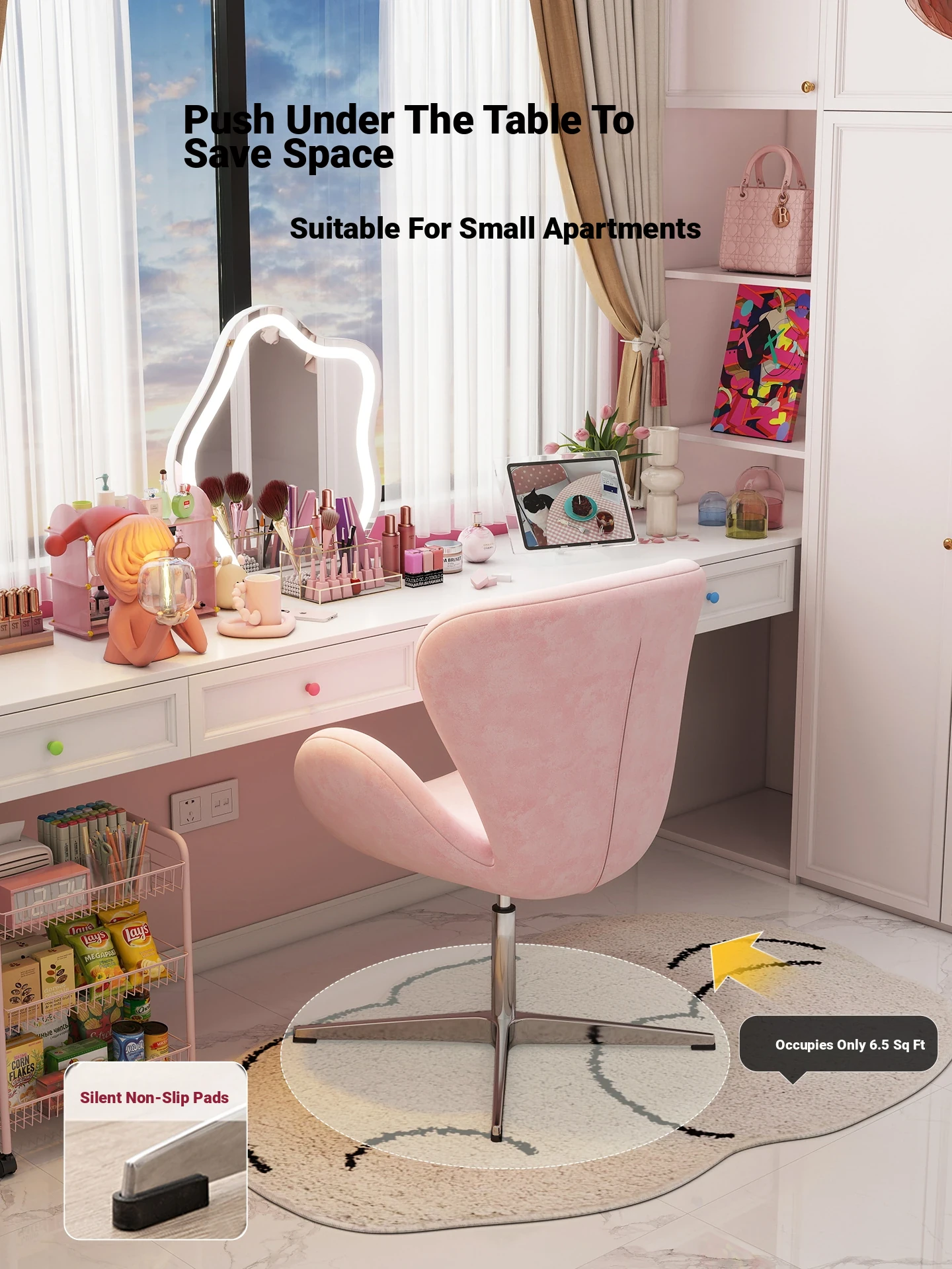 Stylish Adjustable Makeup Chair for Home Bedroom - Swivel with Backrest, Perfect for Vanity or Desk Use, Elegant Swan Design