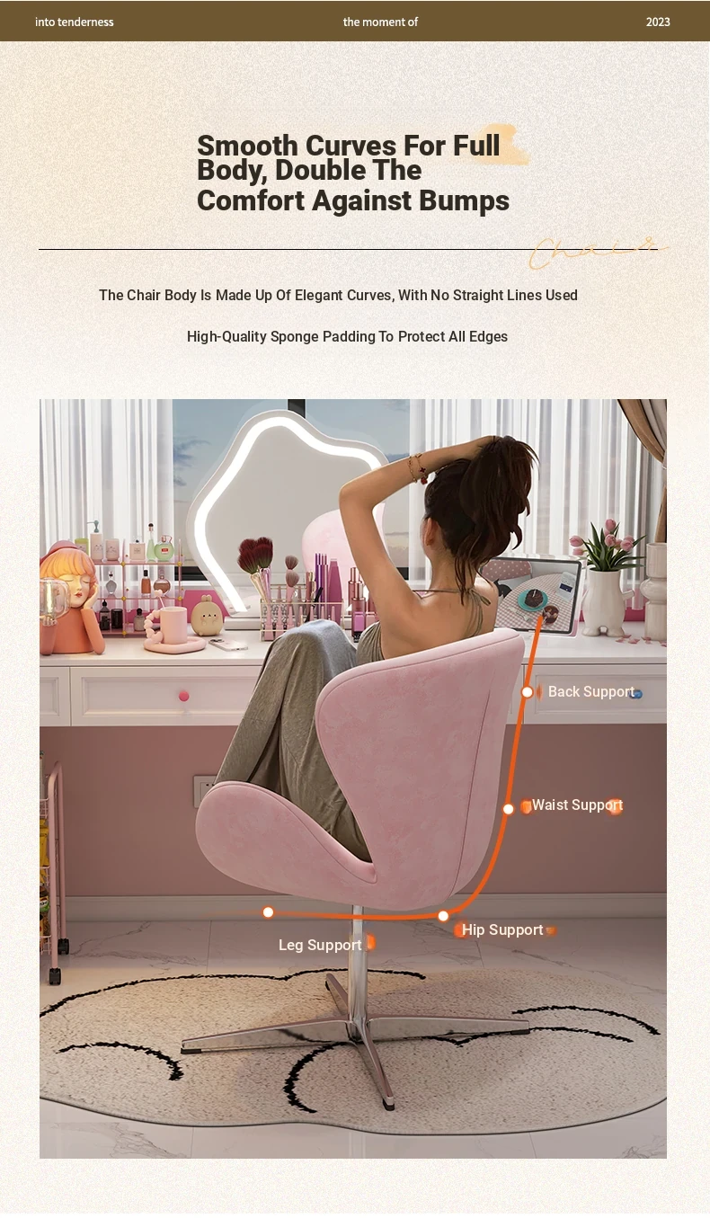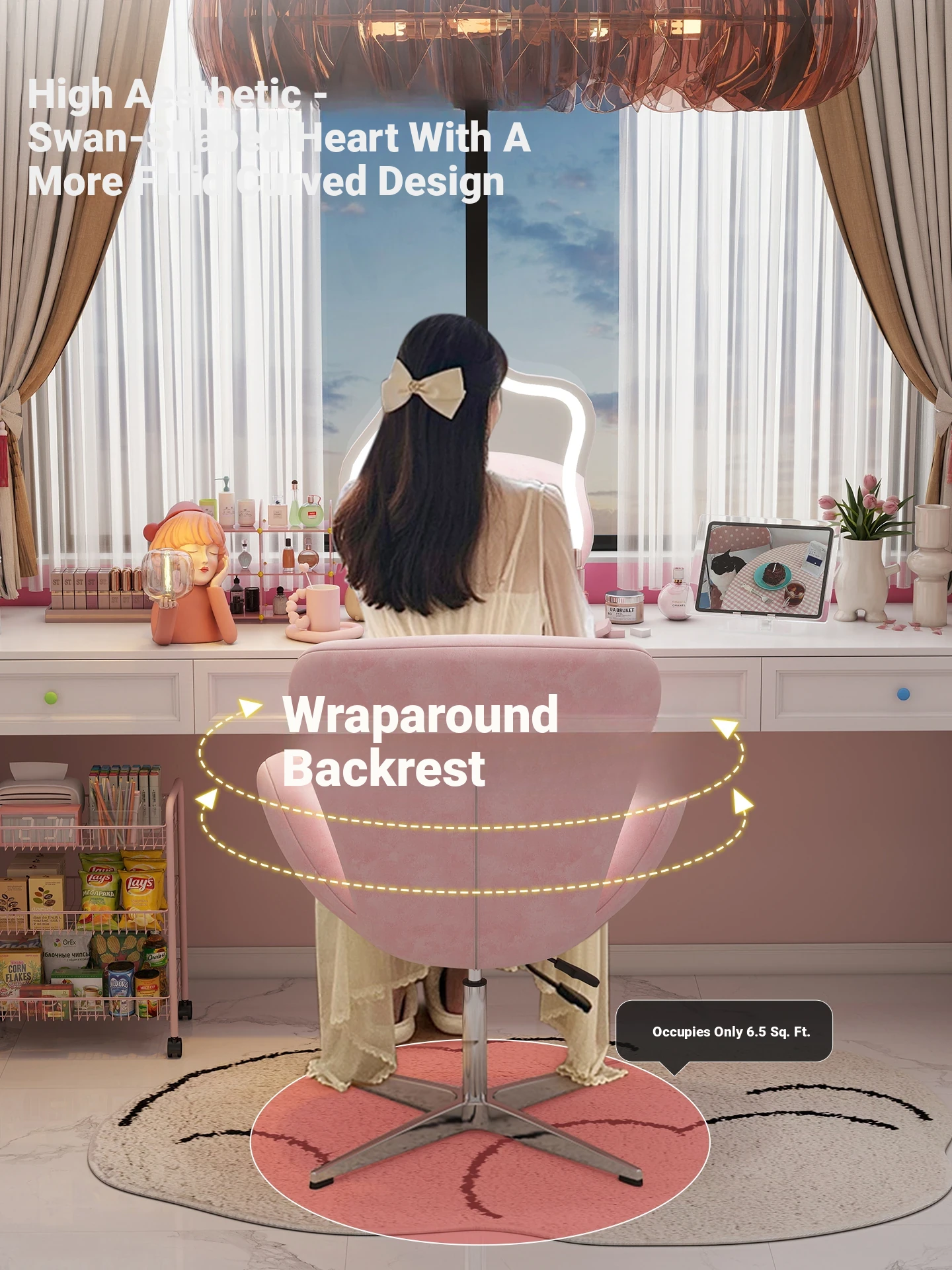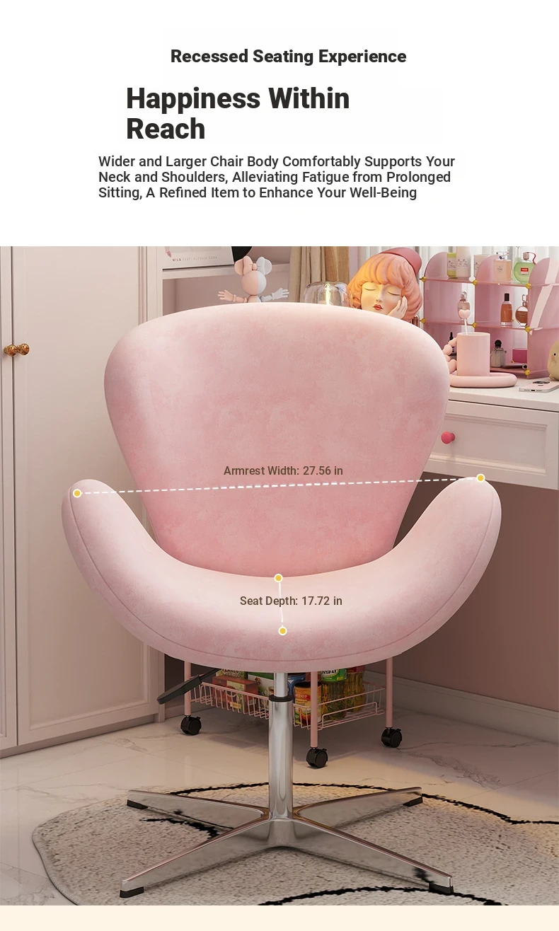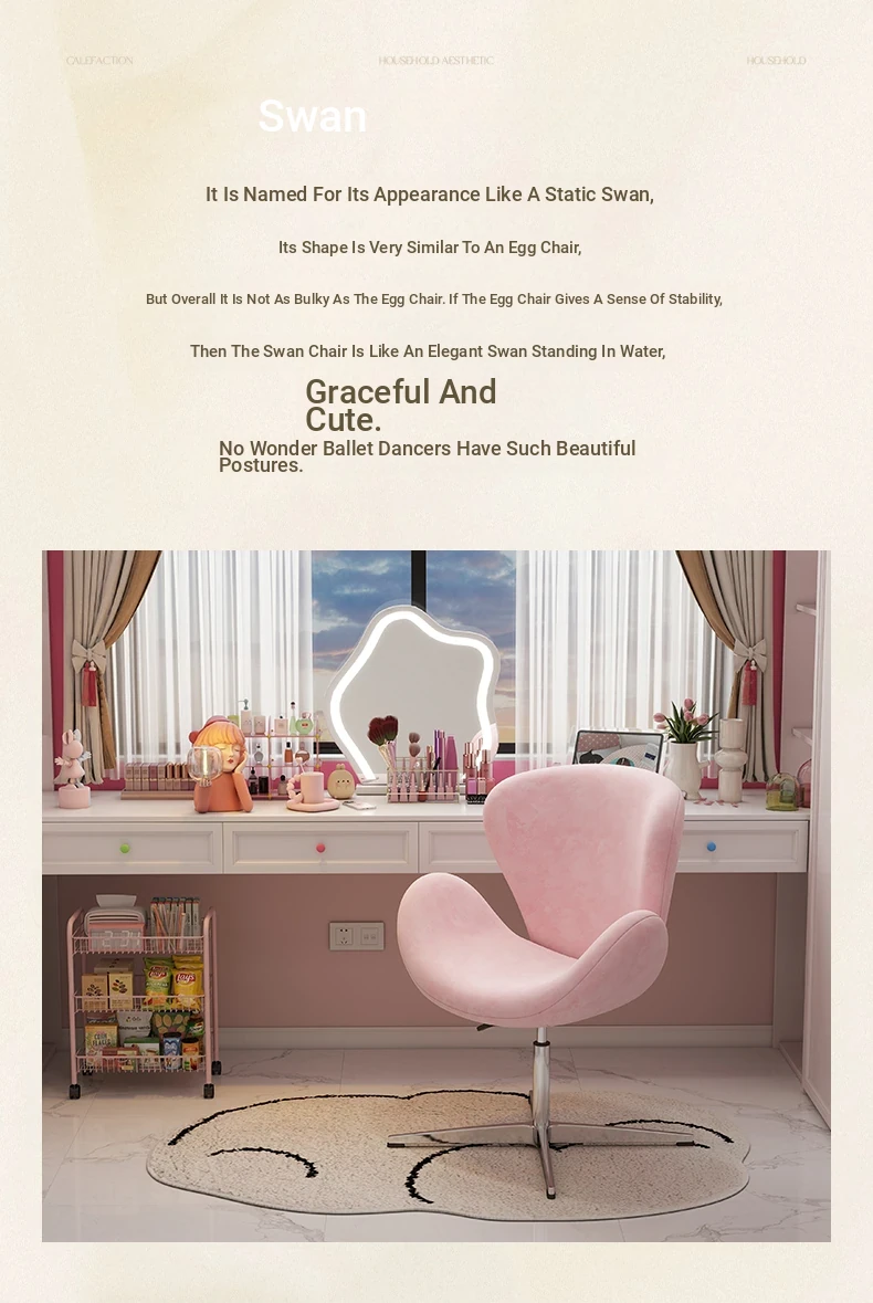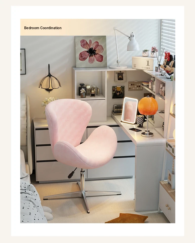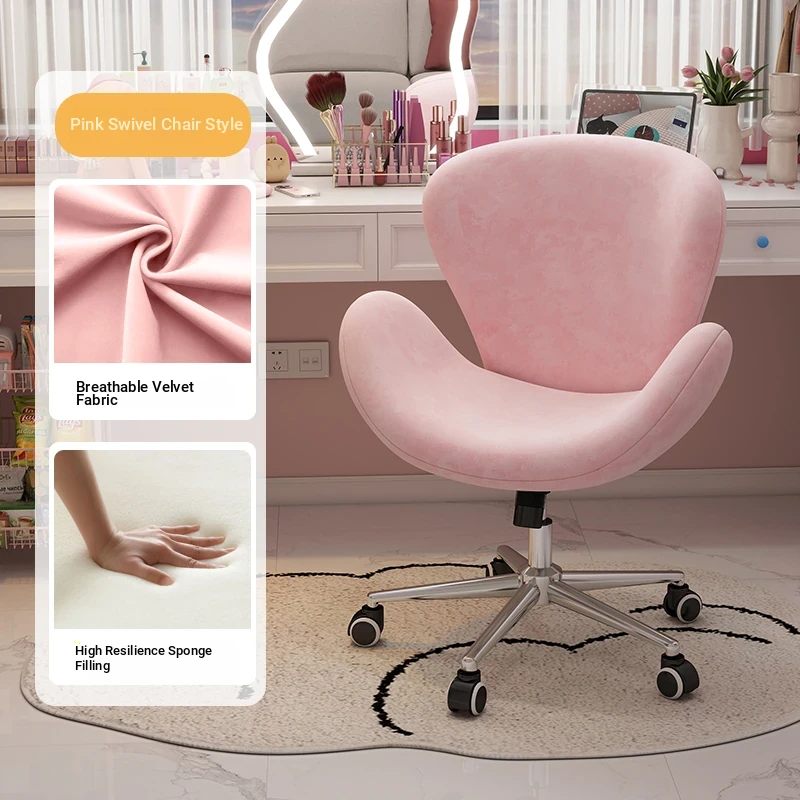 Stylish Adjustable Makeup Chair for Home Bedroom - Swivel with Backrest, Perfect for Vanity or Desk Use, Elegant Swan Design