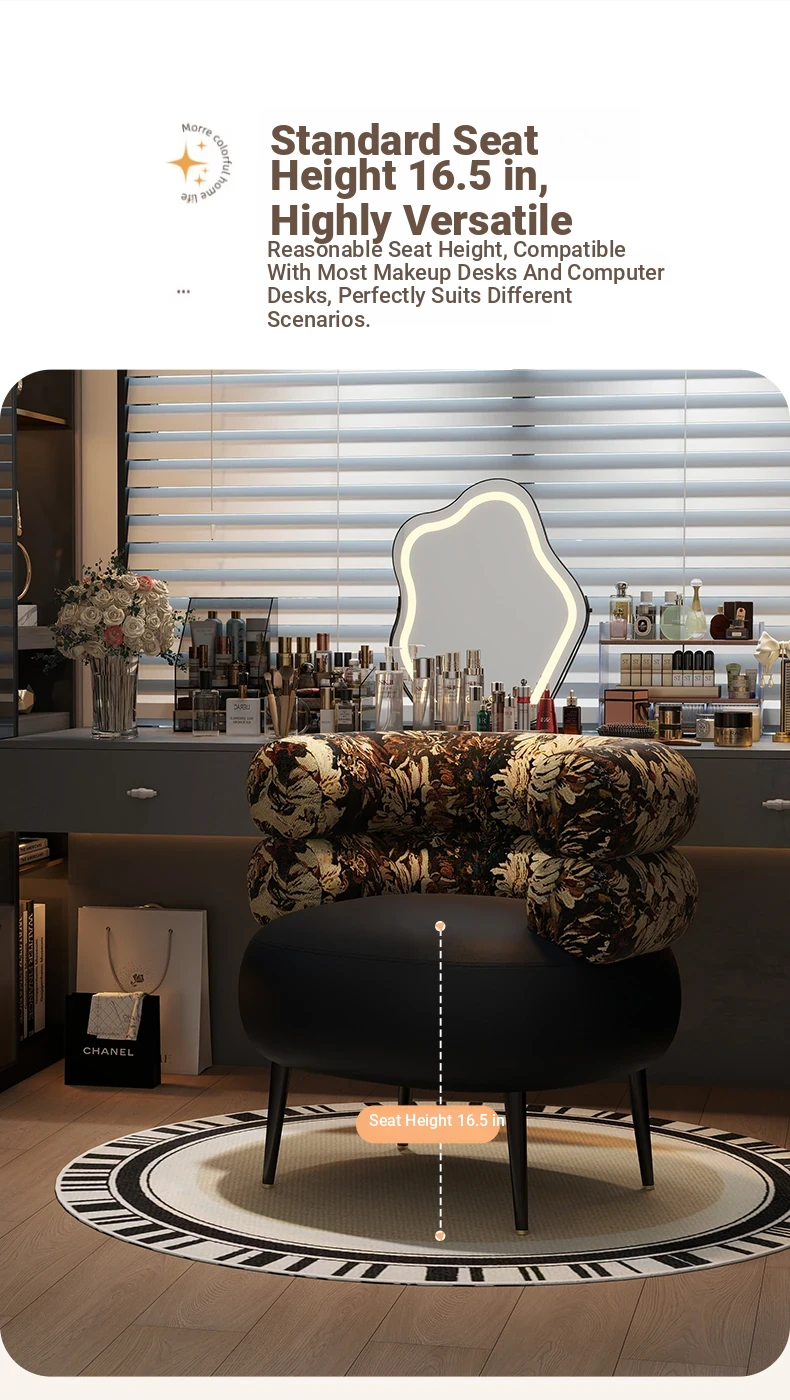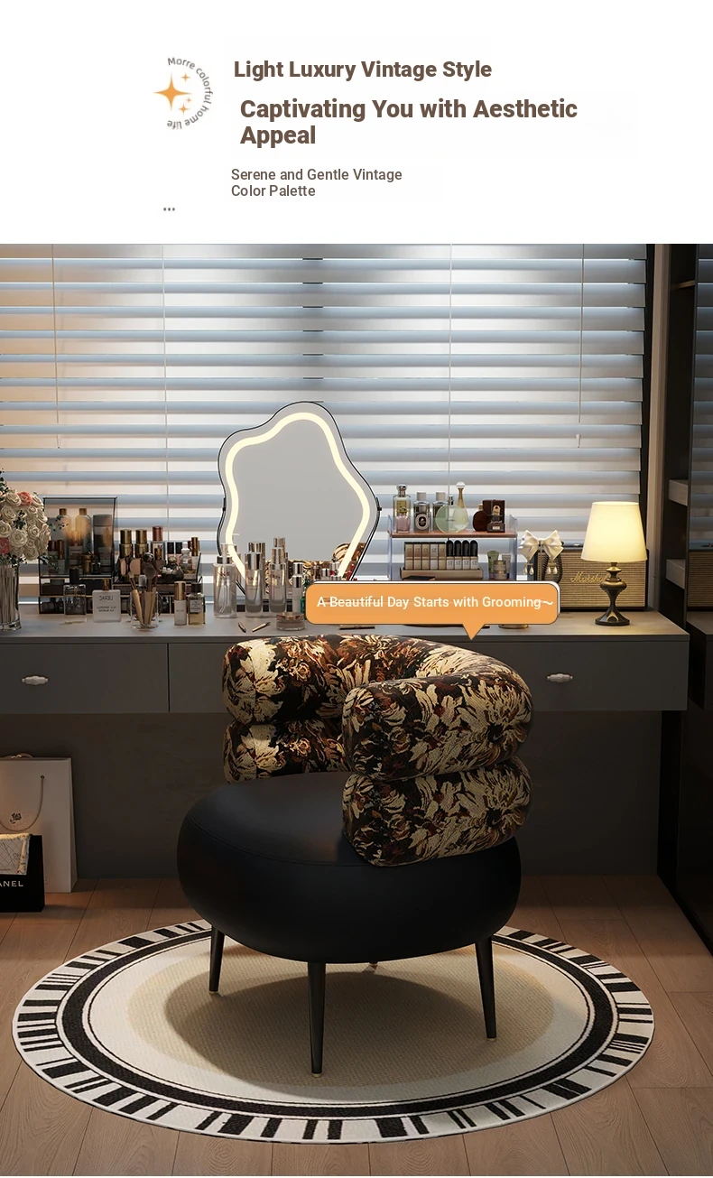 Stylish Makeup Chair for Influencers - Comfortable Vanity Stool for Dressing Room, Elegant Single Sofa for Long Sitting, Perfect Nail Art Chair