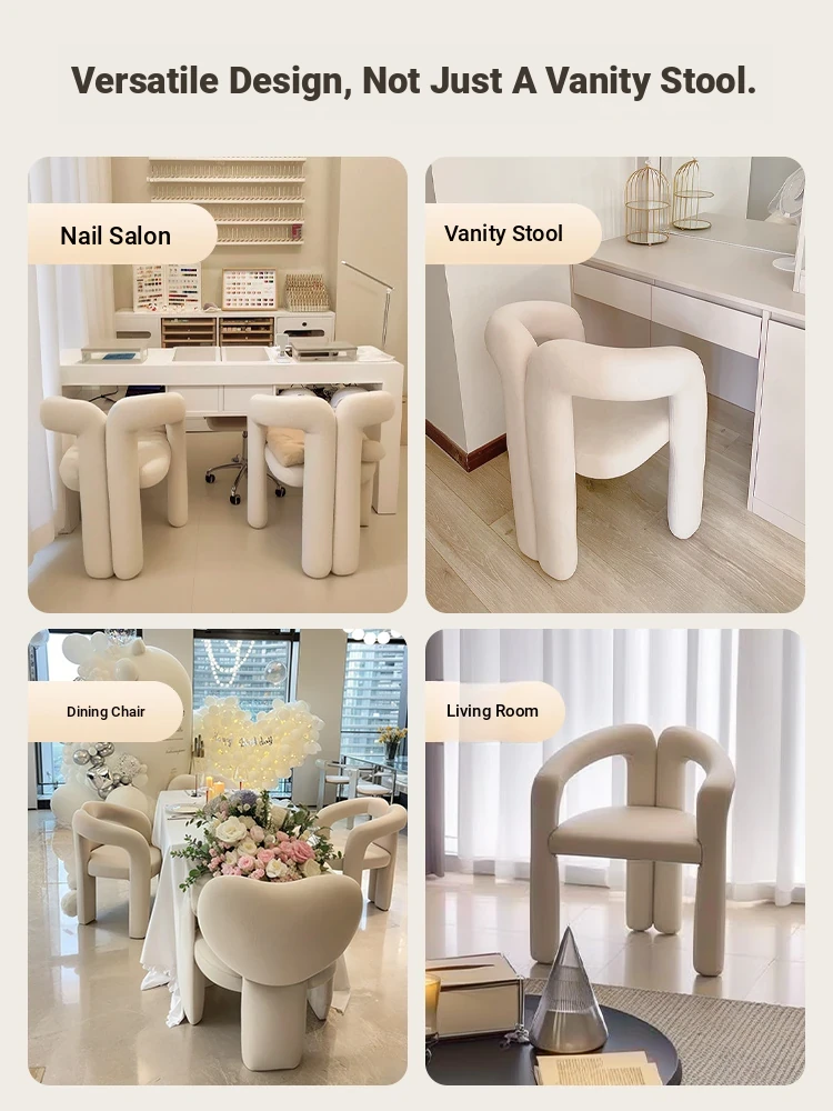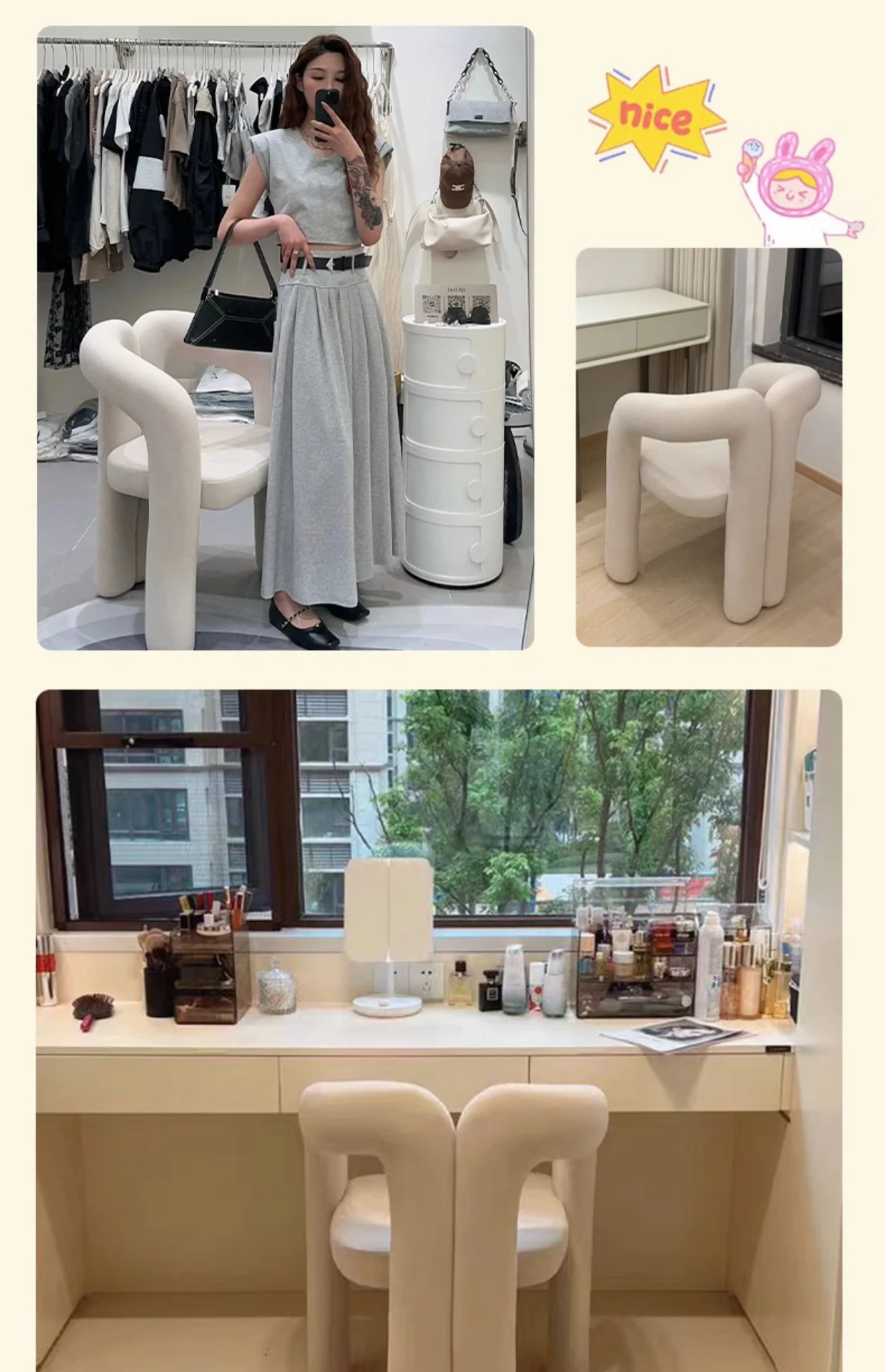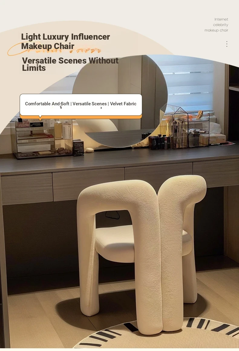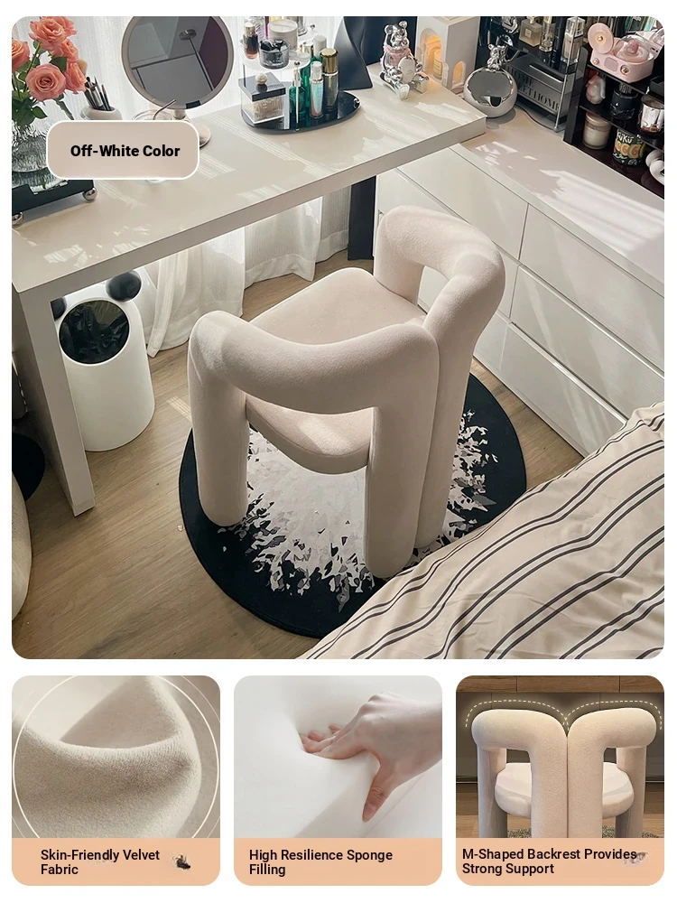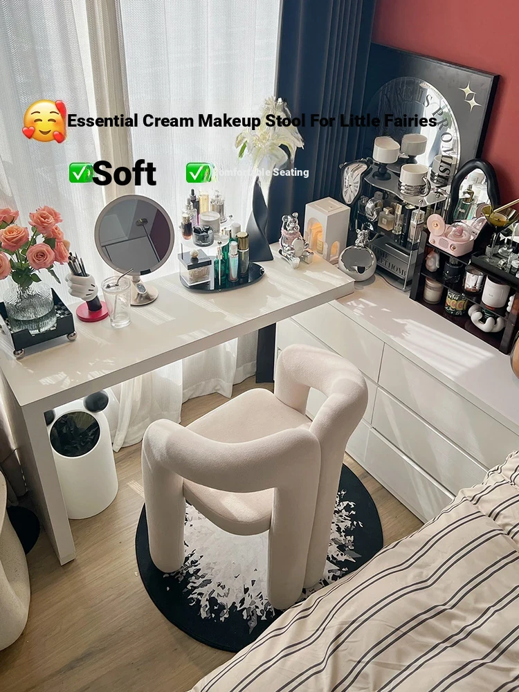 Trendy Makeup Chair - Elegant Cream-Colored Vanity Stool for Home Use, Designer INS Style with Backrest, Perfect for Bedrooms and Nail Art.