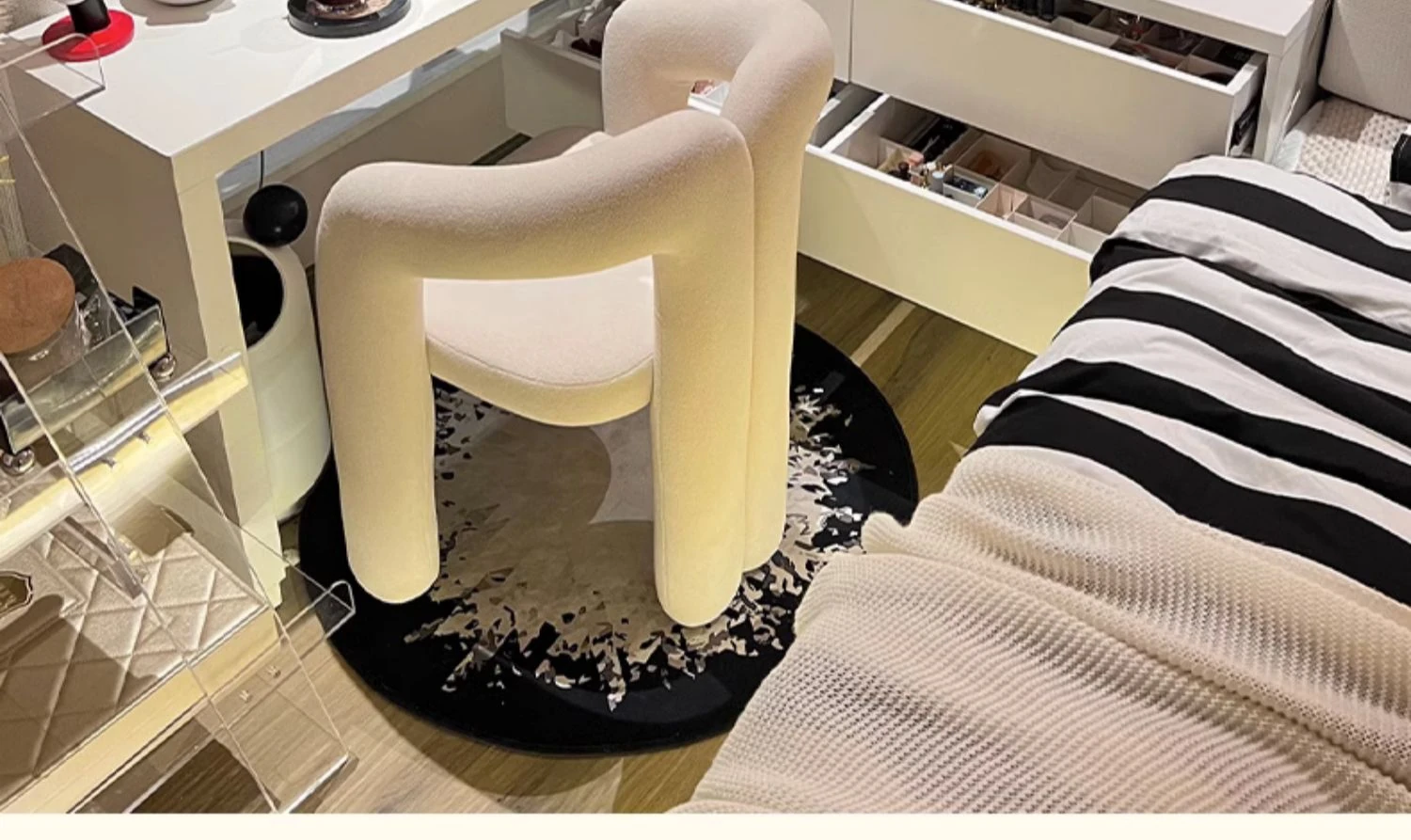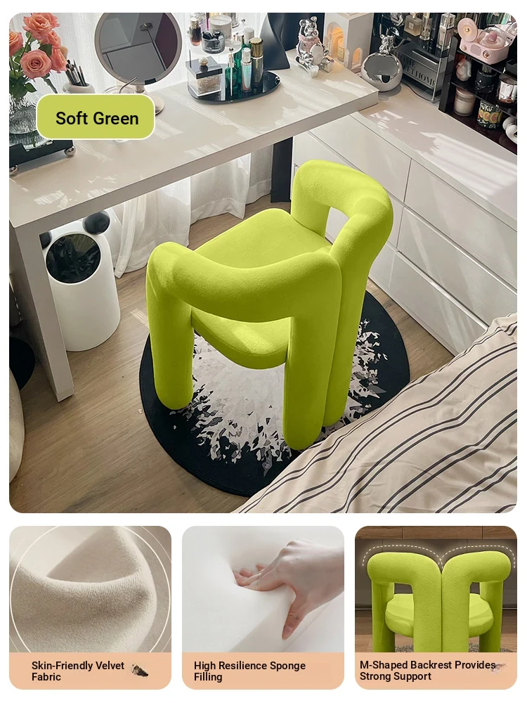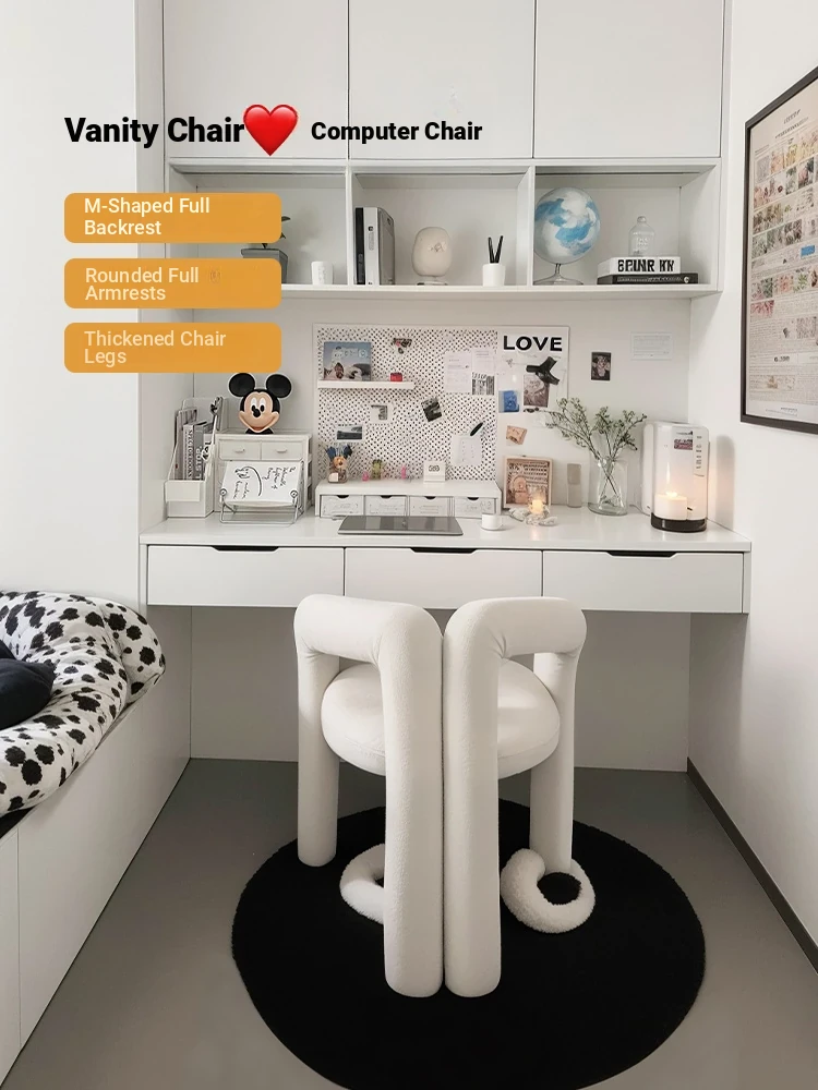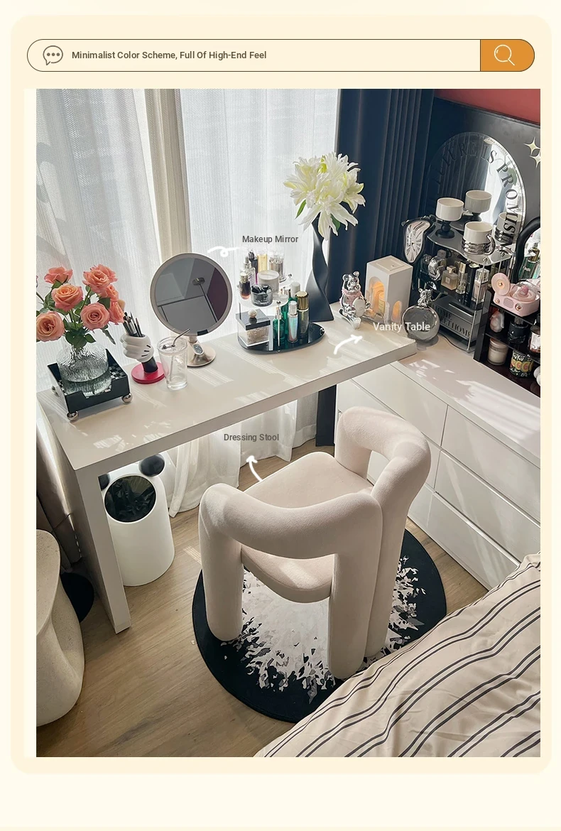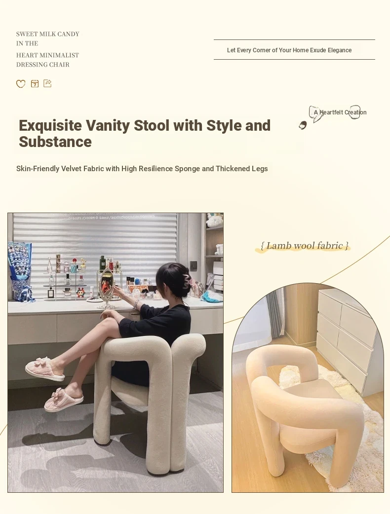 Trendy Makeup Chair - Elegant Cream-Colored Vanity Stool for Home Use, Designer INS Style with Backrest, Perfect for Bedrooms and Nail Art.