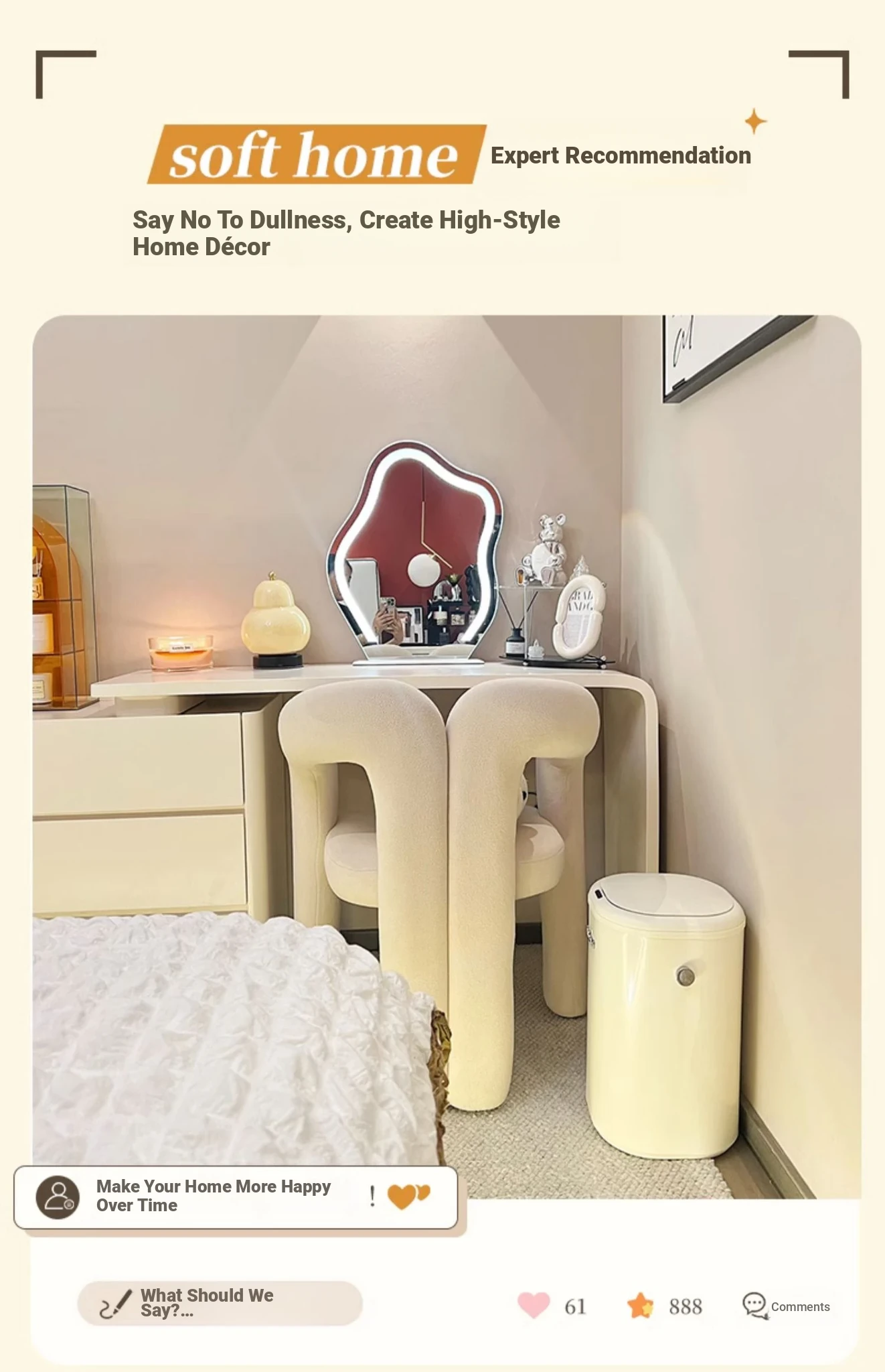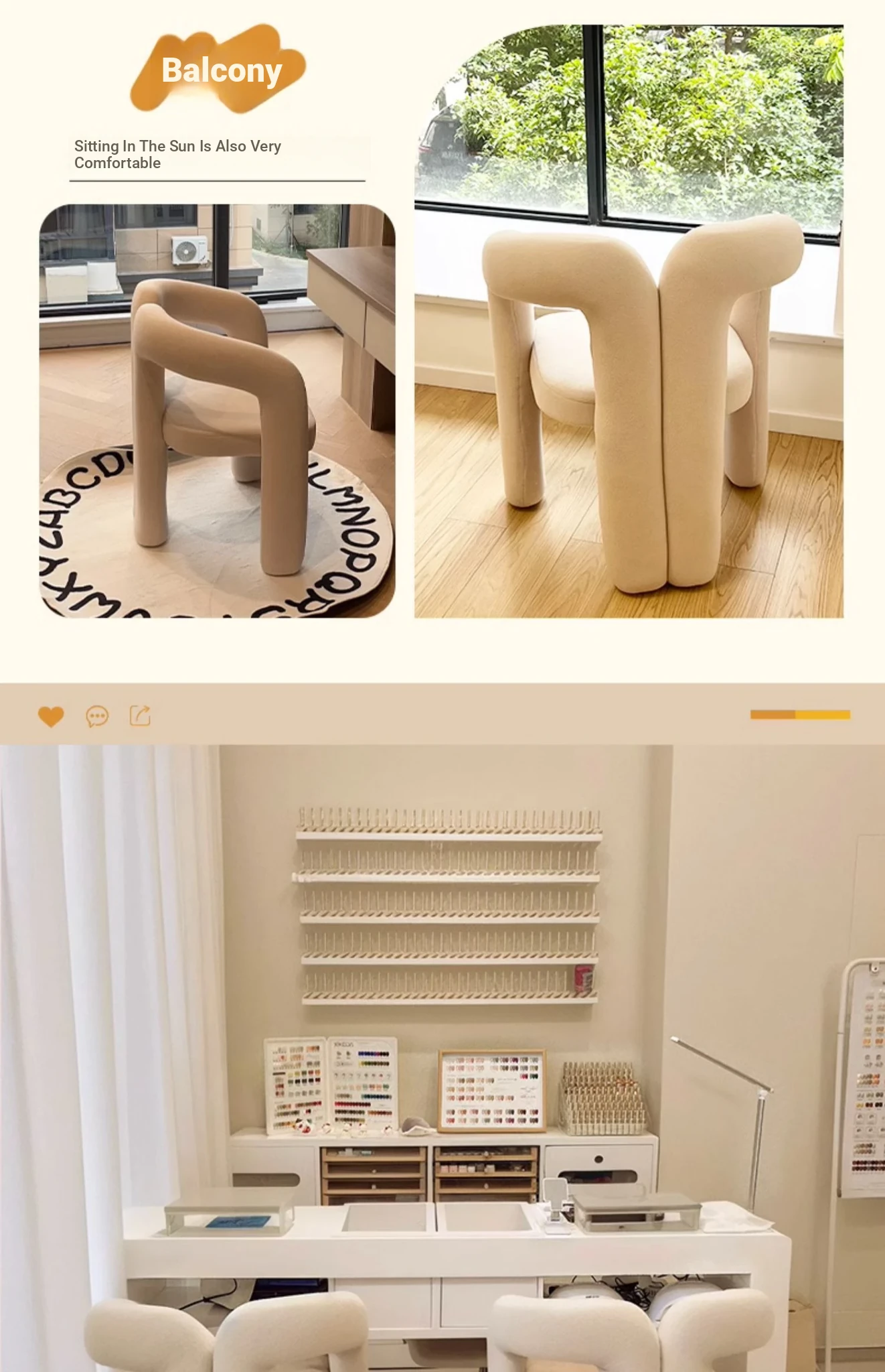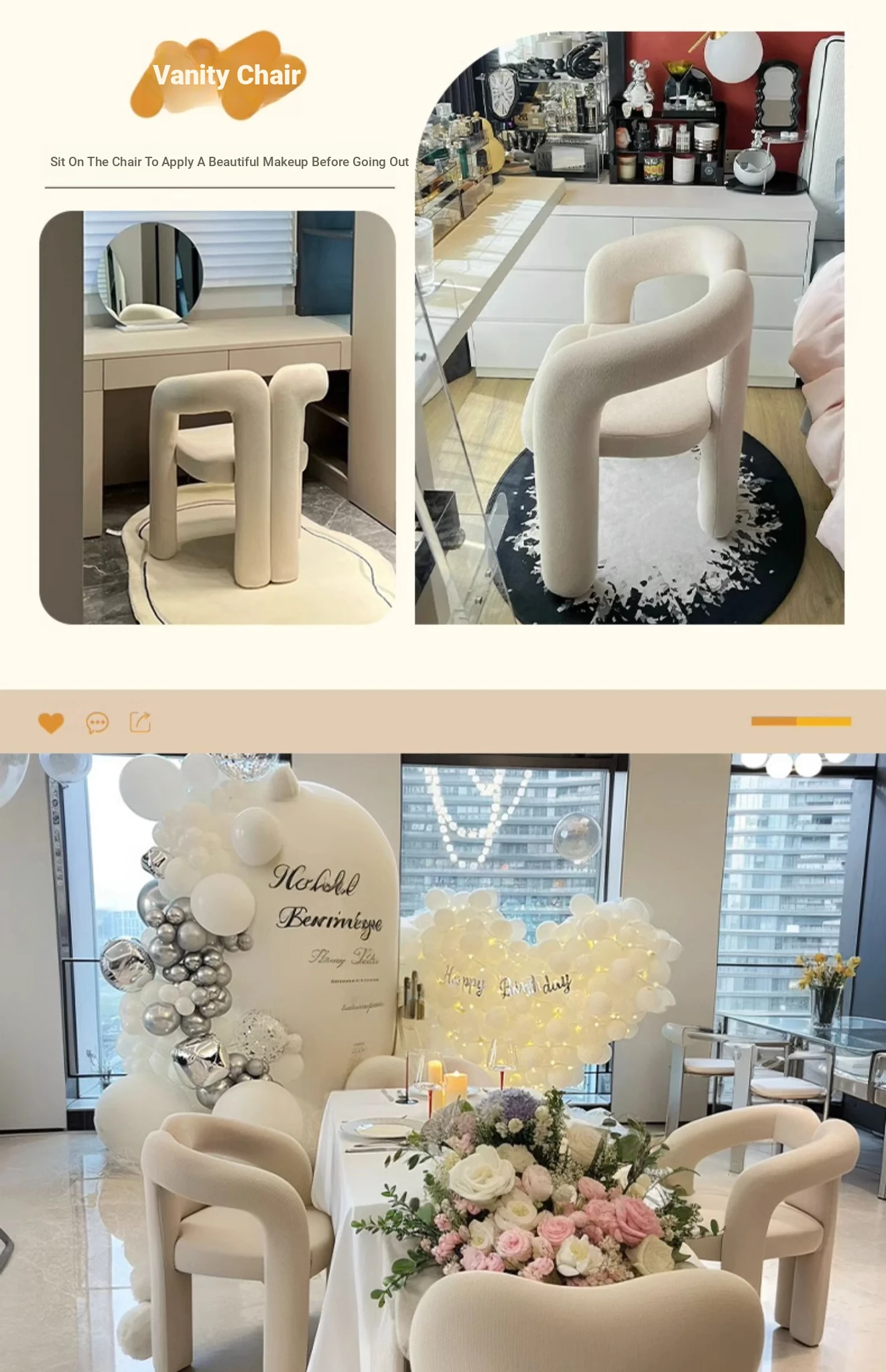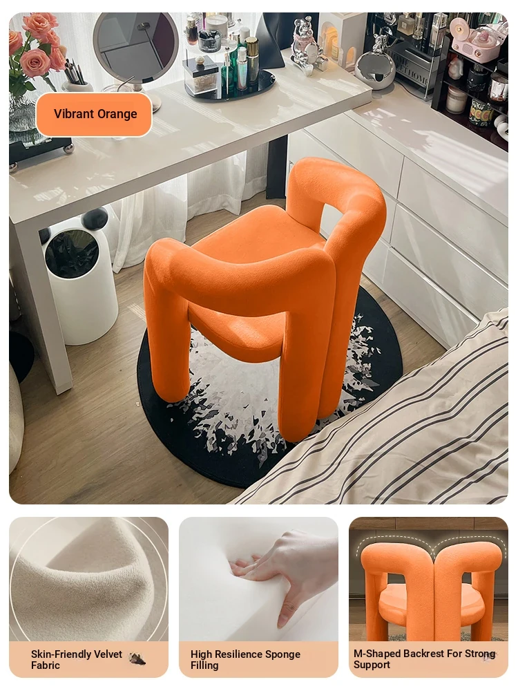 Trendy Makeup Chair - Elegant Cream-Colored Vanity Stool for Home Use, Designer INS Style with Backrest, Perfect for Bedrooms and Nail Art.