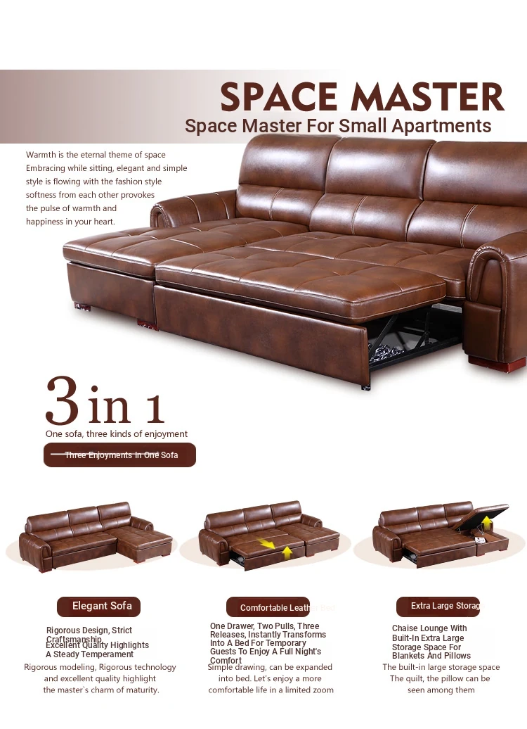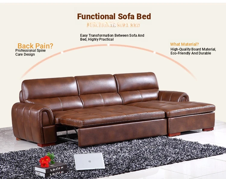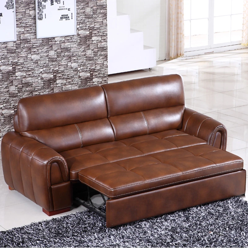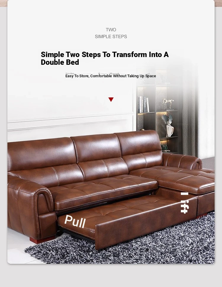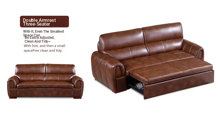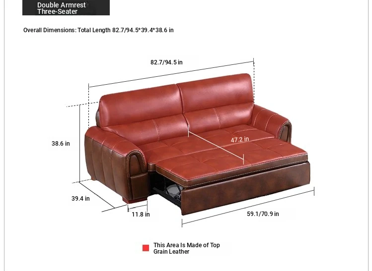 Versatile Small Space Sofa Bed for Living Room - Premium Top Grain Leather 3-Seater Sofa, Perfect for Home and Office Use!