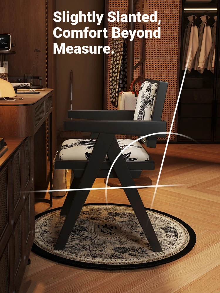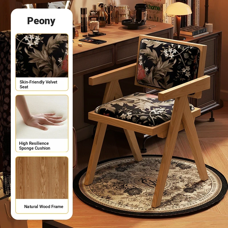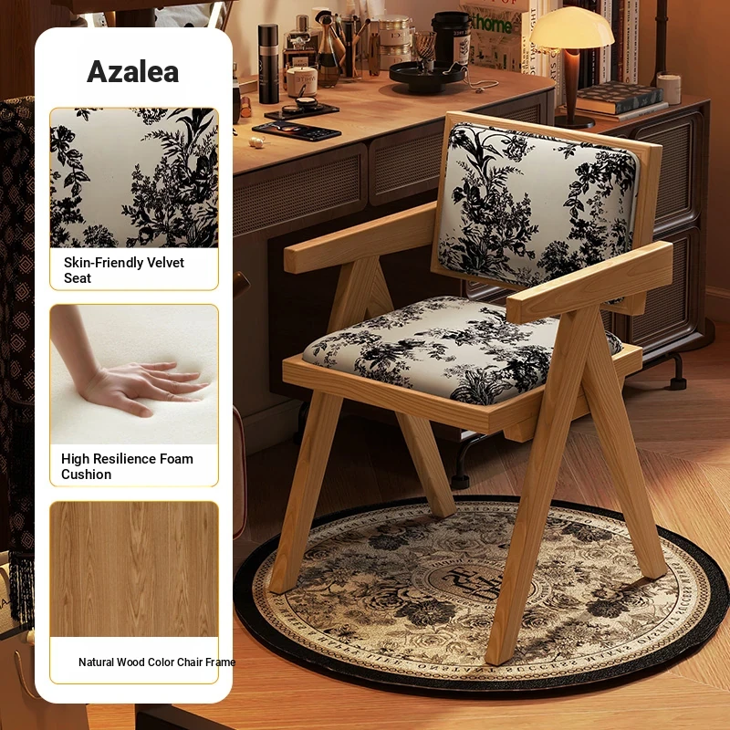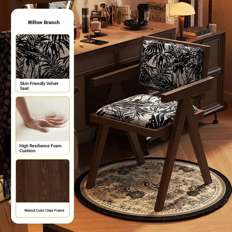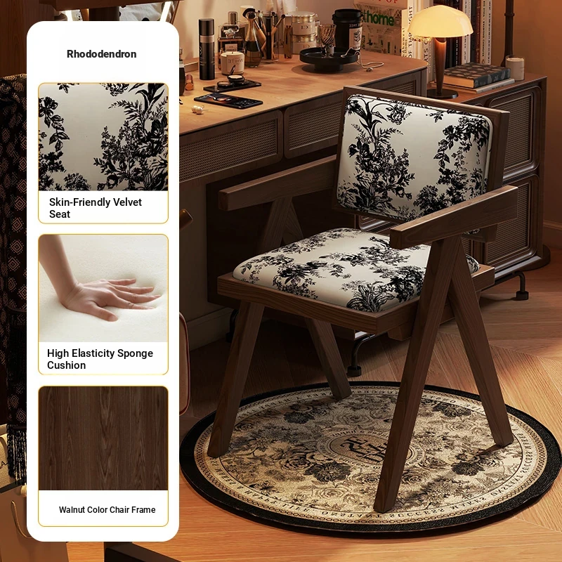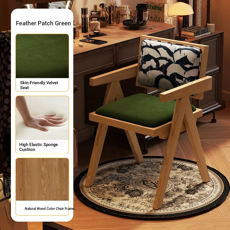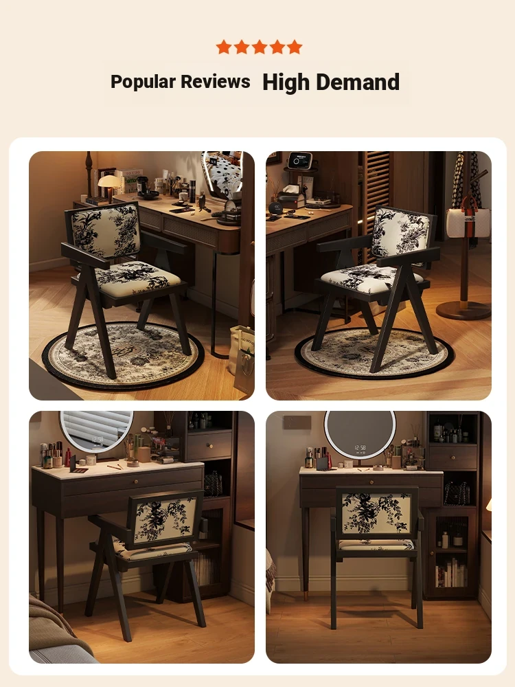 Vintage Solid Wood Vanity Stool - Chic Retro Chandigarh Chair for Women's Bedroom Makeup Table with Backrest - Elevate Your Glamour Space!