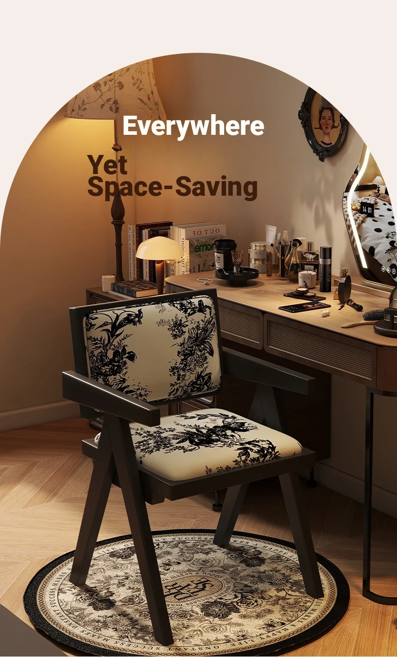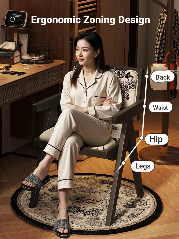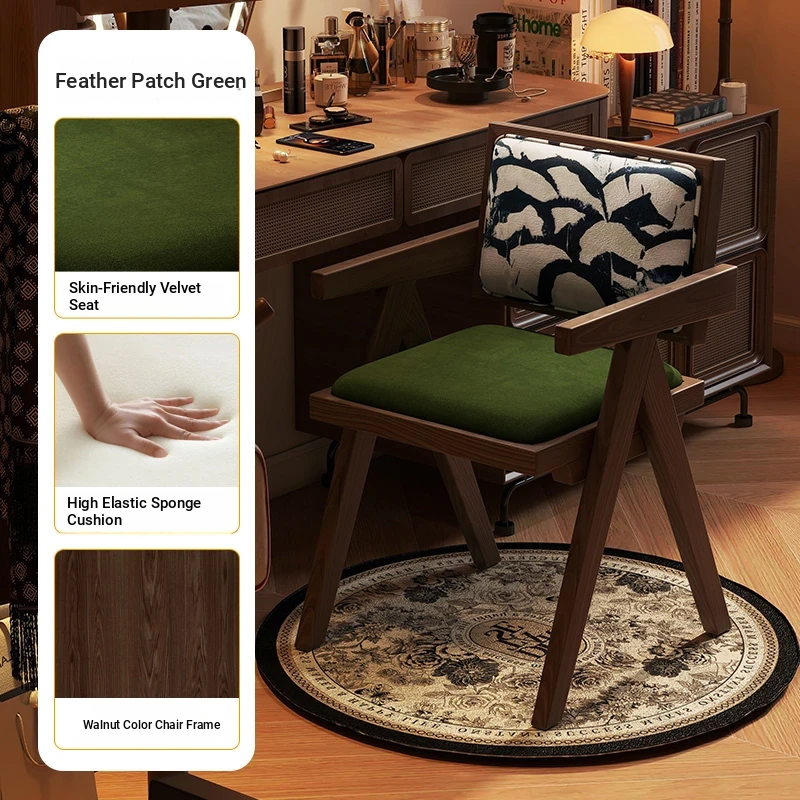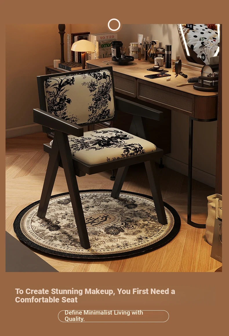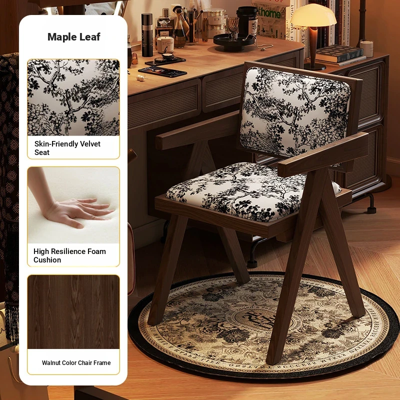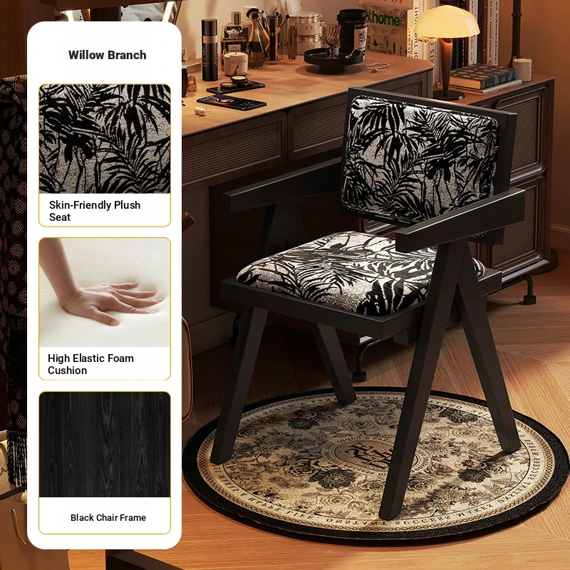 Vintage Solid Wood Vanity Stool - Chic Retro Chandigarh Chair for Women's Bedroom Makeup Table with Backrest - Elevate Your Glamour Space!