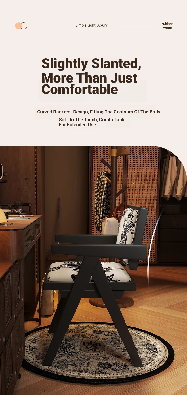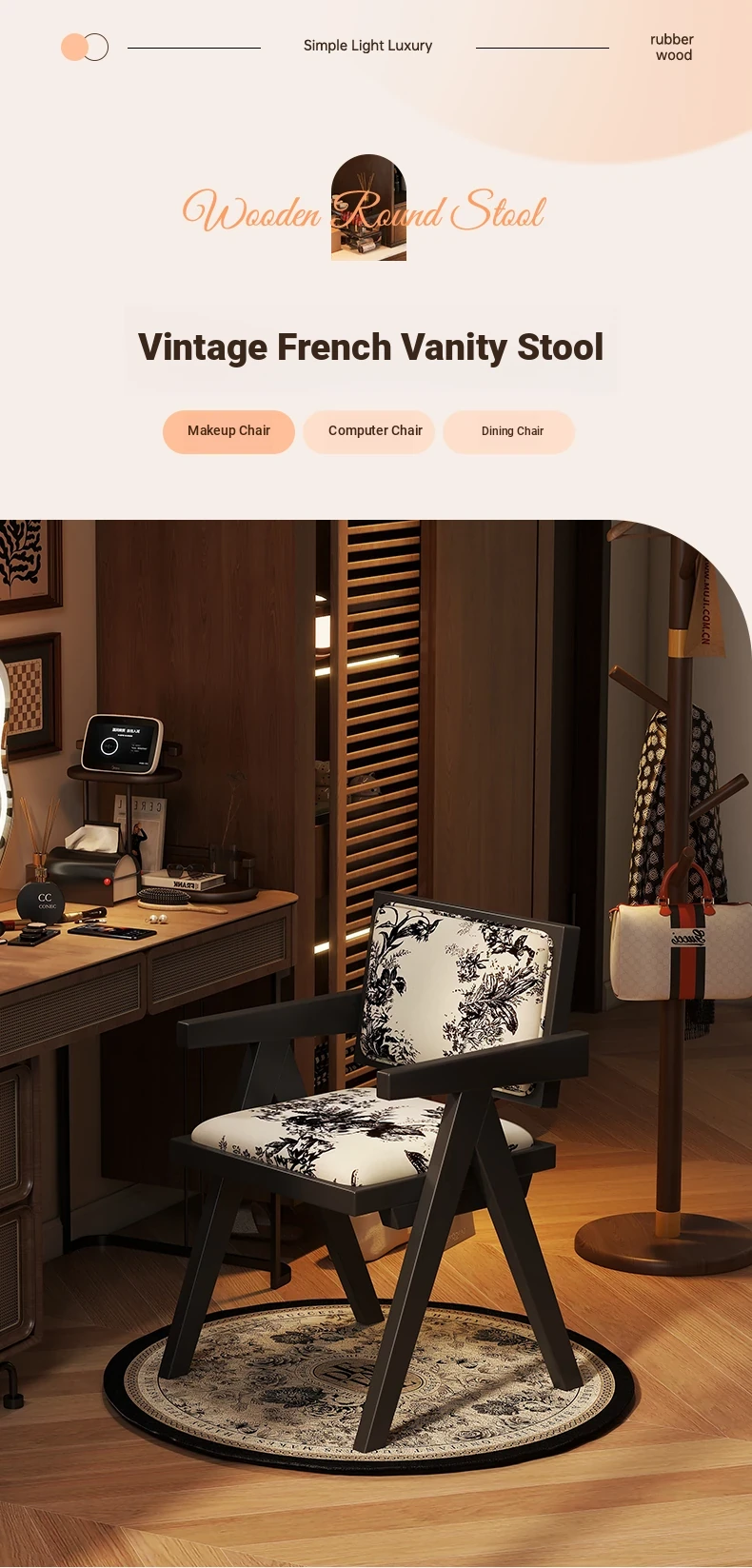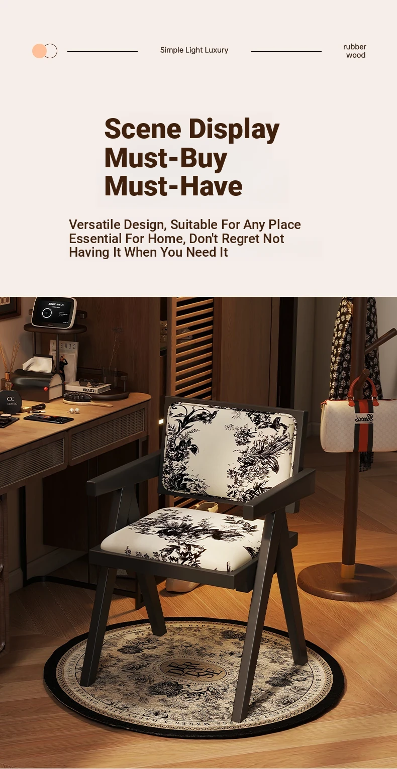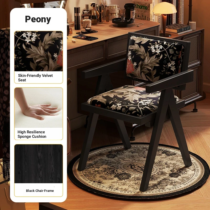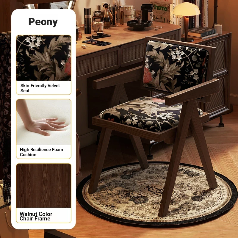 Vintage Solid Wood Vanity Stool - Chic Retro Chandigarh Chair for Women's Bedroom Makeup Table with Backrest - Elevate Your Glamour Space!