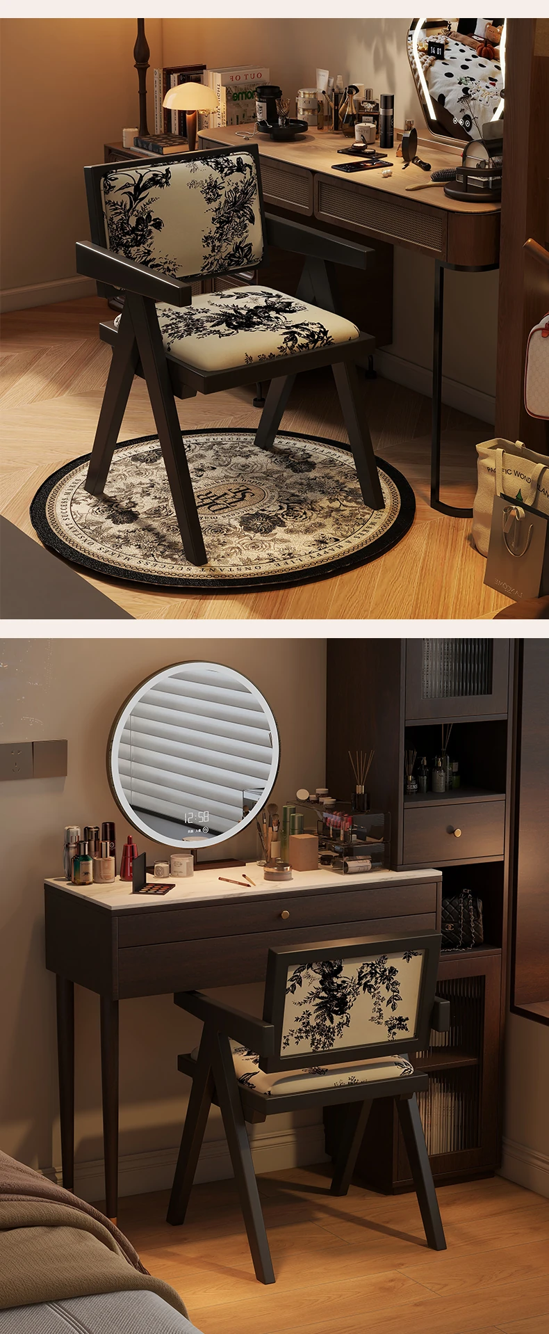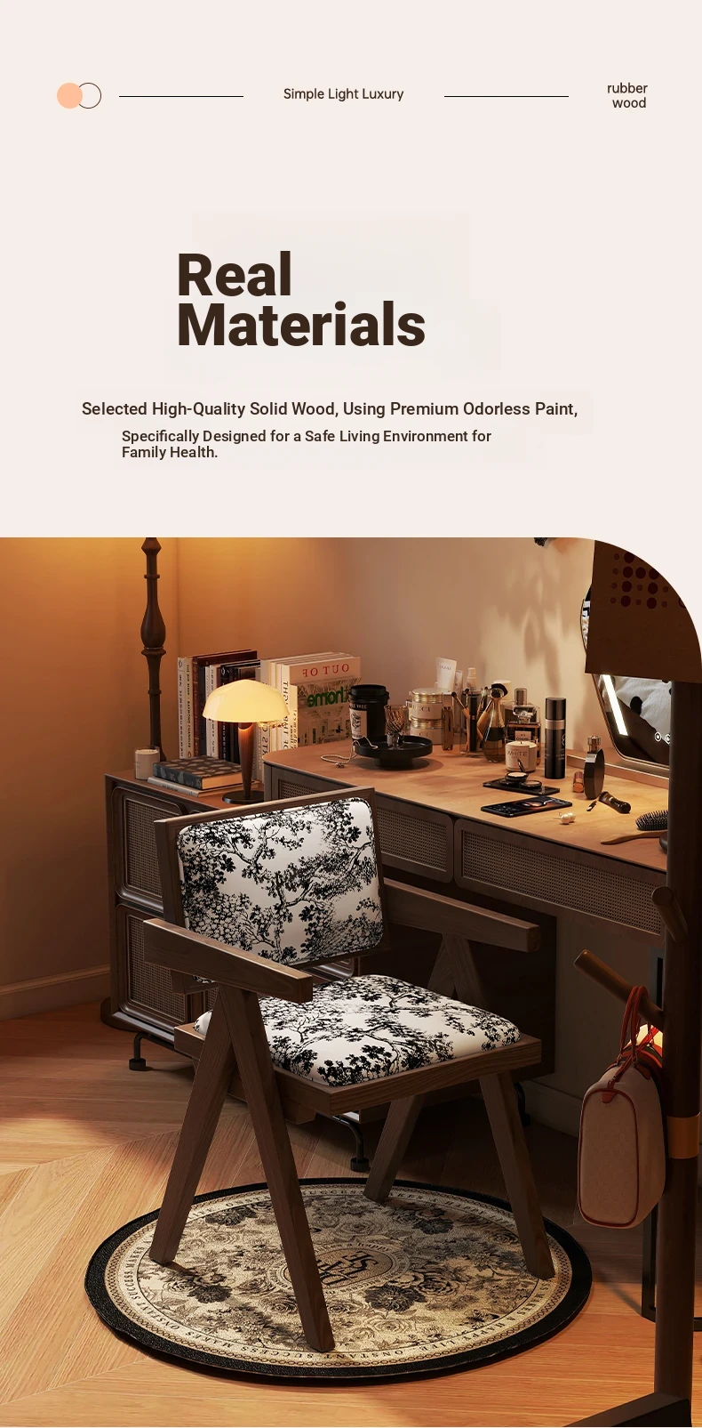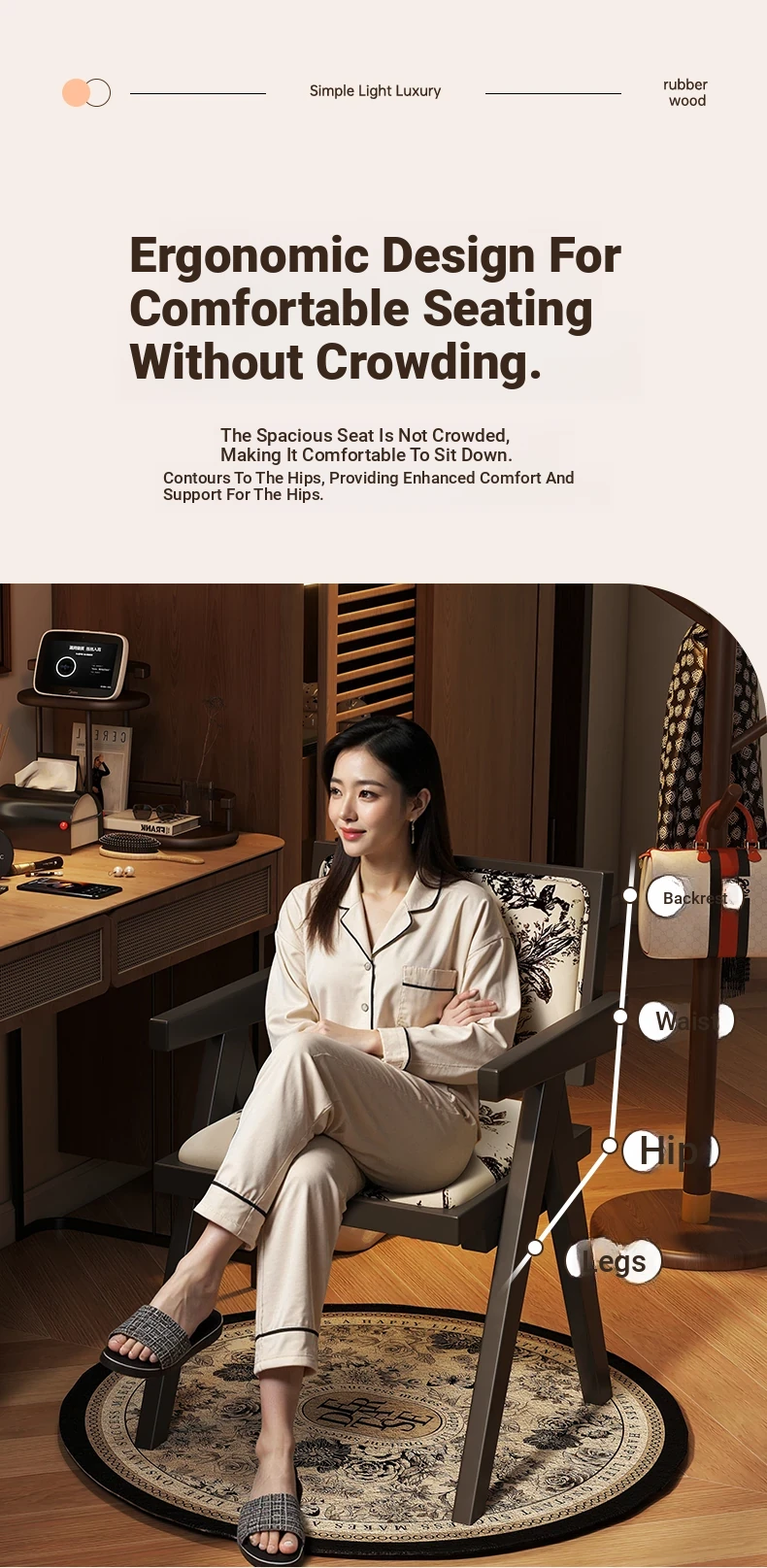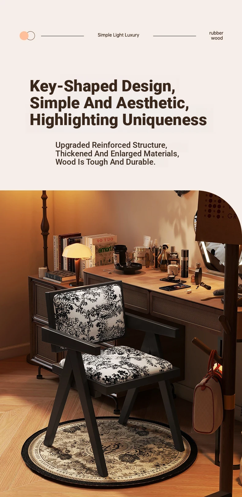 Vintage Solid Wood Vanity Stool - Chic Retro Chandigarh Chair for Women's Bedroom Makeup Table with Backrest - Elevate Your Glamour Space!