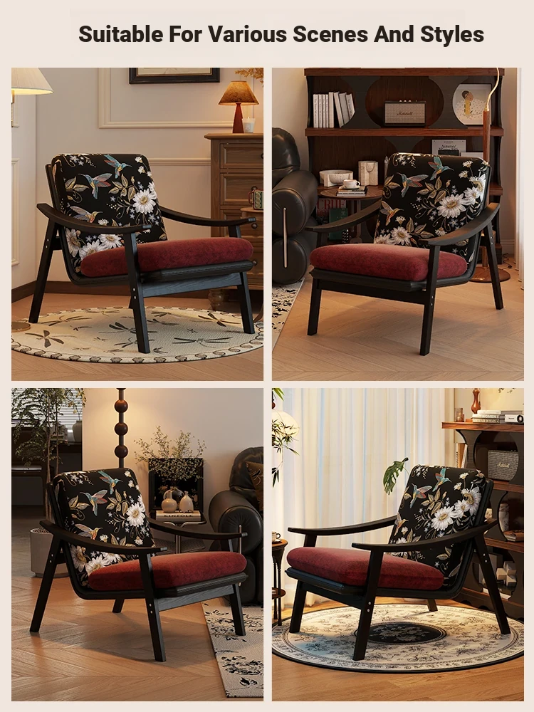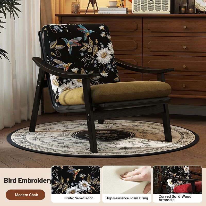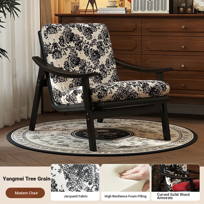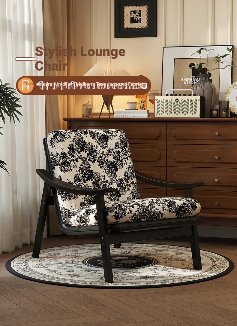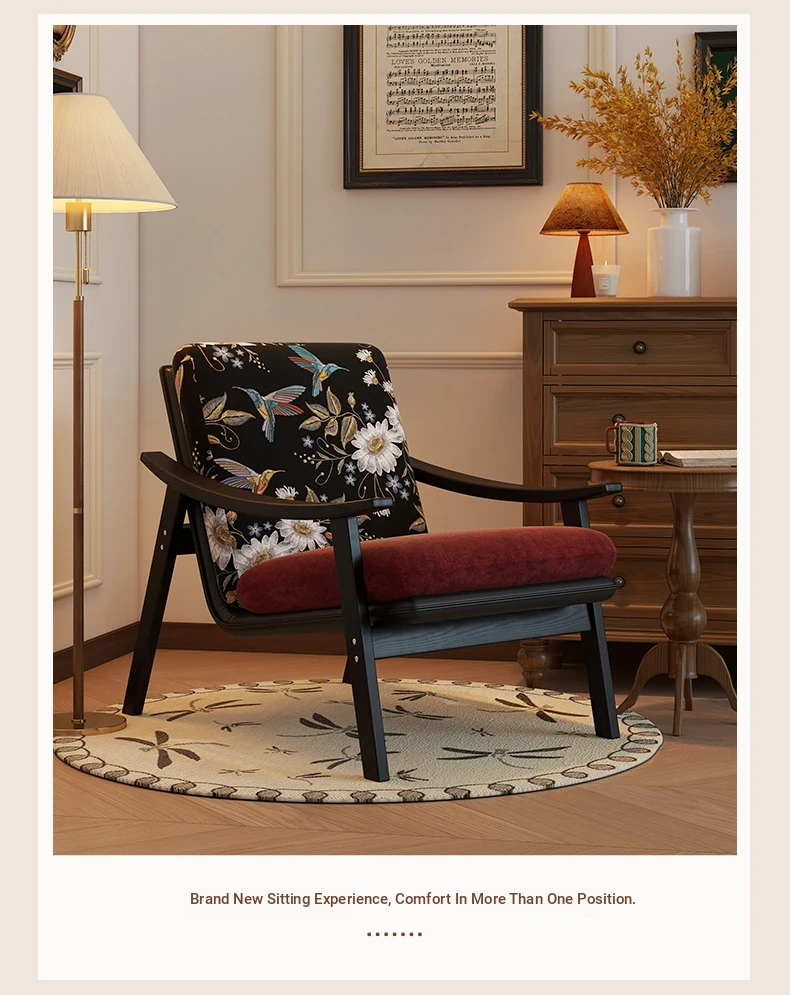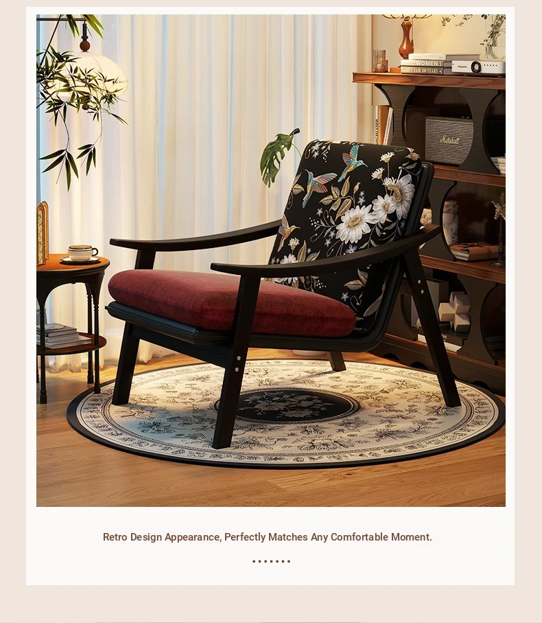 Vintage Style Solid Wood Armchair - French Chic Single Chair for Living Room, Balcony, and Bedroom - Elevate Your Space with Luxurious Retro Design