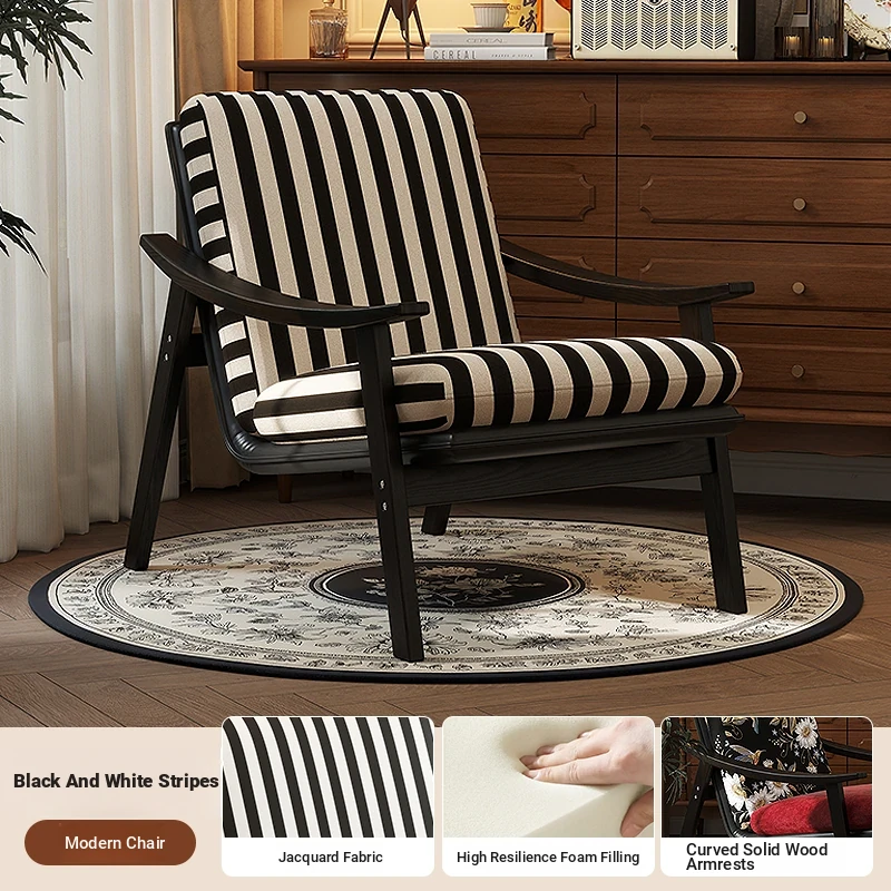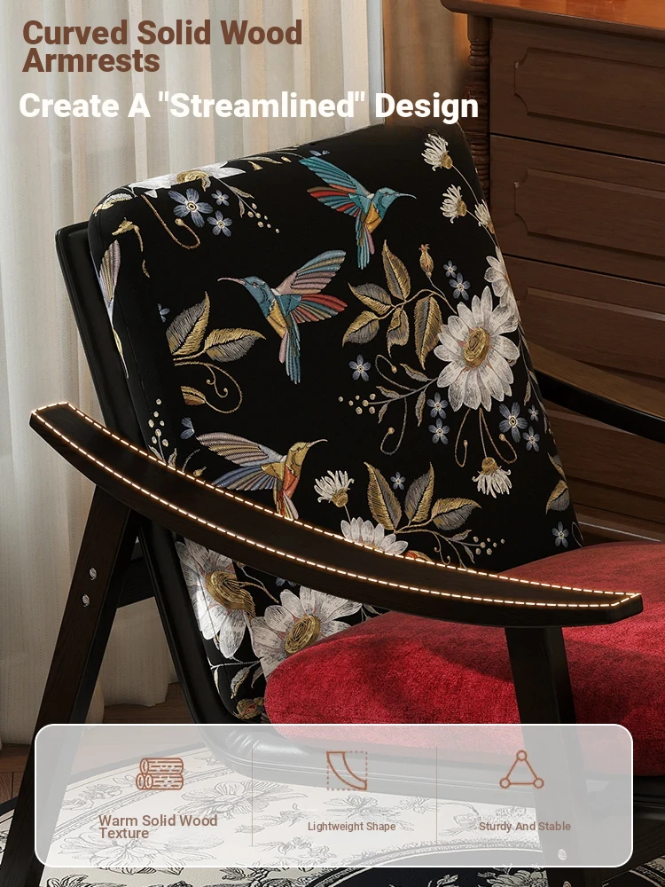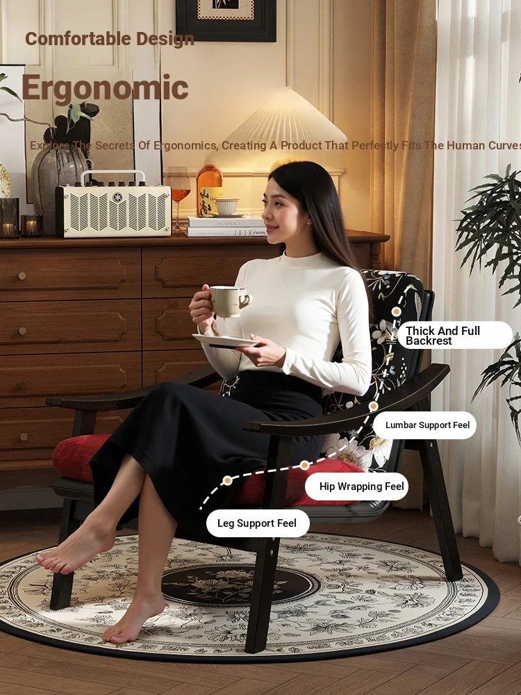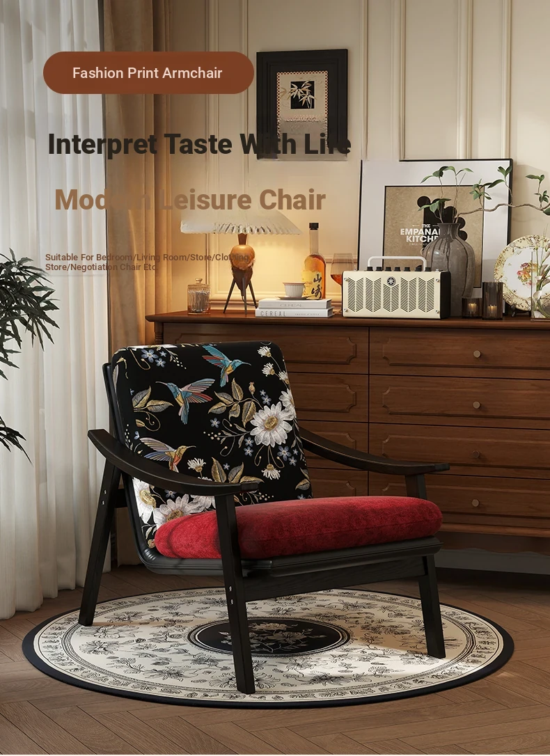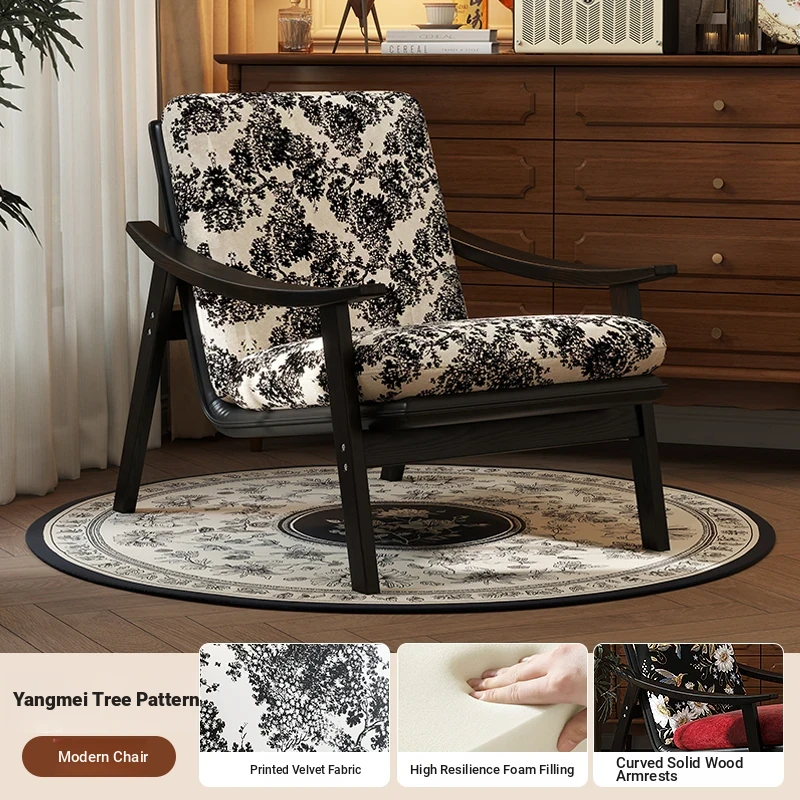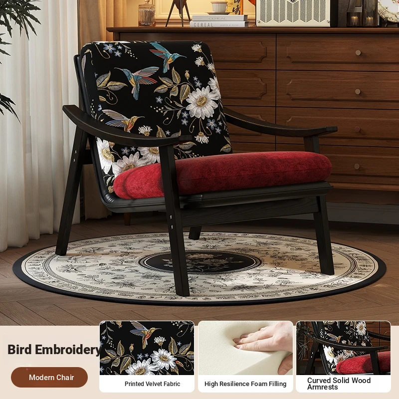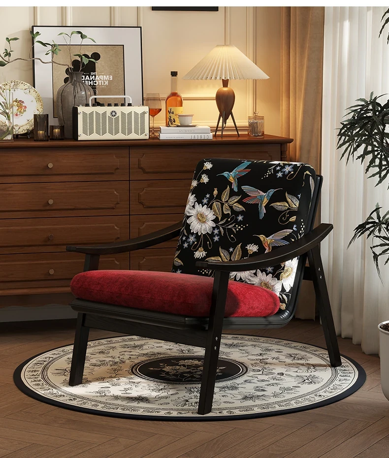 Vintage Style Solid Wood Armchair - French Chic Single Chair for Living Room, Balcony, and Bedroom - Elevate Your Space with Luxurious Retro Design
