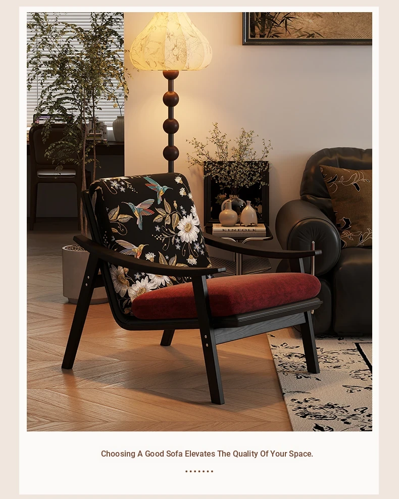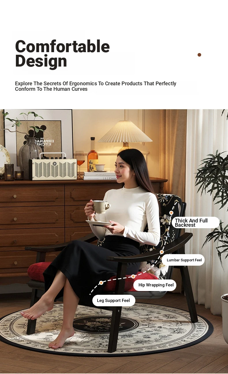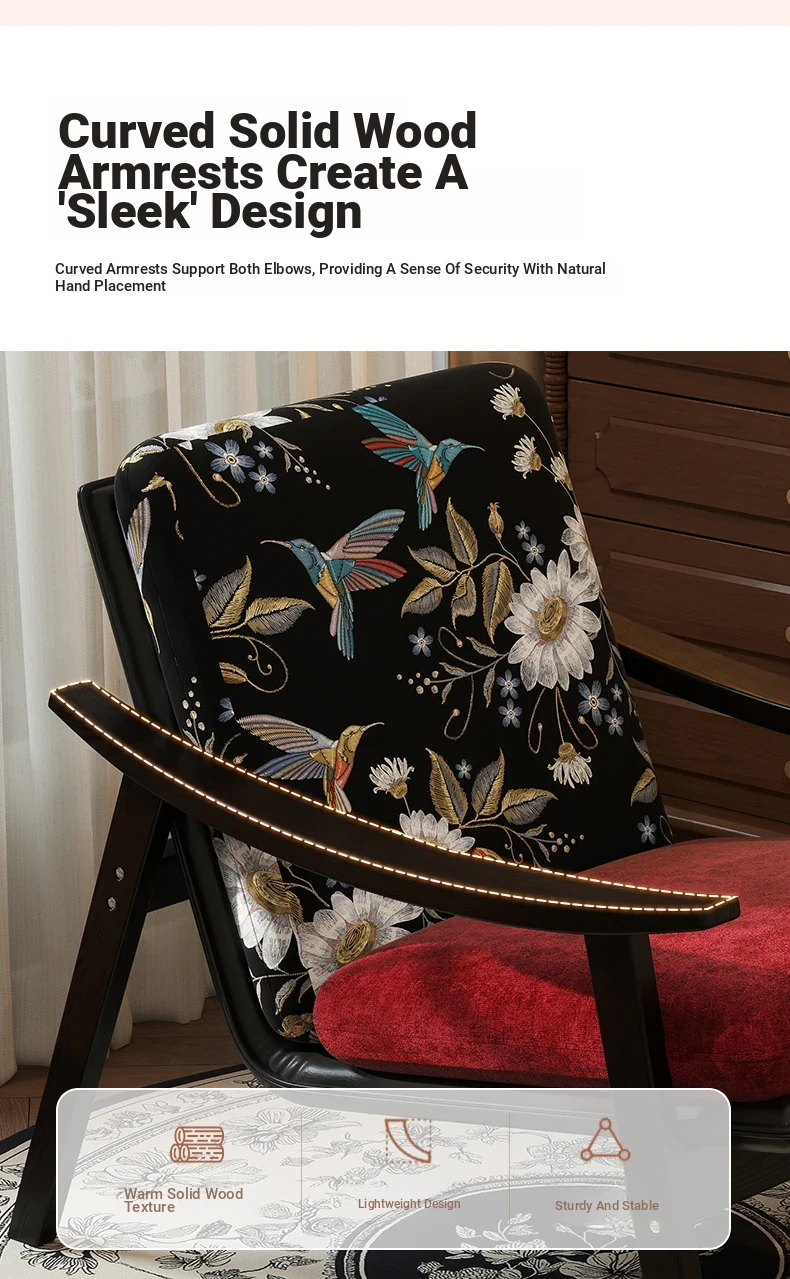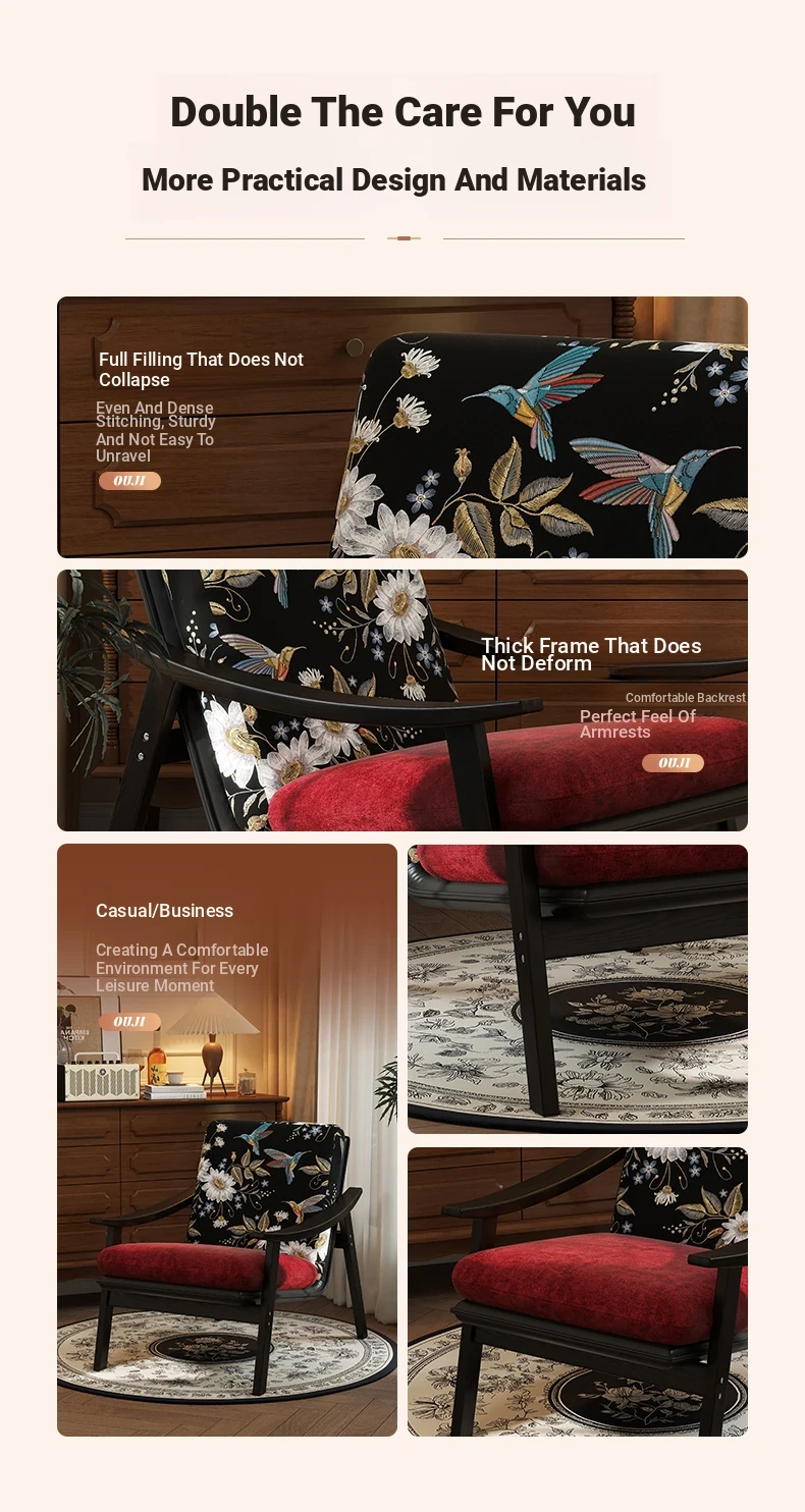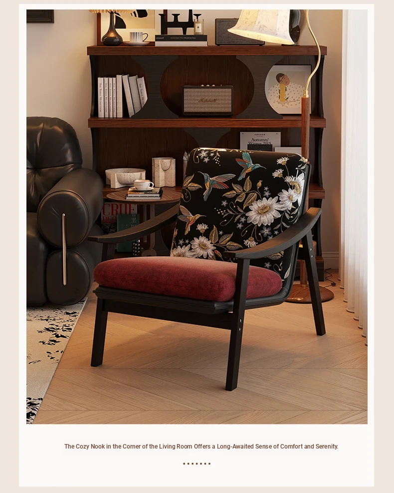 Vintage Style Solid Wood Armchair - French Chic Single Chair for Living Room, Balcony, and Bedroom - Elevate Your Space with Luxurious Retro Design