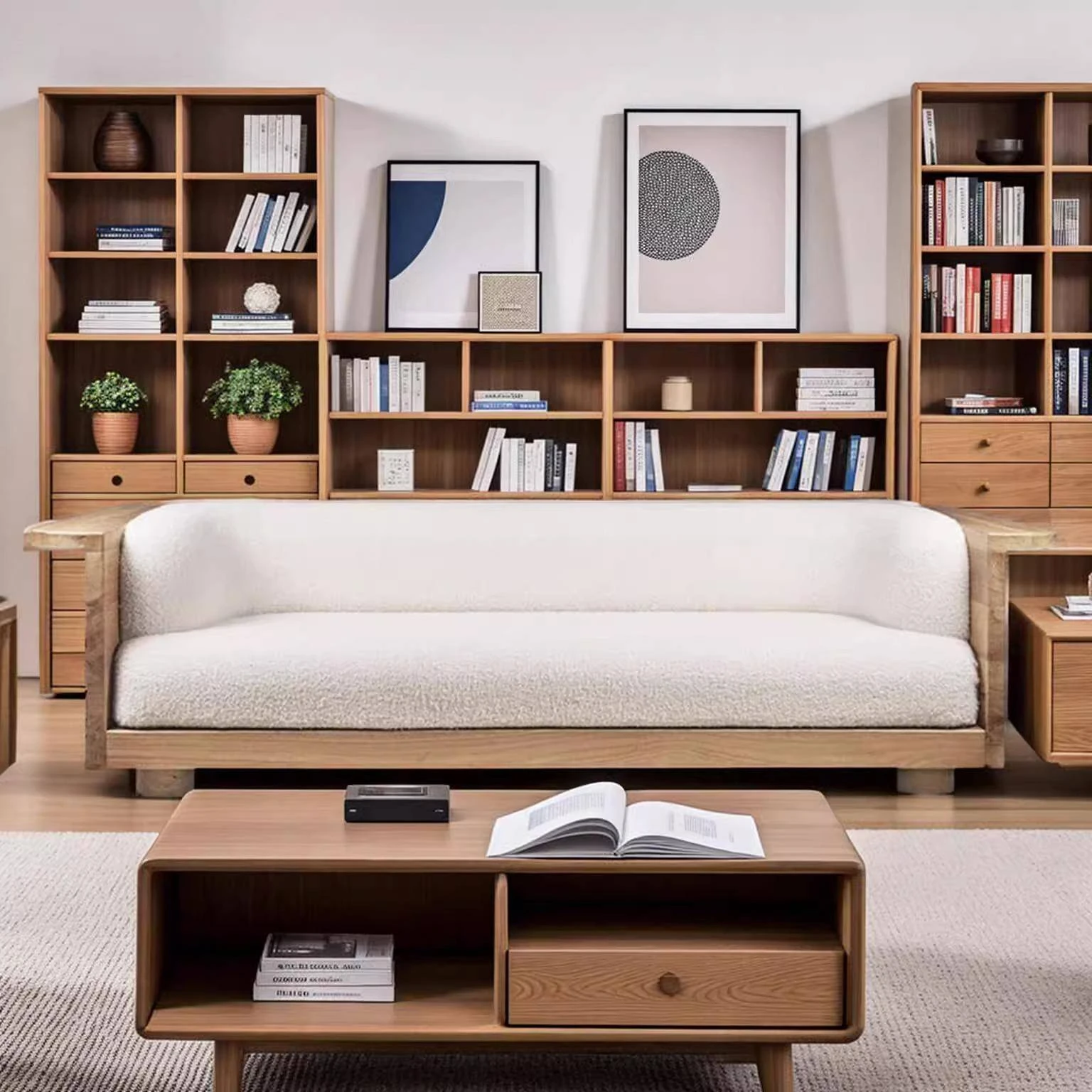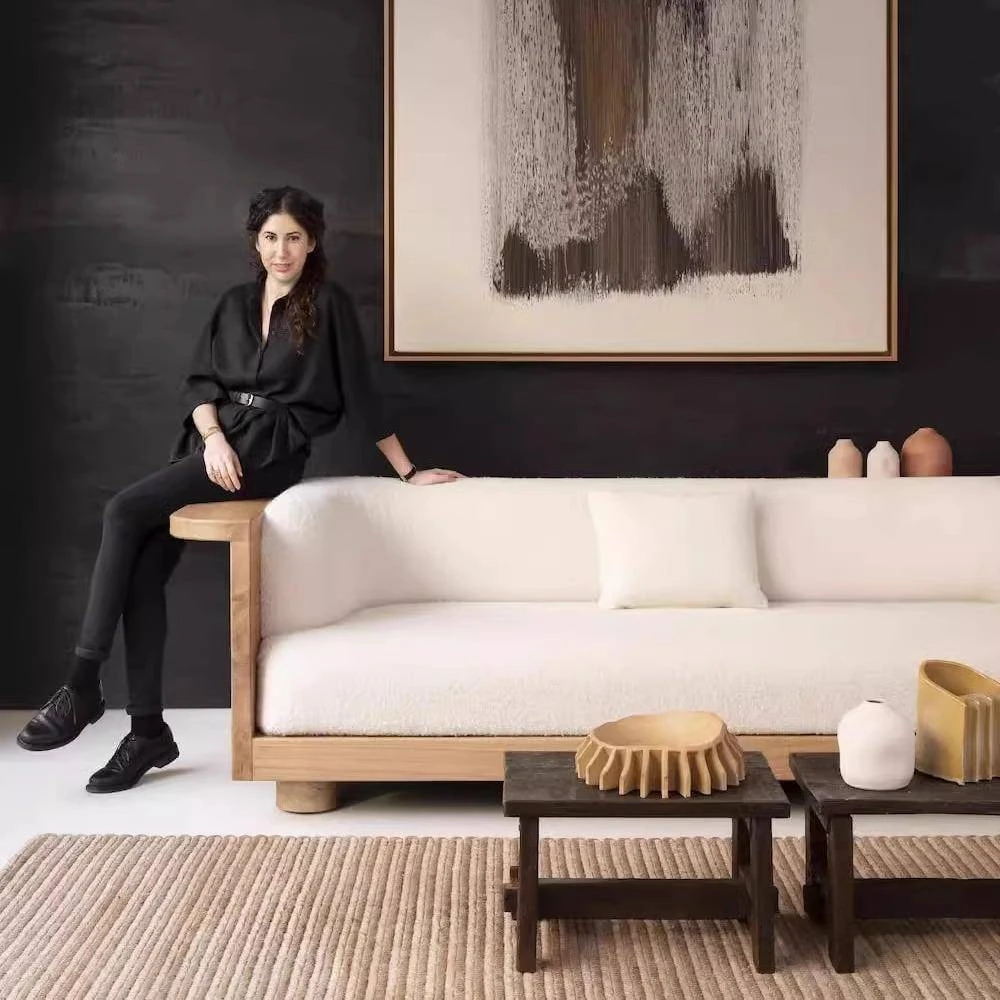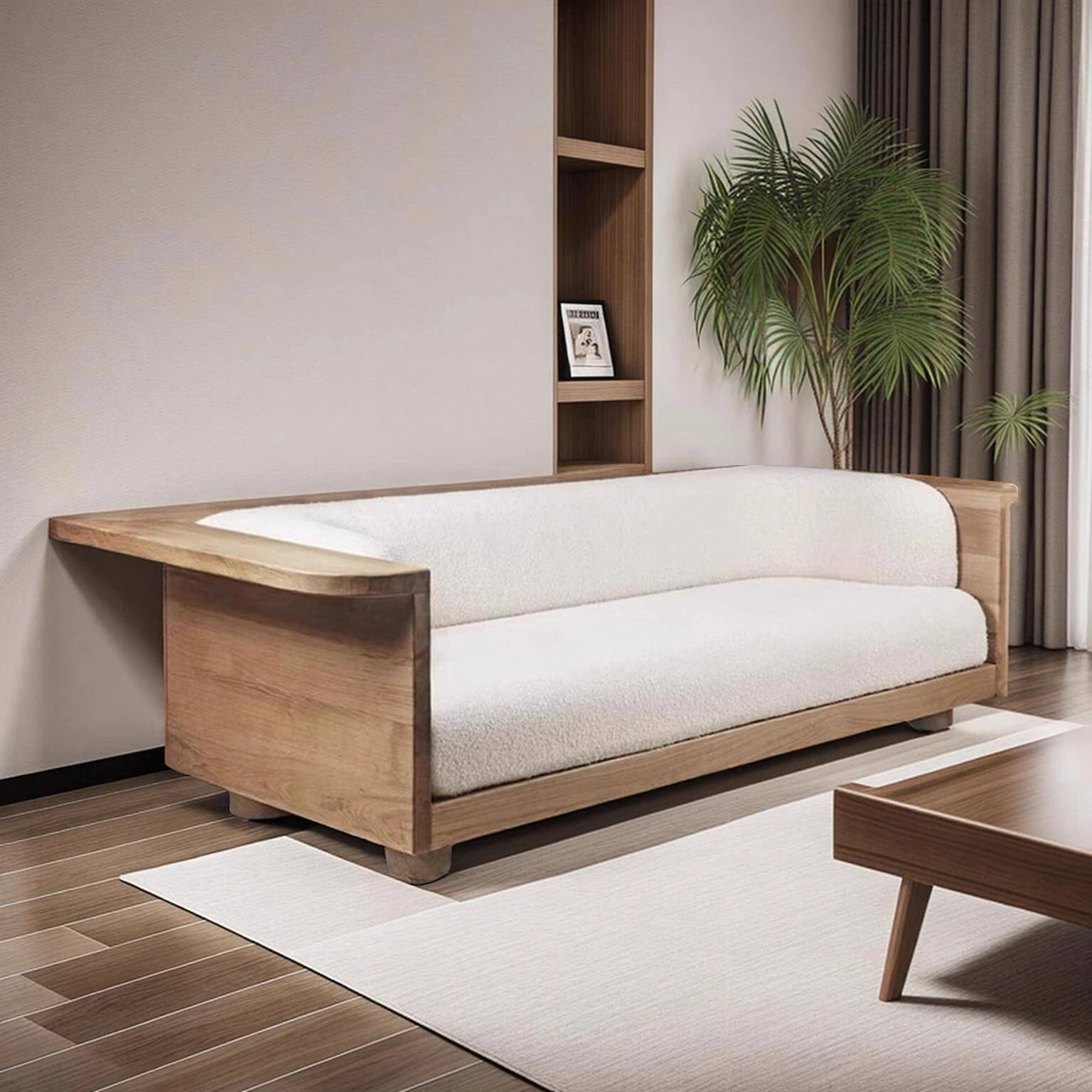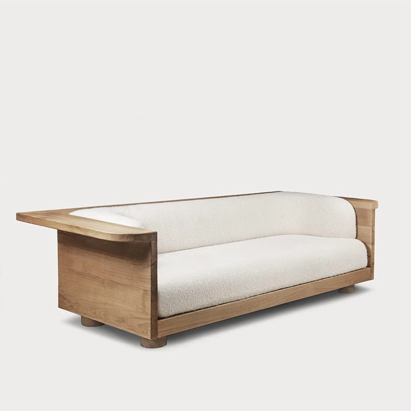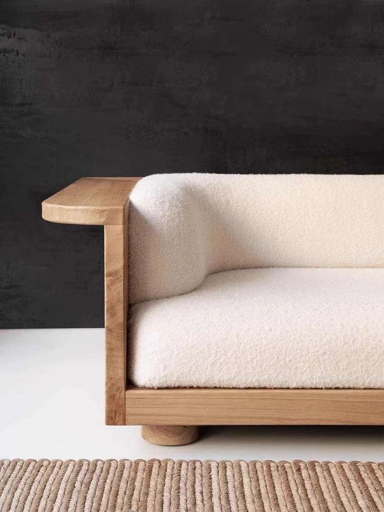 Wabi-Sabi Style Solid Wood Fabric Sofa for Living Room - Perfect for Small Spaces, Cozy Guesthouses, and Family Use - Minimalist Design Multi-Person Sofa Chair in Natural Wood Finish