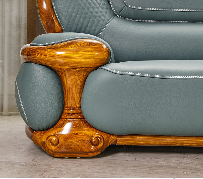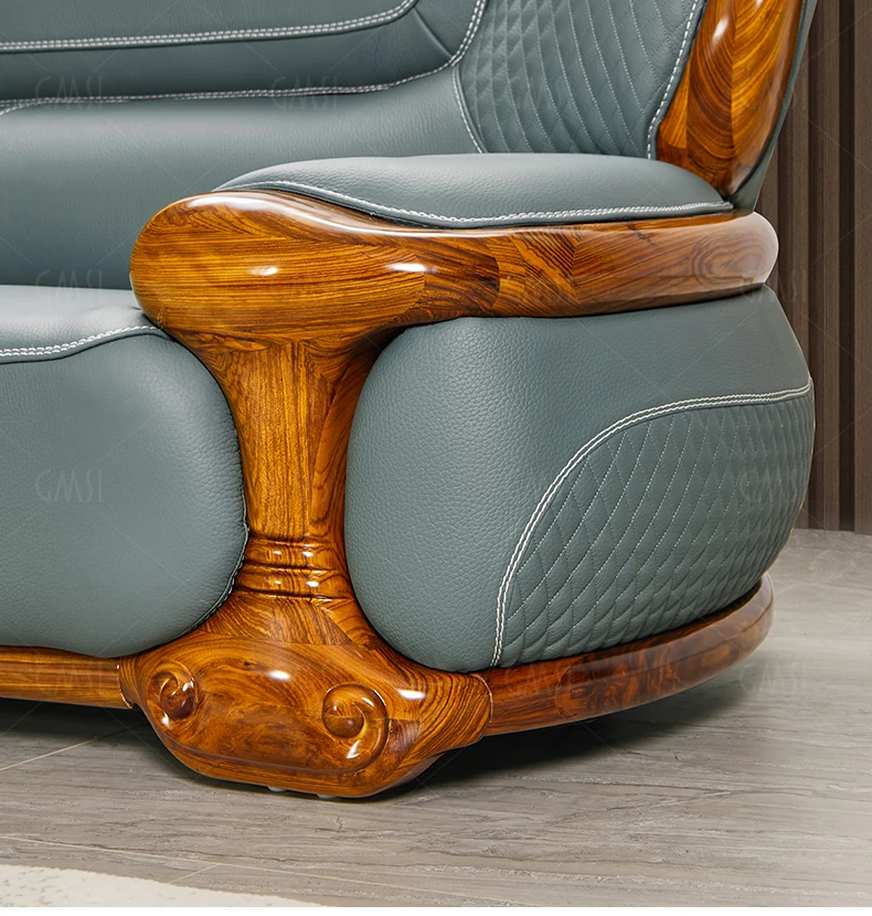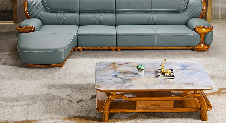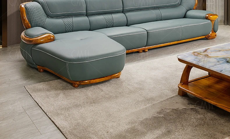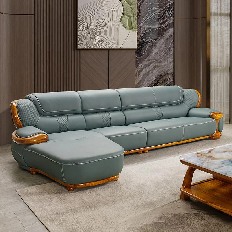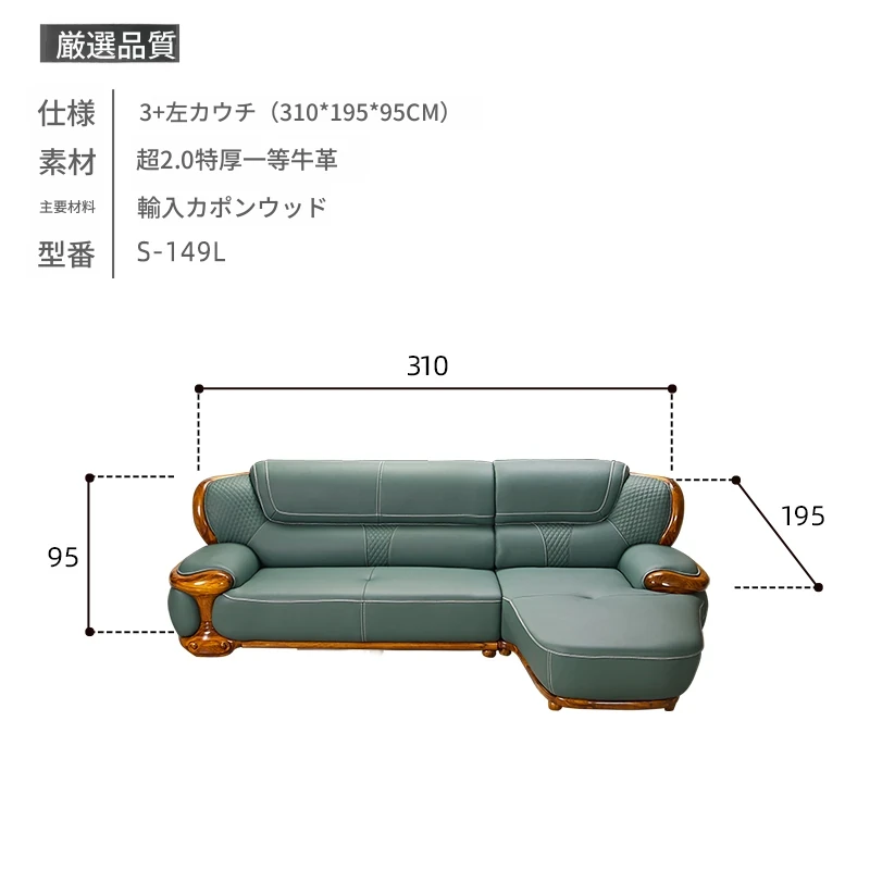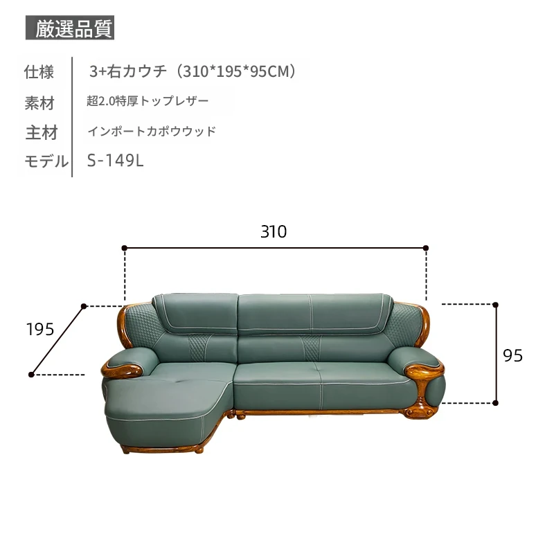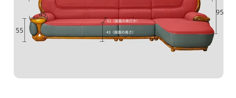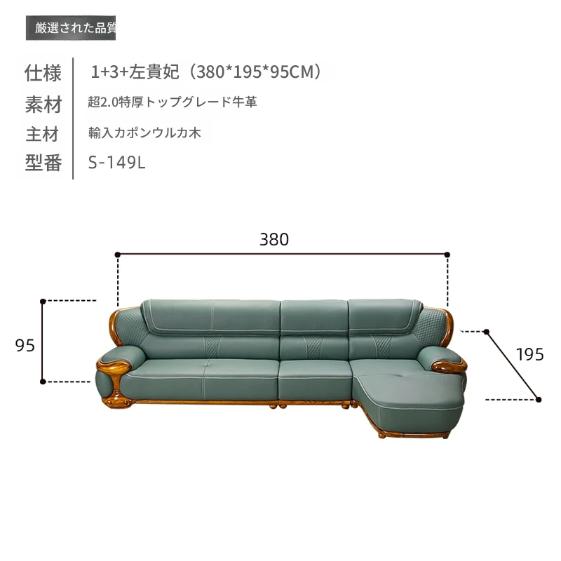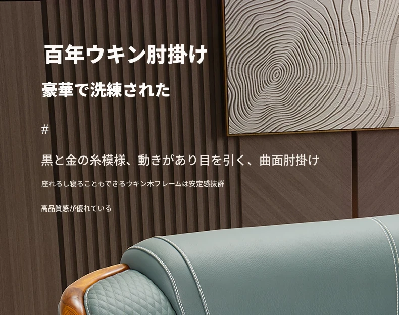 2024年新作!新中式デザインのウッ金木製レザーコーナーソファ。モダンでシンプルなリビングにぴったり。最高級の本革と無垢材使用で、贅沢な座り心地を実現!