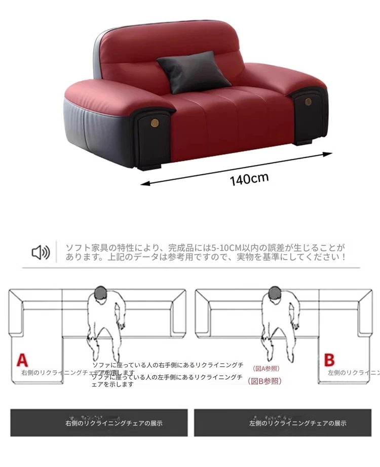 (非電動、機能なし)1.4メートル1人用 接触面頭層牛皮