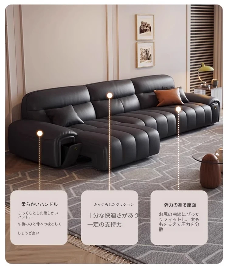 2025年新作!多功能スマート電動伸縮ピアノキー本革ソファ - イタリアンスタイルのシンプルで洗練されたリビングルーム用ソファ!おしゃれで快適な空間を演出します。
