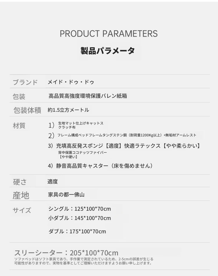 含扶手2.05メートル【通気性ラテックスモデル】 アップグレード油圧+80cmの大座深