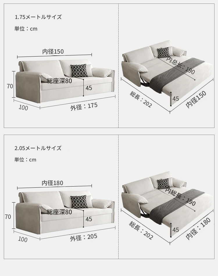 含扶手2.05メートル【高反発スポンジモデル】 アップグレード油圧+80cmの大座深