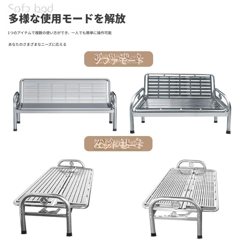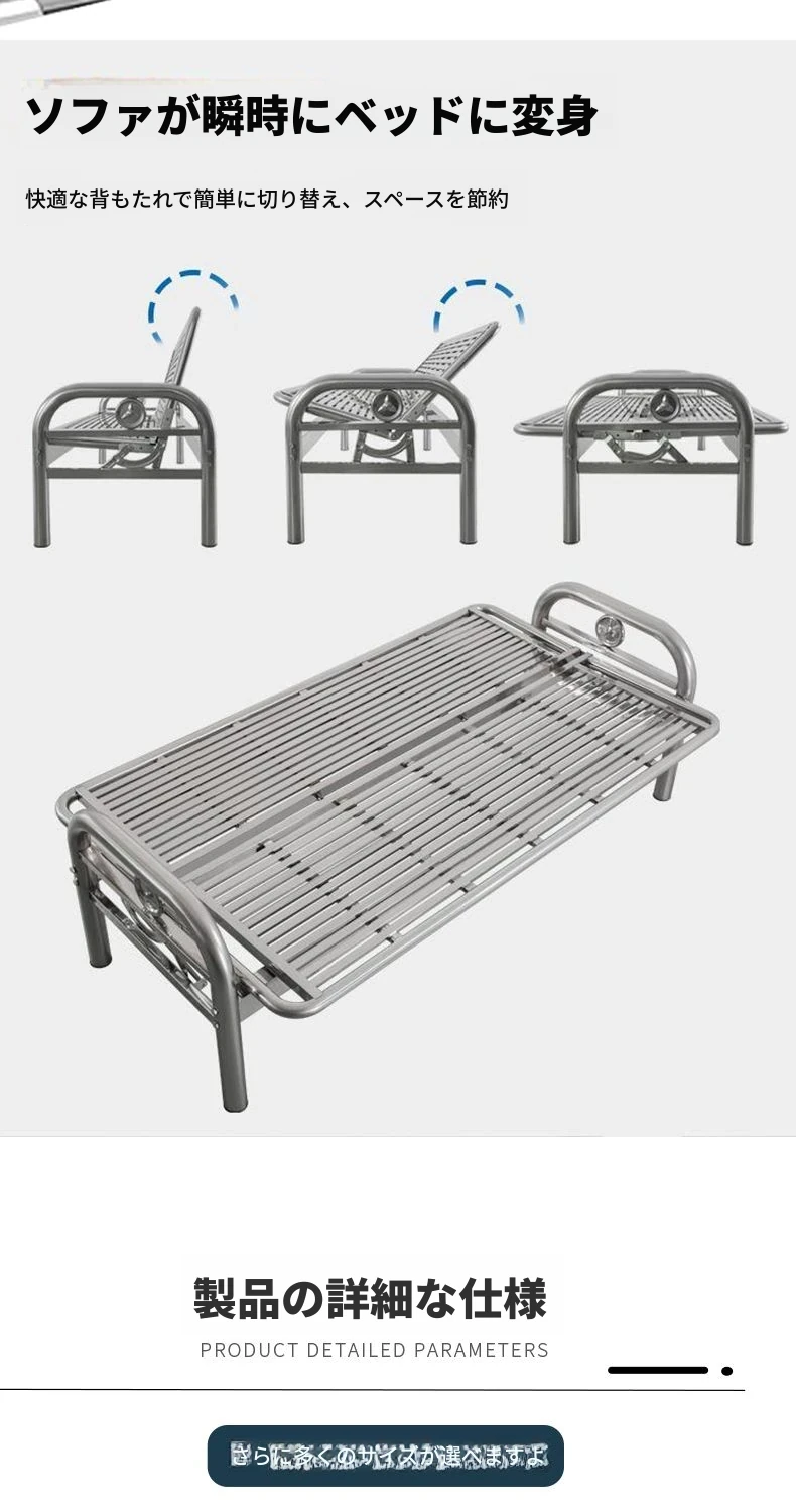 304特厚ステンレス製折りたたみソファベッド - プルアウト&折りたたみ機能付きの多目的ソファチェア!室内外で大活躍するスタイリッシュなデザイン!快適さと便利さを兼ね備えた一台二役のアイテムです。