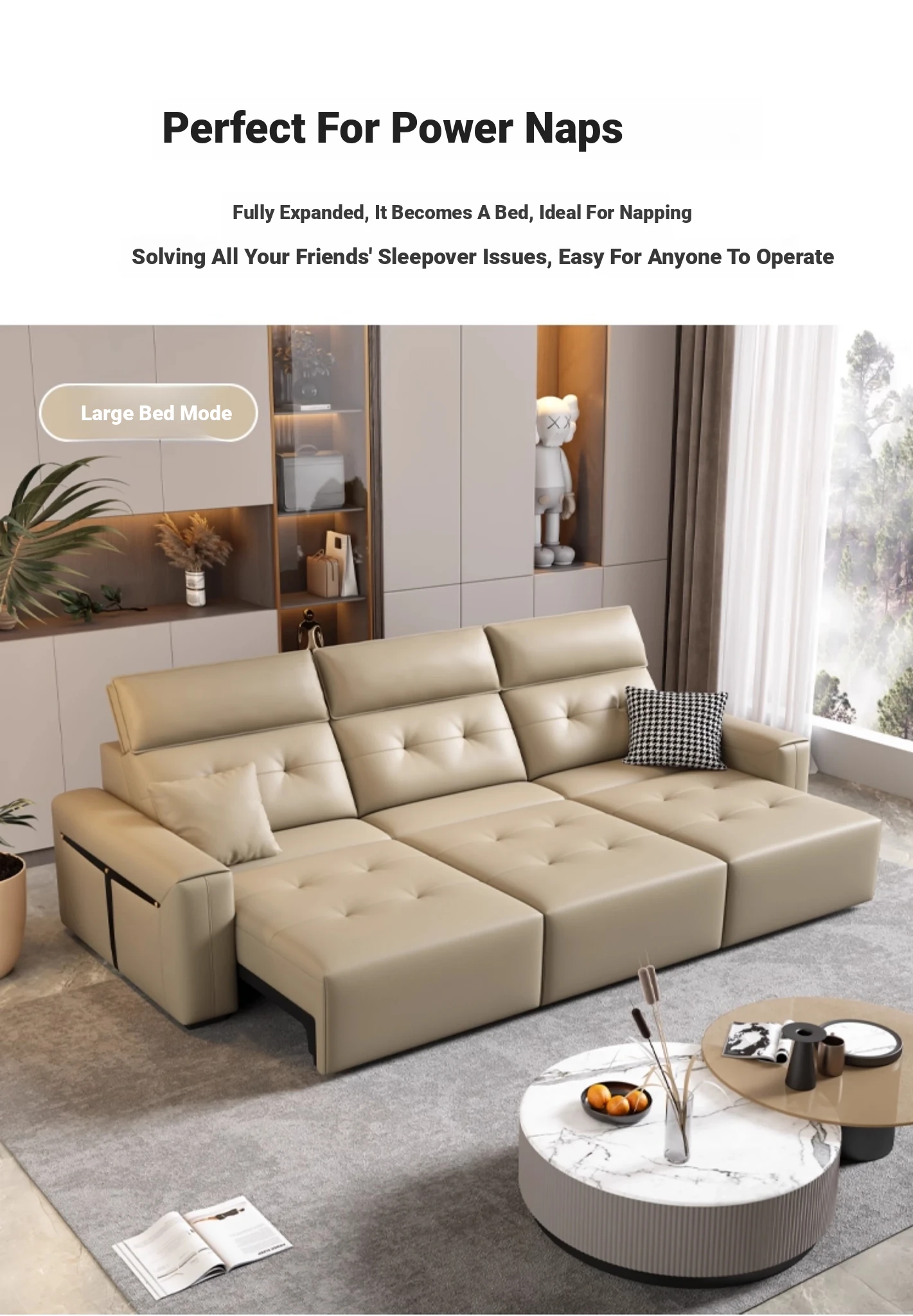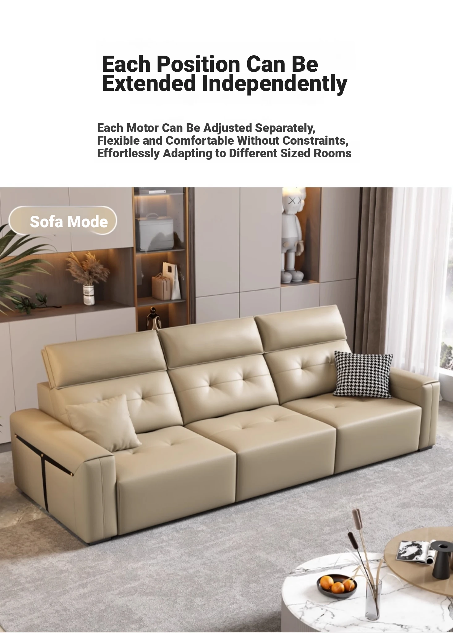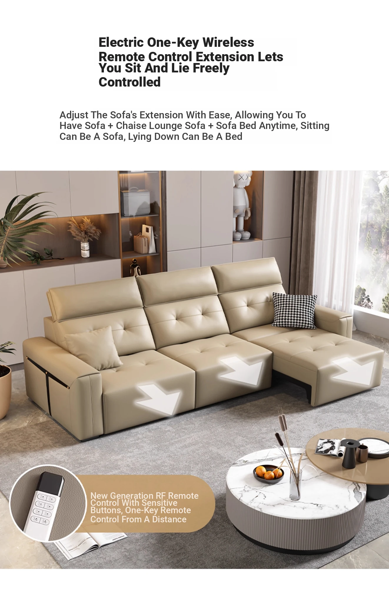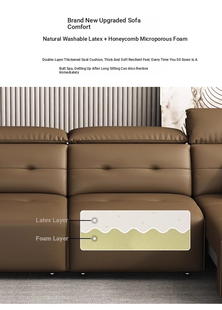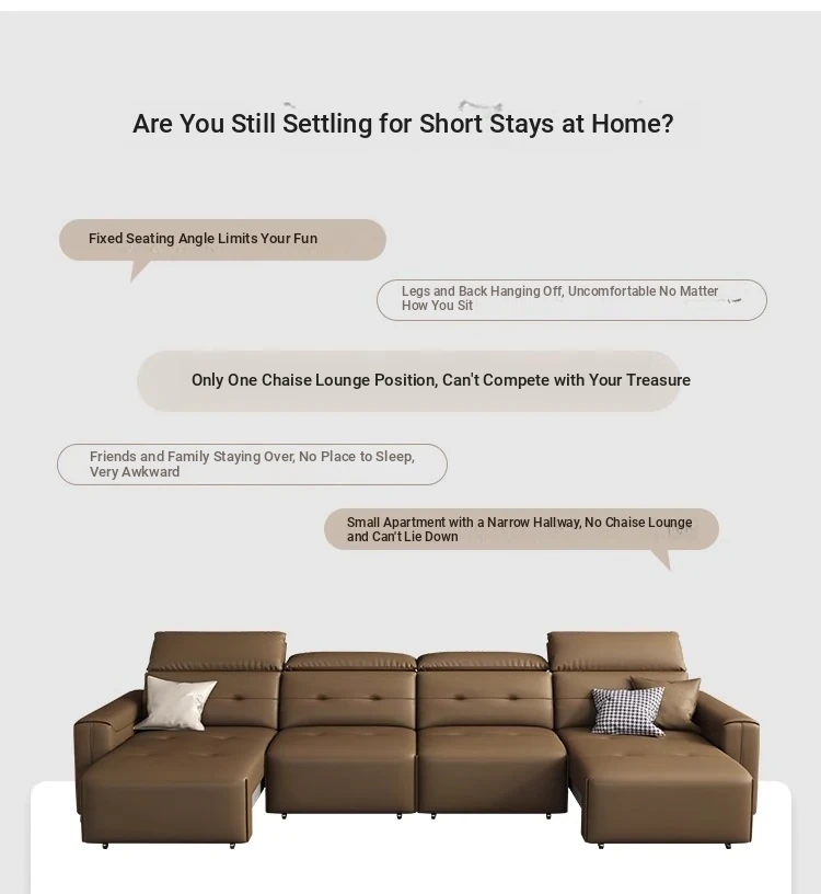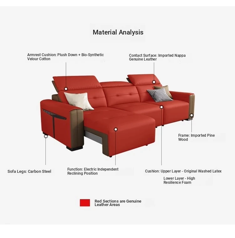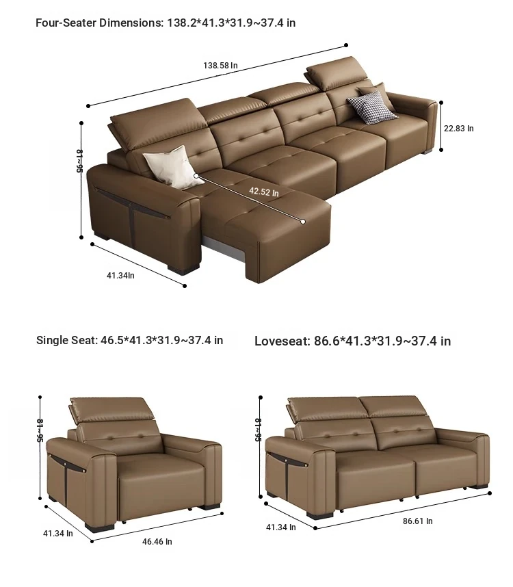 Adjustable Electric Leather Sofa Bed for Living Room - Dual Function, Expandable Design, Luxurious Top-Grain Leather, Perfect for Home Theater Use