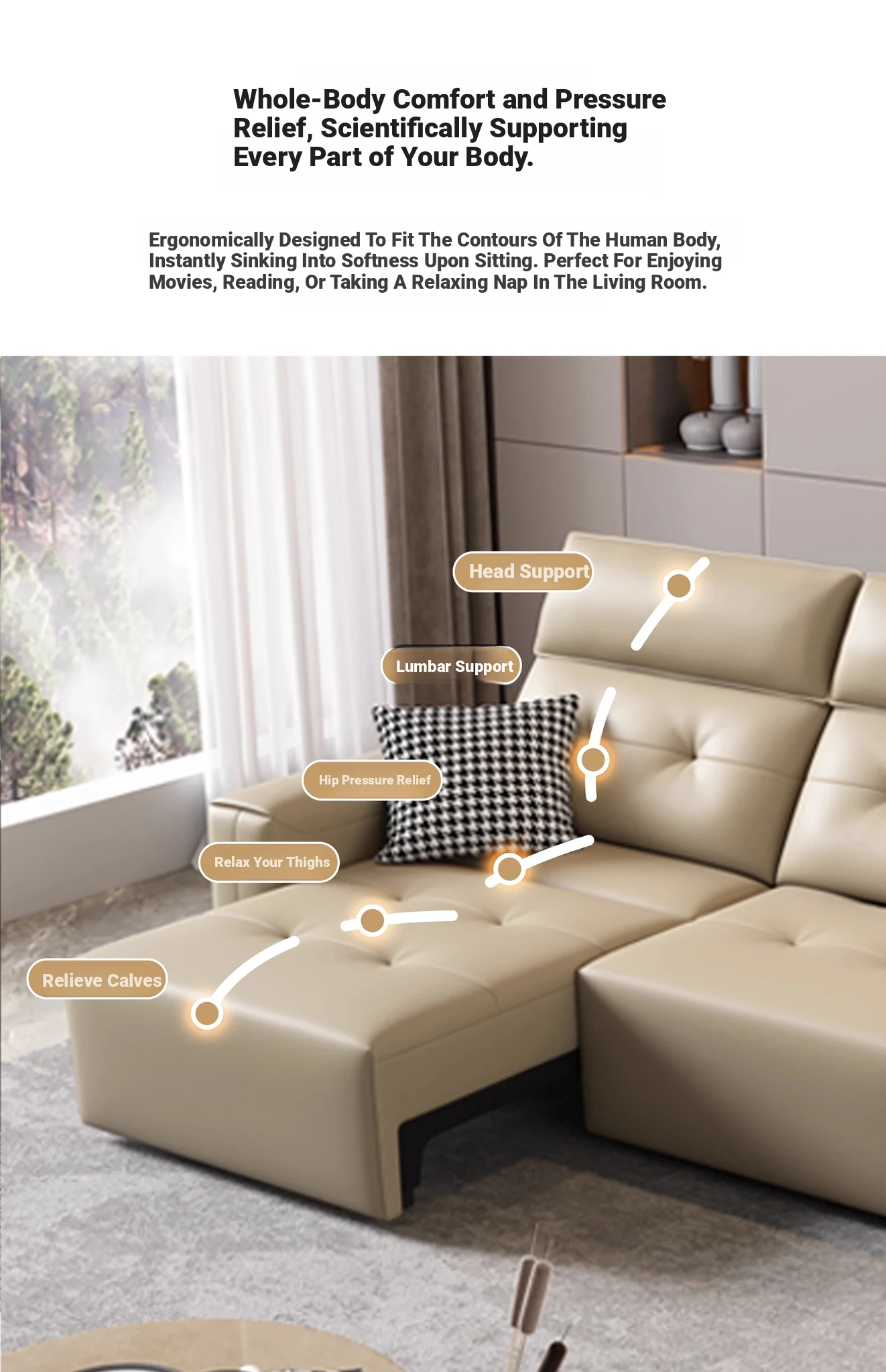 [Thickened first layer cowhide] straight 129.92in [three electric] headrest multi-gear adjustable