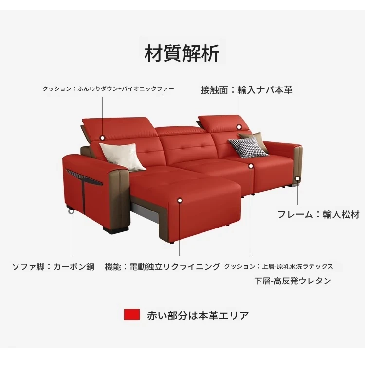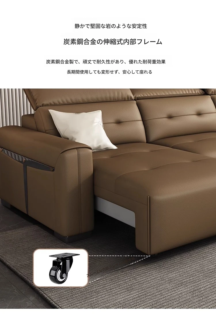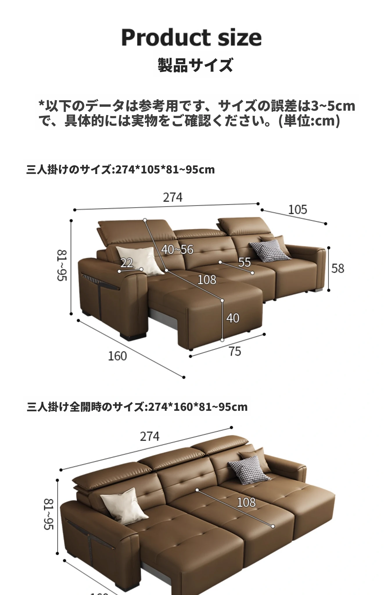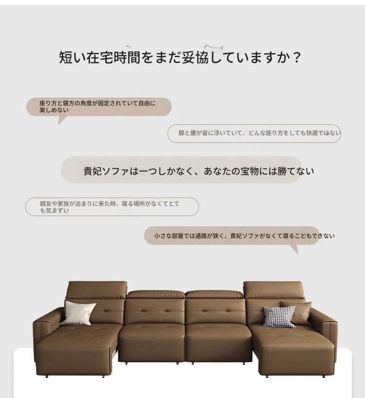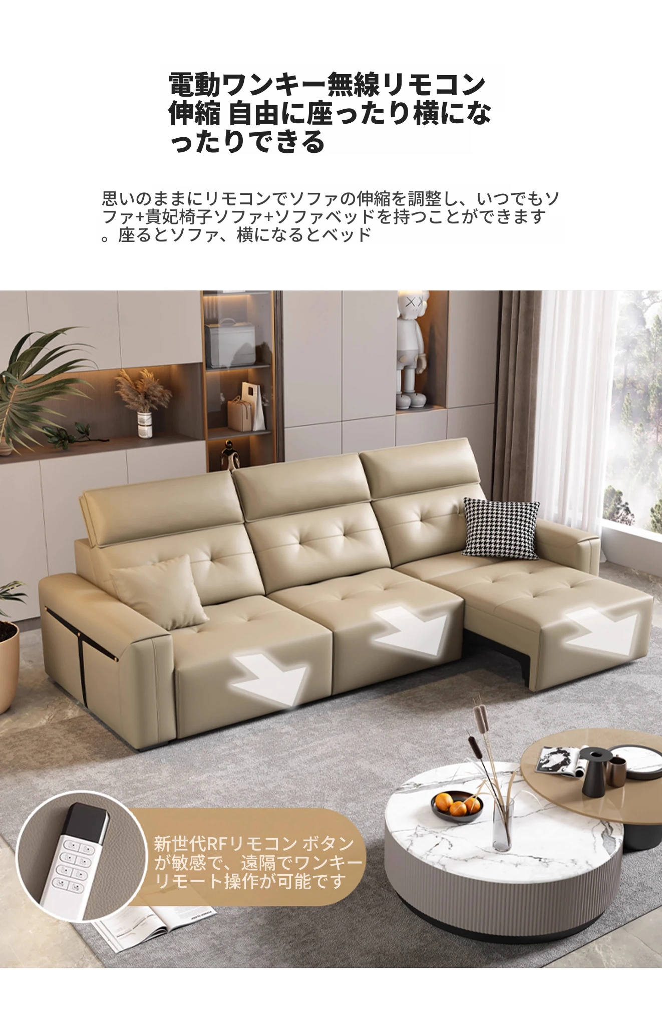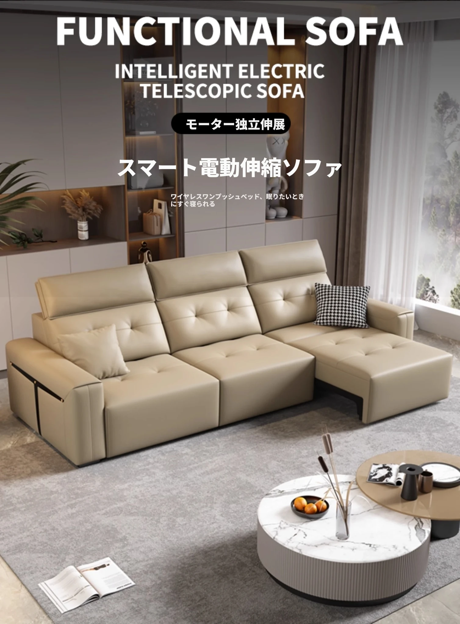 リビングに最適!機能性電動本革ソファベッド - スライド式・調整可能なヘッドレスト付き、最高級の牛革使用で家庭映画館体験を実現!快適さとスタイルを兼ね備えたソファです。