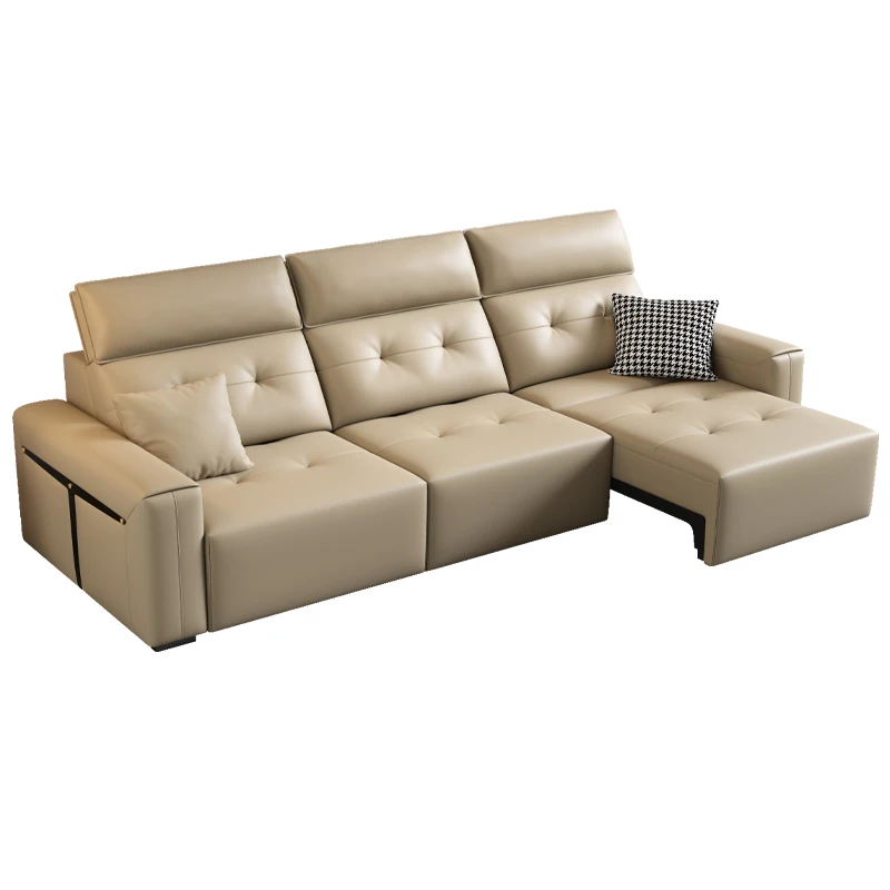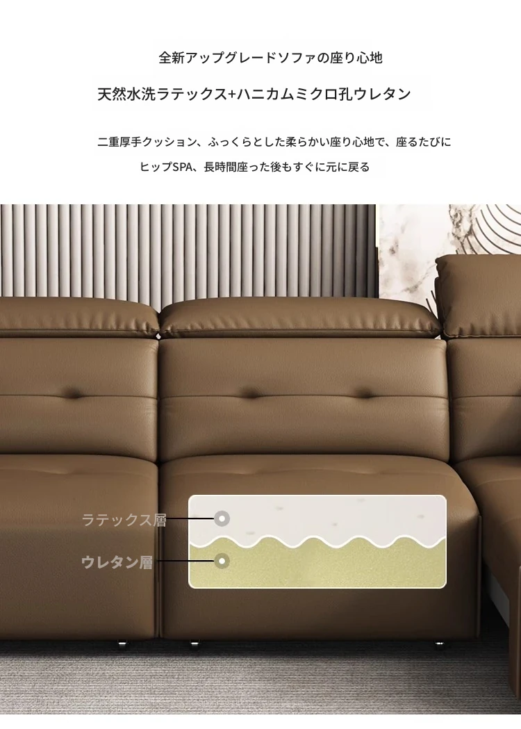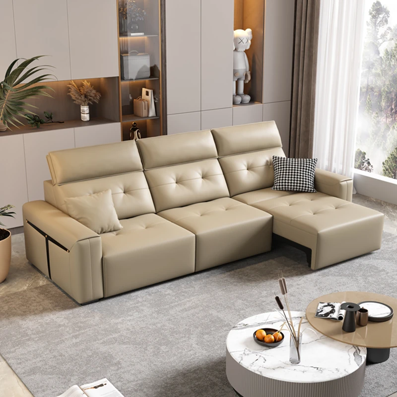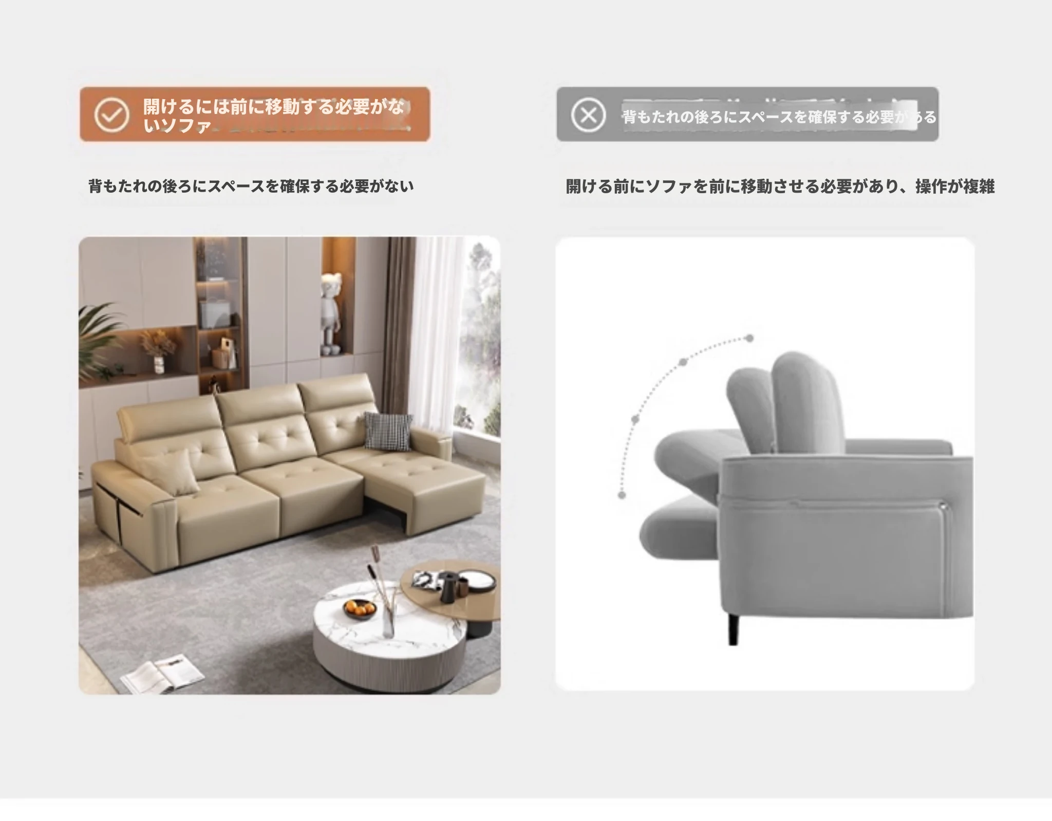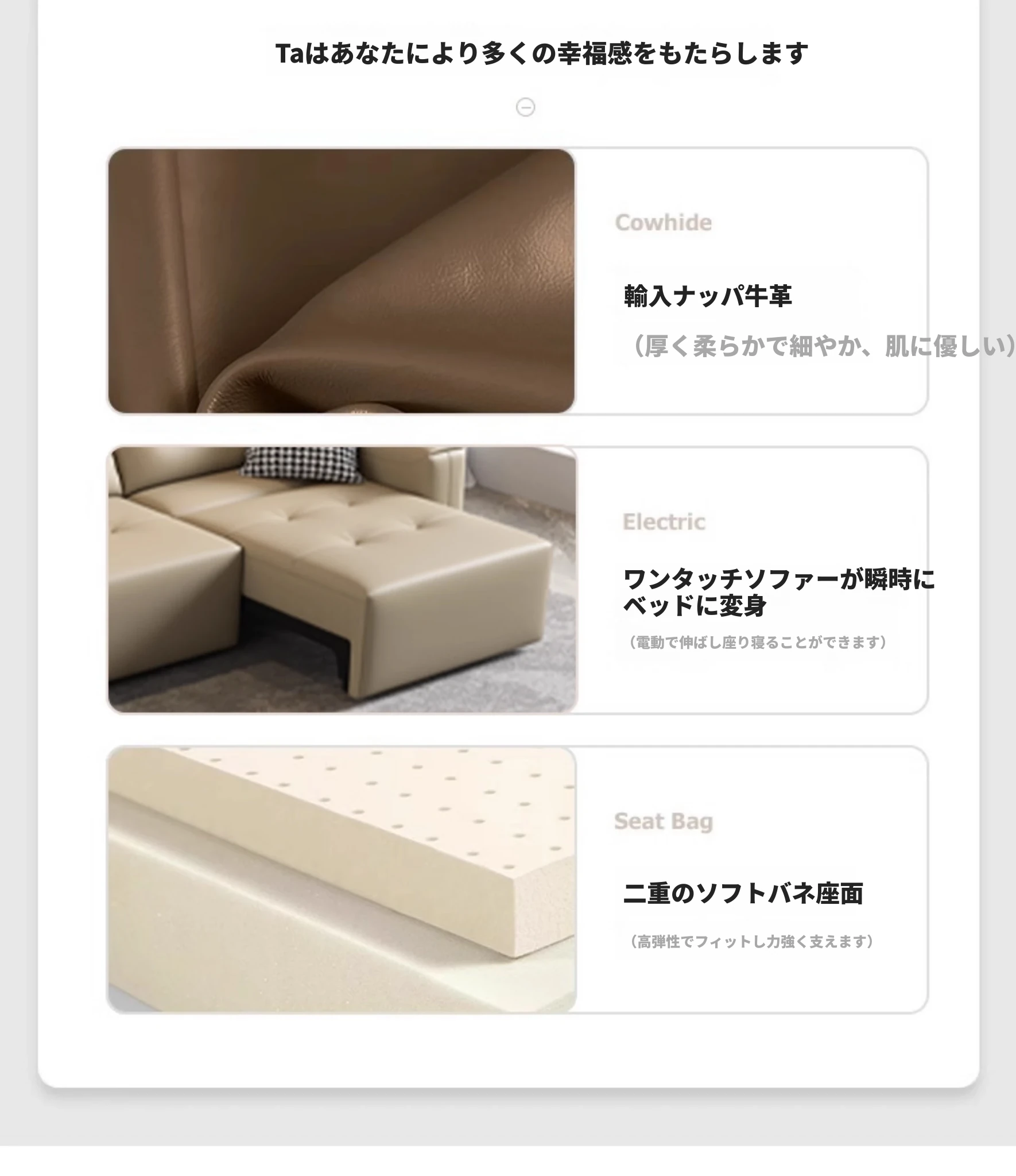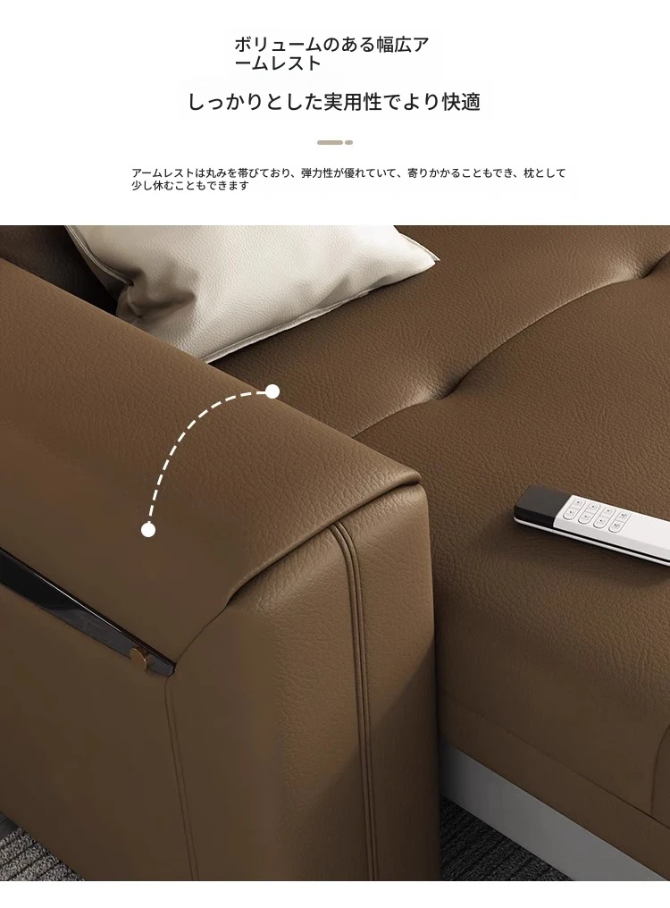 リビングに最適!機能性電動本革ソファベッド - スライド式・調整可能なヘッドレスト付き、最高級の牛革使用で家庭映画館体験を実現!快適さとスタイルを兼ね備えたソファです。