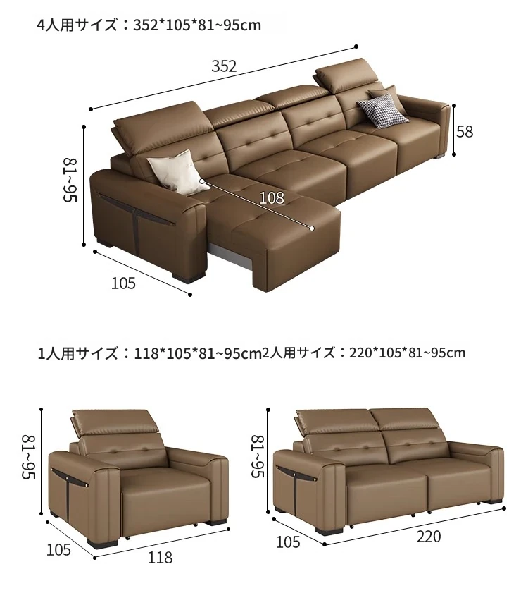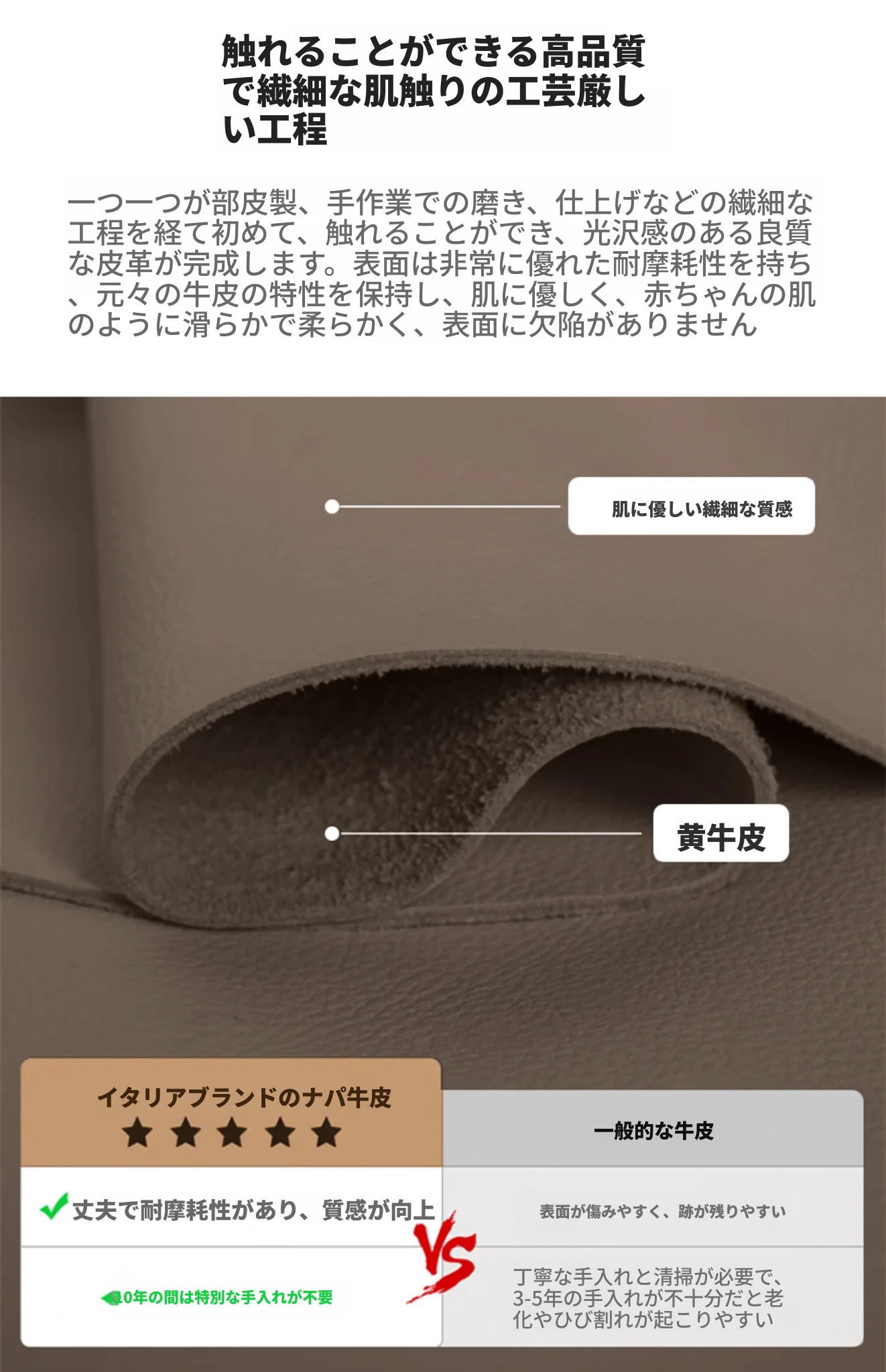 【厚手の牛革】ストレート342CM【トリプル電動】ヘッドレスト多段調整可能
