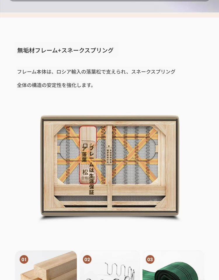 【锐迈電機】実木フレーム+45D高密度スポンジ+バイオレット水感スポンジ