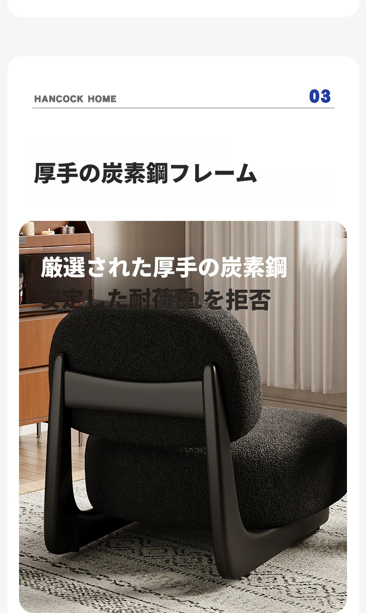黒ソファチェア【カーボンスチール-シェニールベルベット】