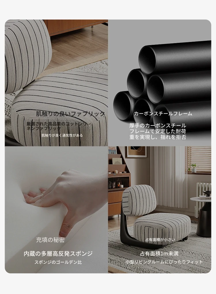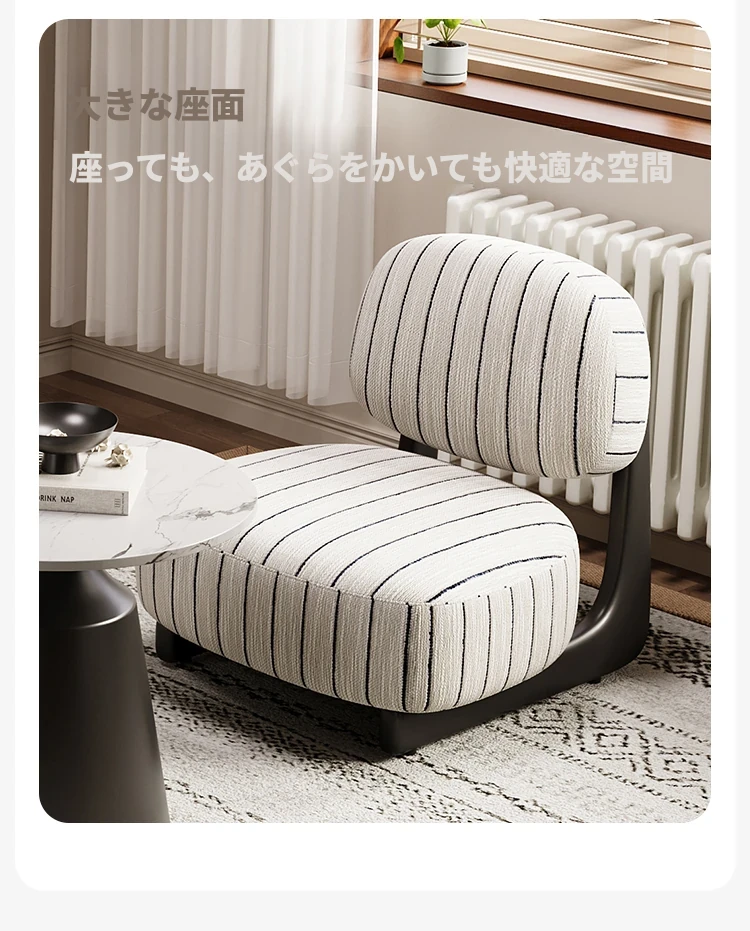白ソファチェア【カーボンスチール-シェニールベルベット】
