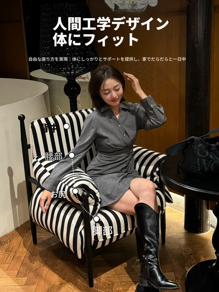 赤ウ休閒ソファチェア|天然木製・高背・家庭用デザイナーフレンチ中古スタイル・軽奢華・リラックス一人掛け椅子で、心地よいひとときをお楽しみください。