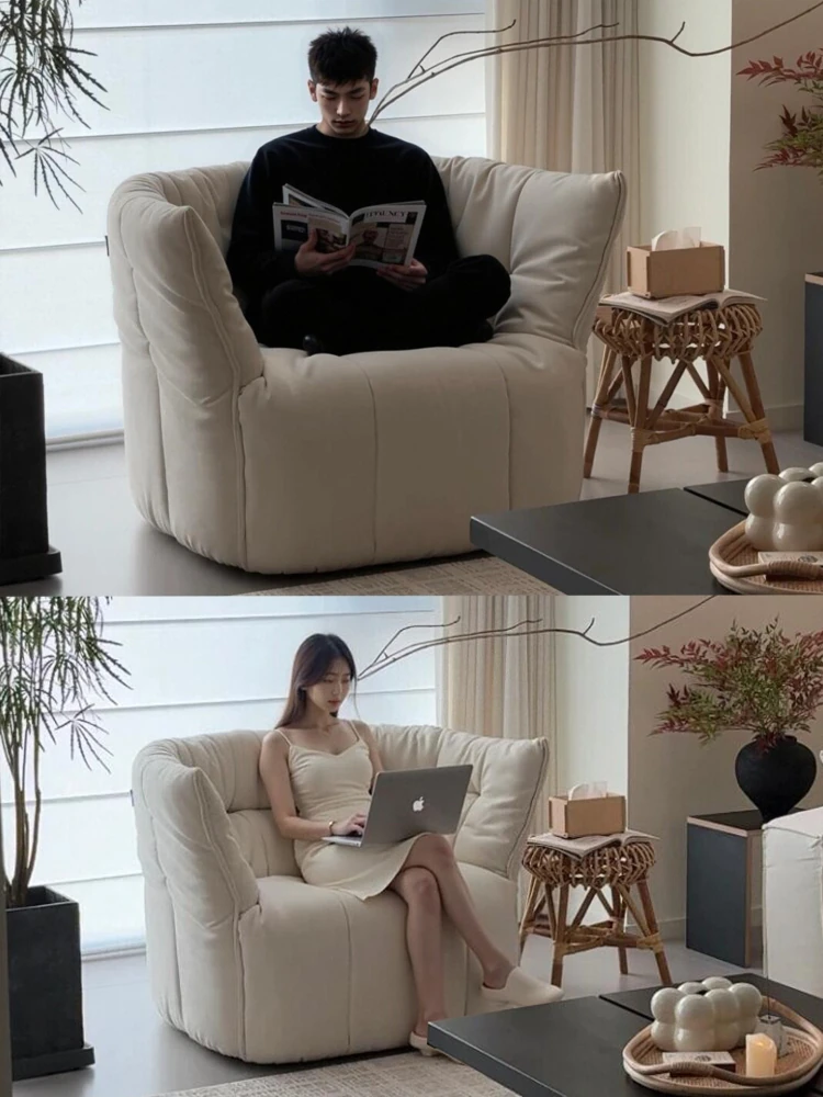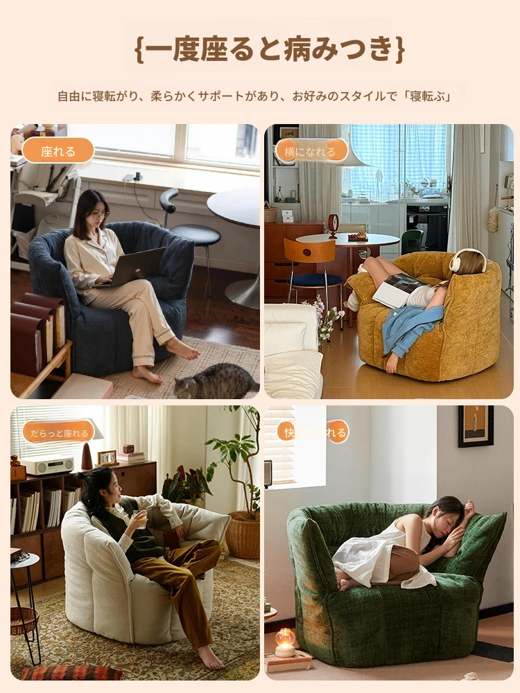 リラックスできる布製の一人掛けソファーチェア - バルコニーや寝室に最適なブリガンディ色、くつろぎの時間を提供!寝転がれるデザインで、あなたと愛犬の快適なひとときを演出します。