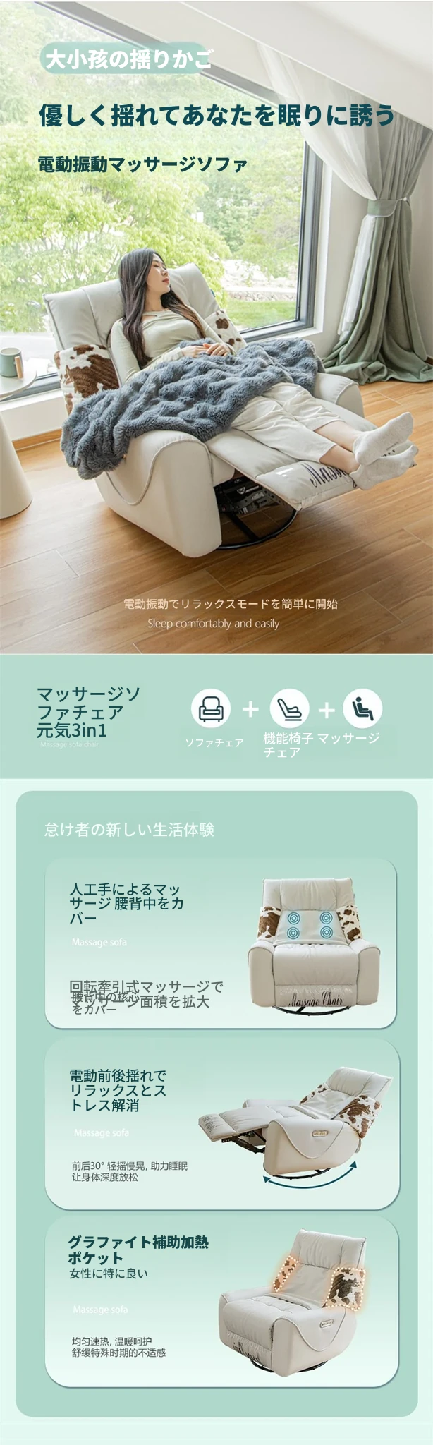 至高のスペースカプセルソファ!多機能でリラックスできる一人用、寝転びながらくつろげるリビングやバルコニーに最適なマッサージ電動ロッキングチェア。あなたの心地よいひとときを提供します!
