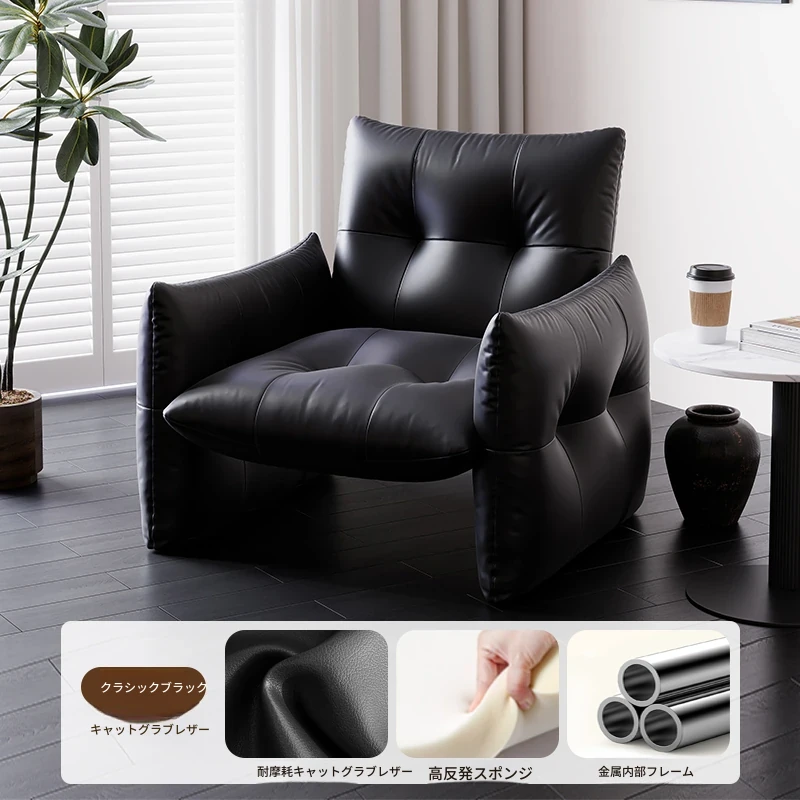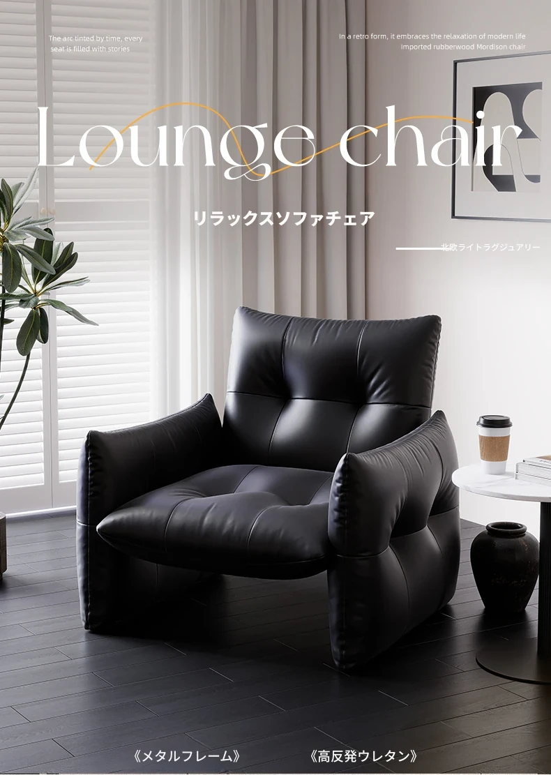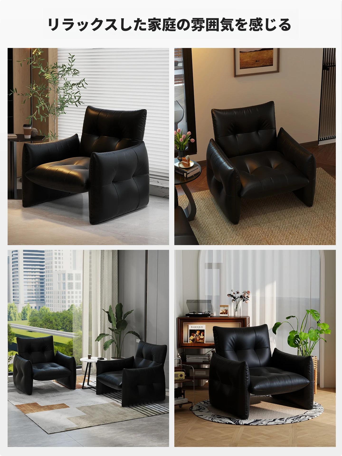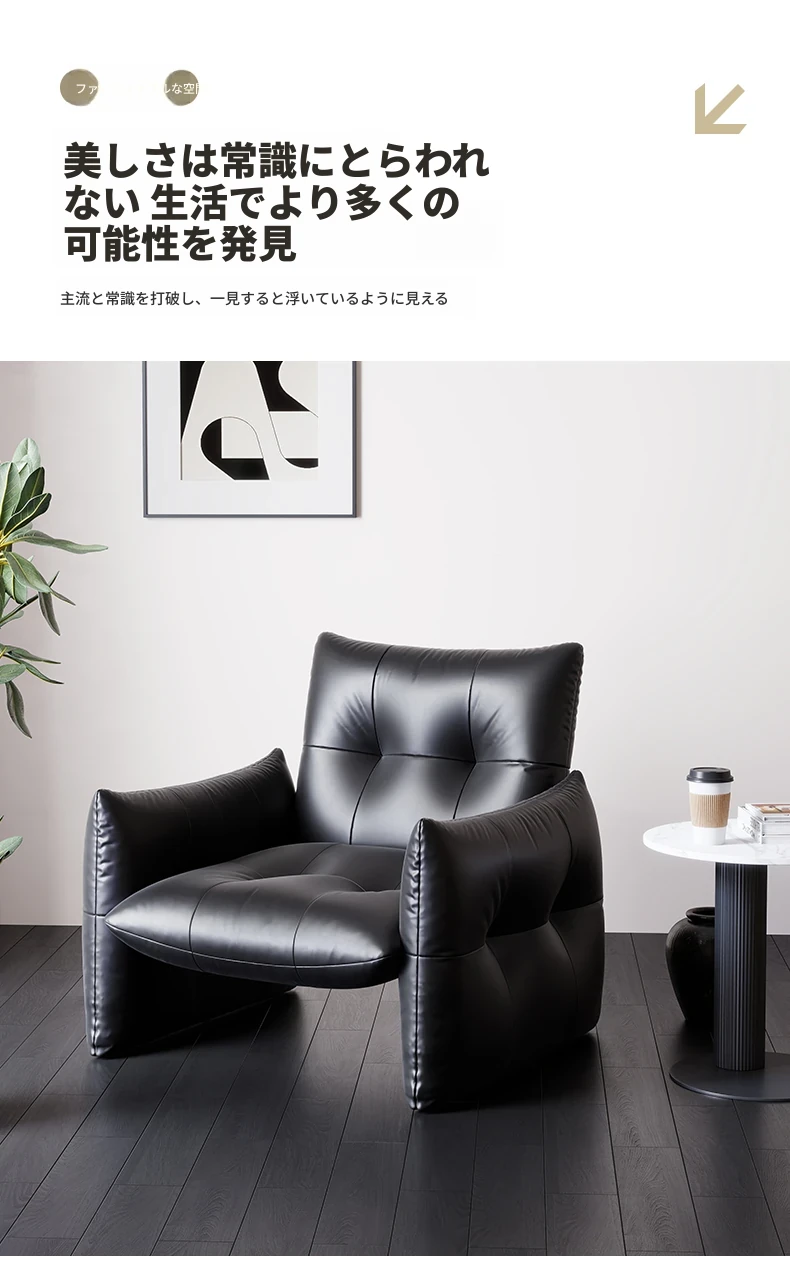 デザイナーズ イタリアン 一人掛けソファ|バウハウススタイルのクリエイティブなリビング・バルコニー用|快適な休憩スペースに最適なレザーソファ|おしゃれな接待エリアにぴったり!
