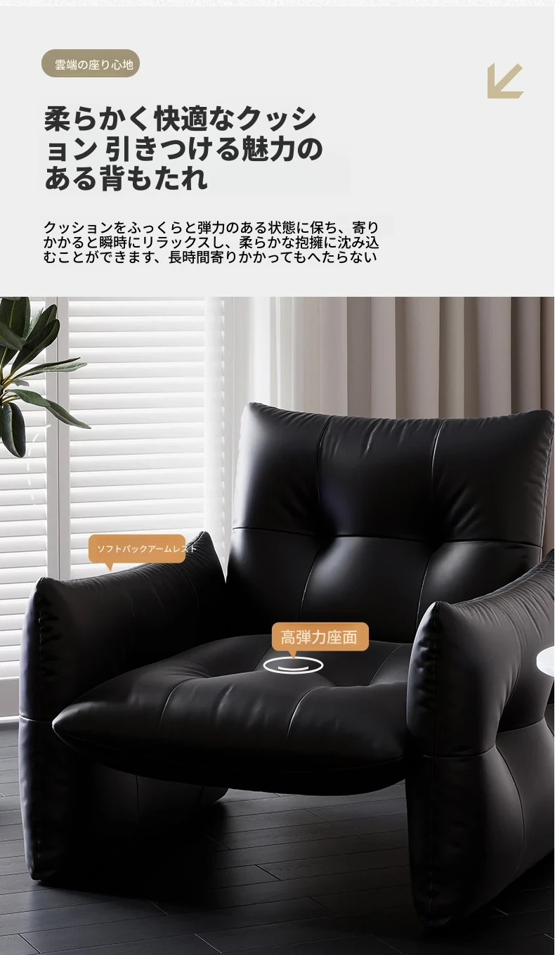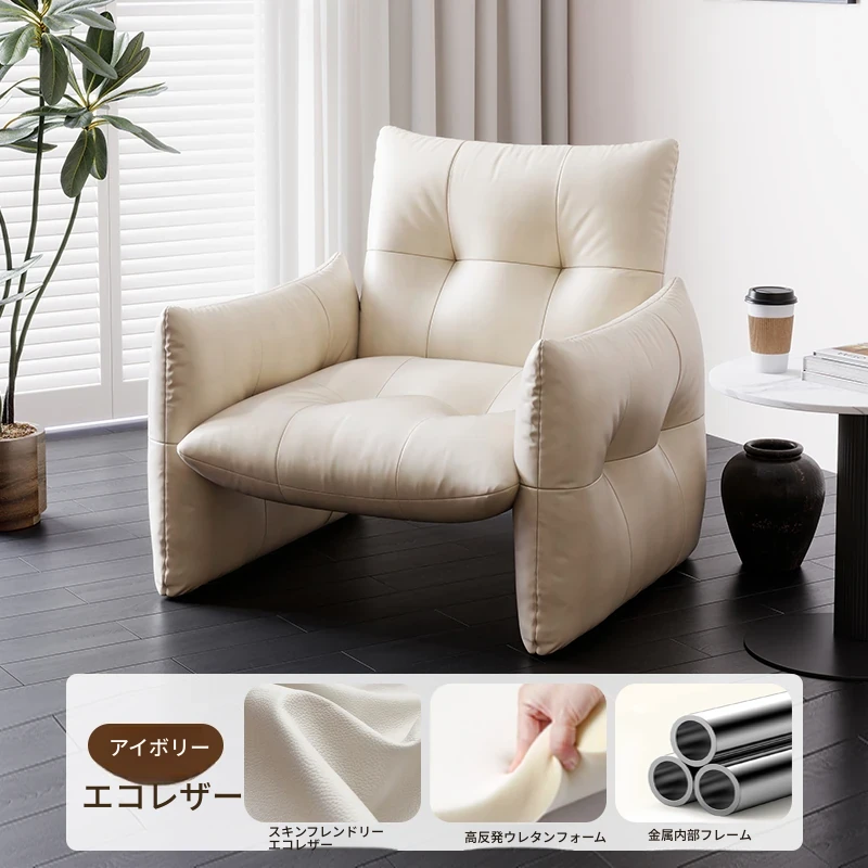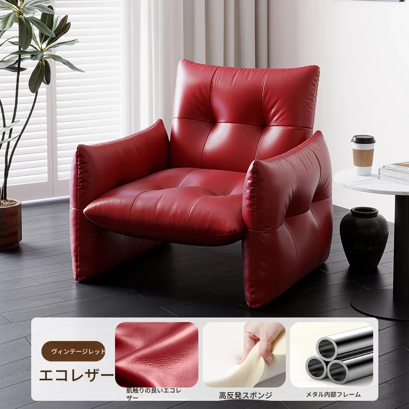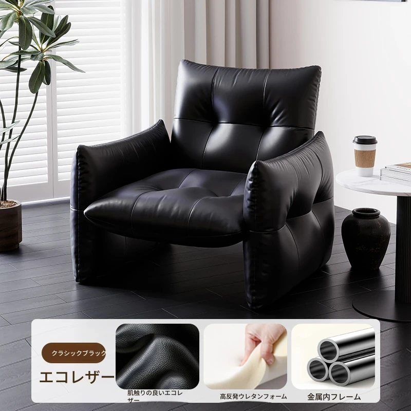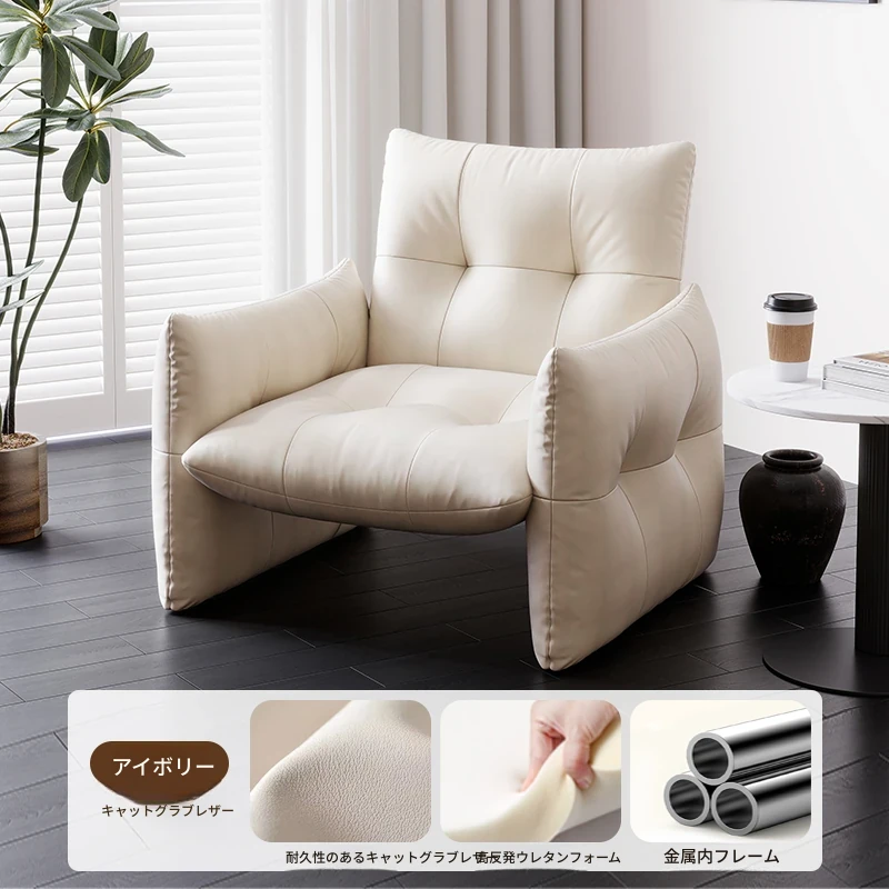 デザイナーズ イタリアン 一人掛けソファ|バウハウススタイルのクリエイティブなリビング・バルコニー用|快適な休憩スペースに最適なレザーソファ|おしゃれな接待エリアにぴったり!