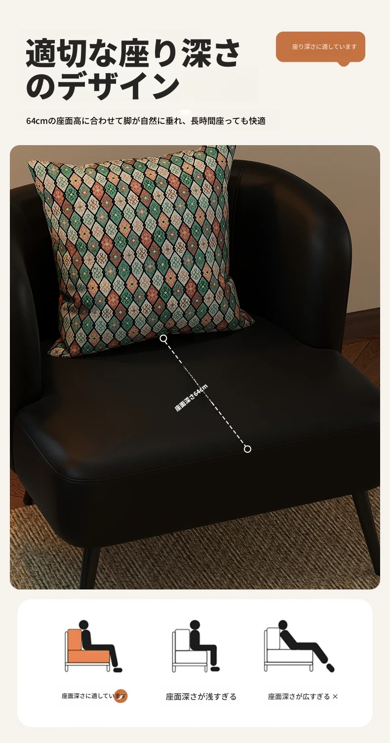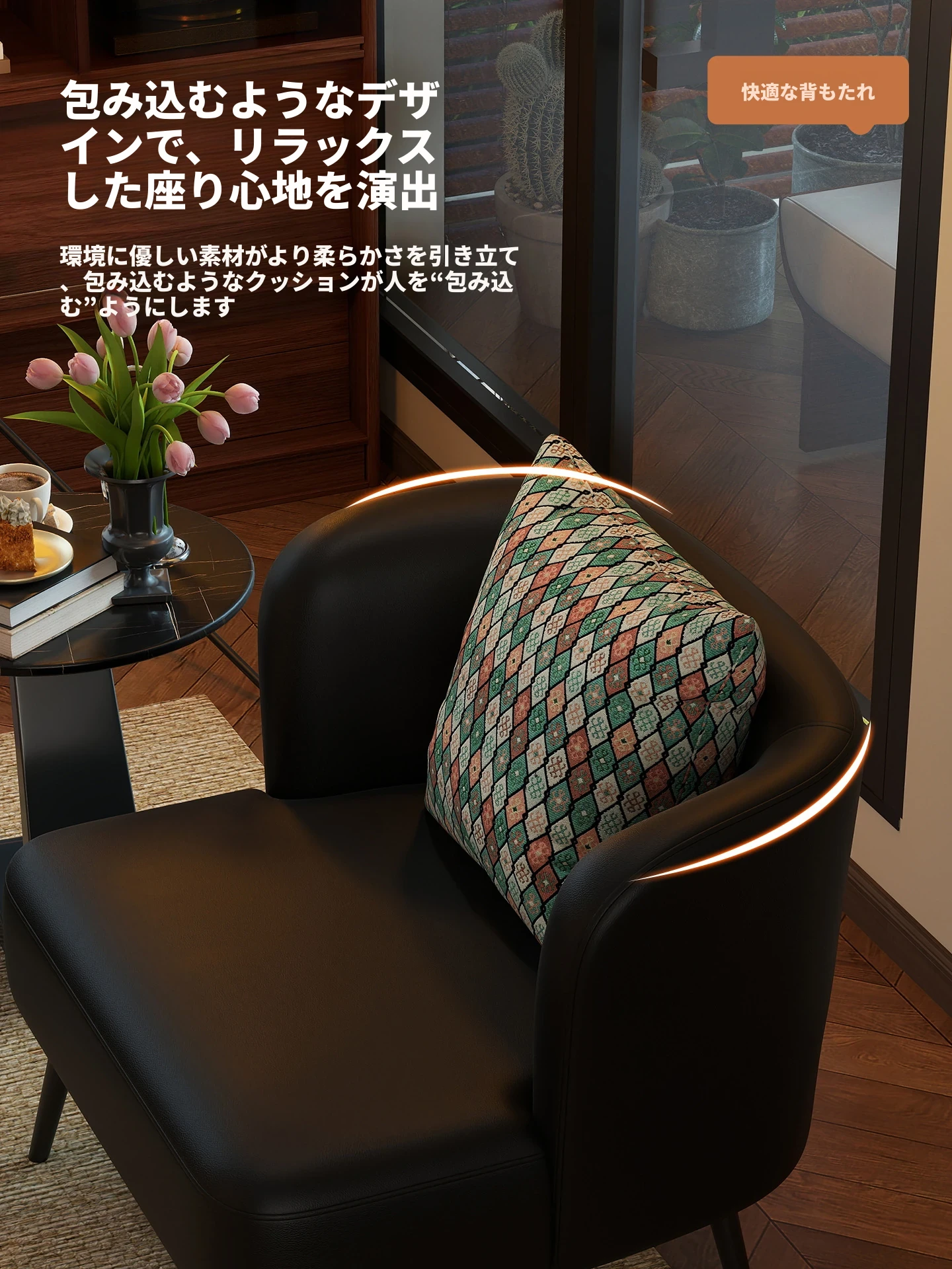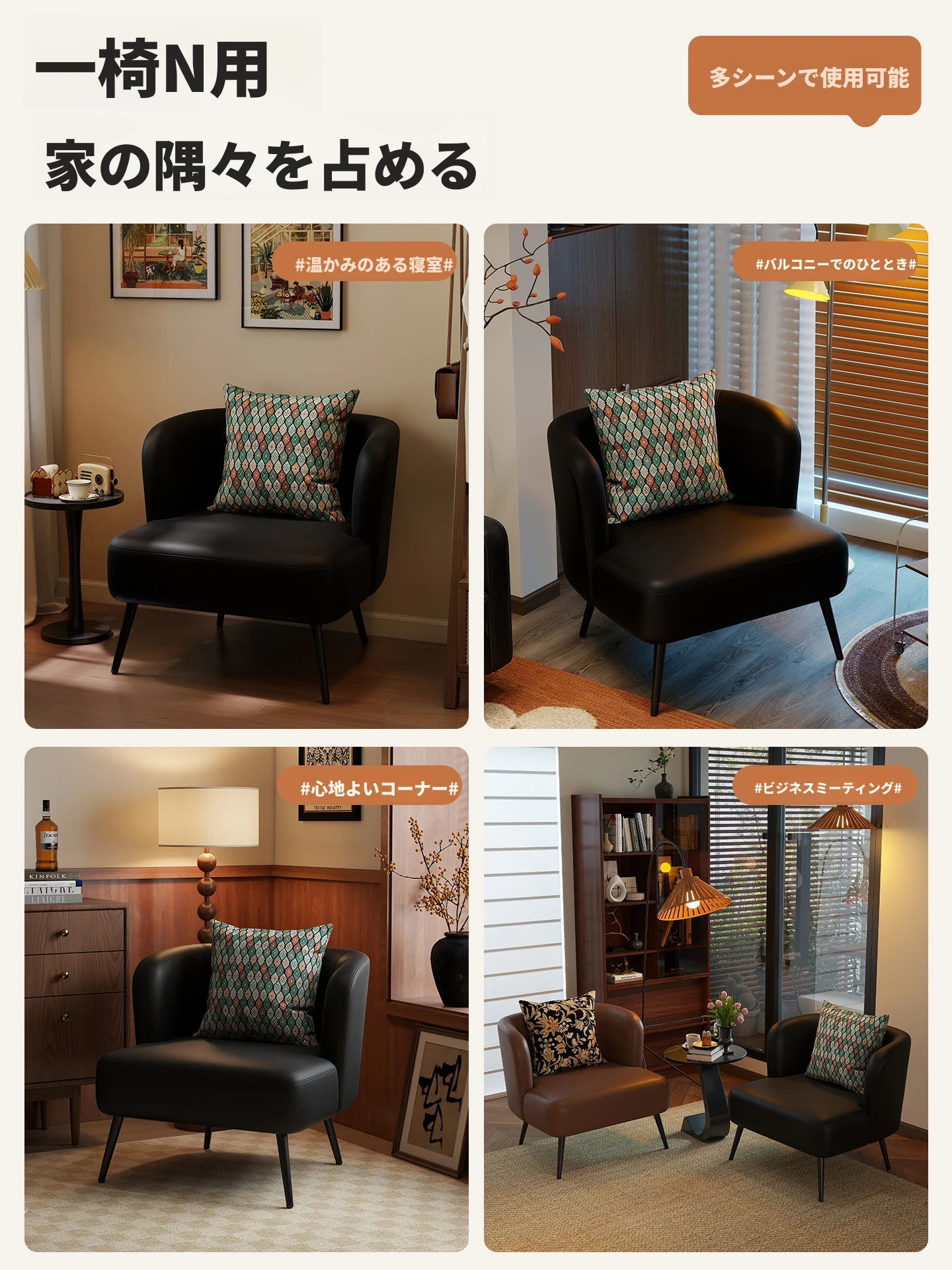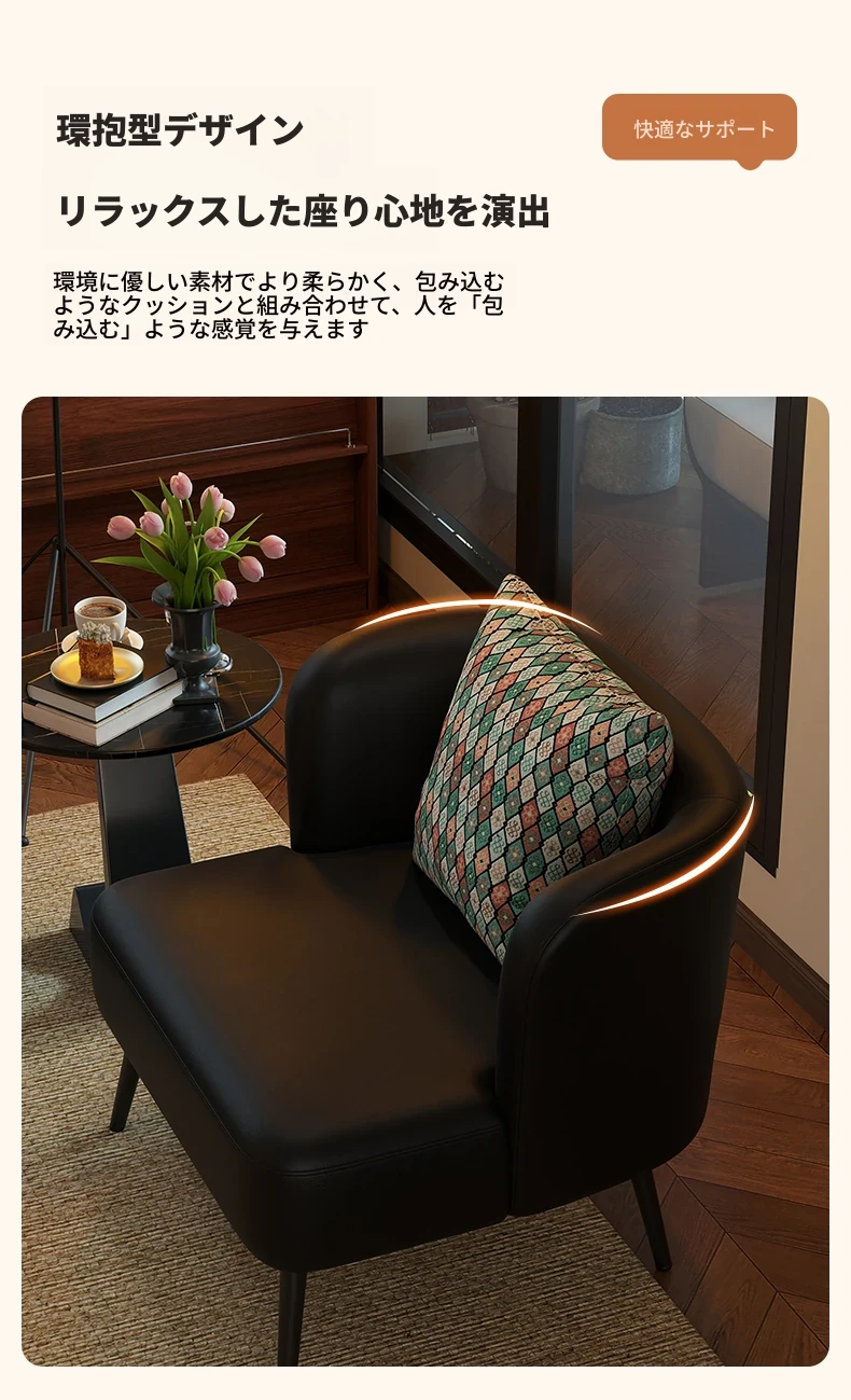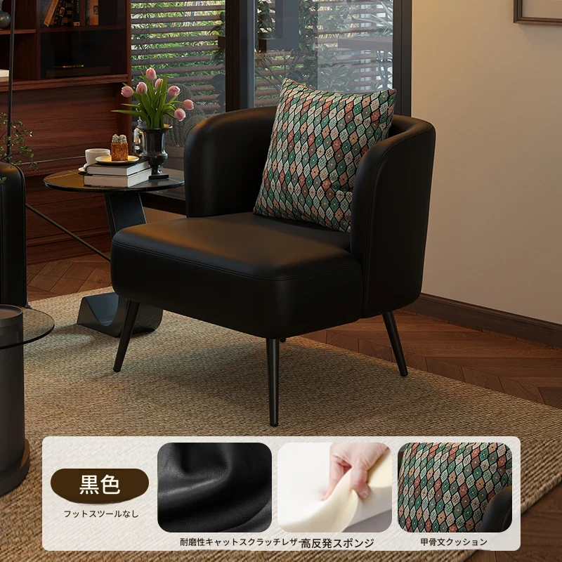 デザイナーズ感漂う中古一人用ソファチェア - モダンでシンプルなレザー製、家でも使えるおしゃれな接待椅子。小さなスペースにもぴったりのリラックスアイテム!