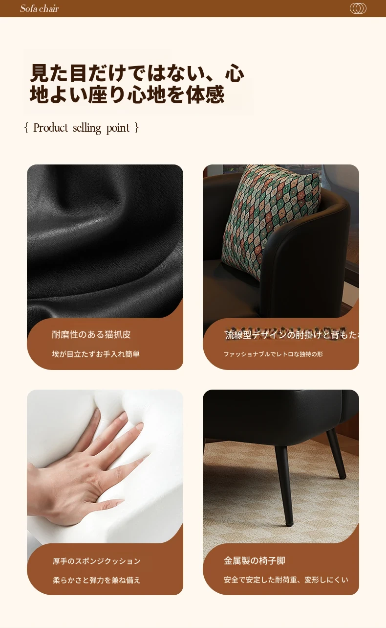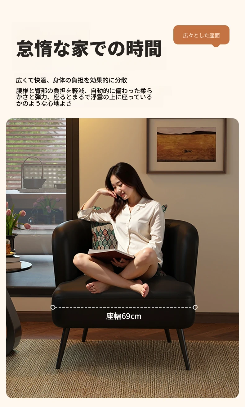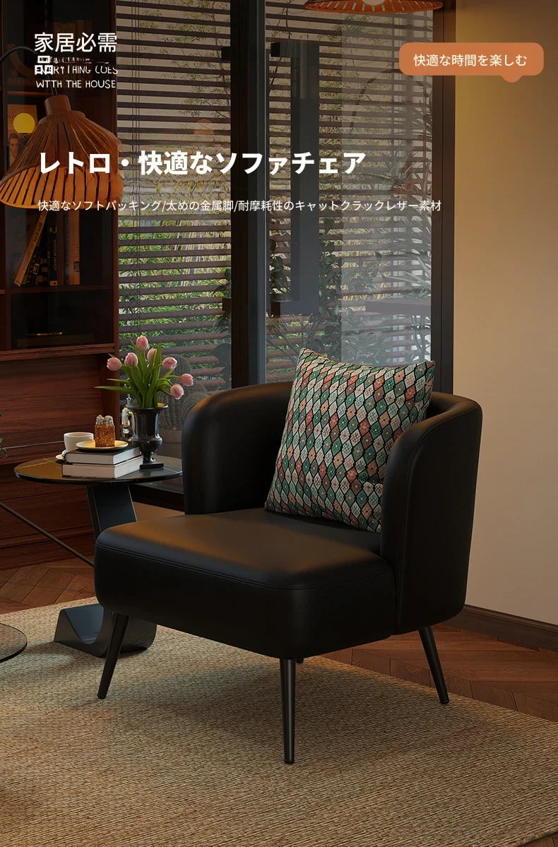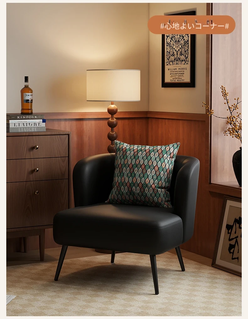デザイナーズ感漂う中古一人用ソファチェア - モダンでシンプルなレザー製、家でも使えるおしゃれな接待椅子。小さなスペースにもぴったりのリラックスアイテム!