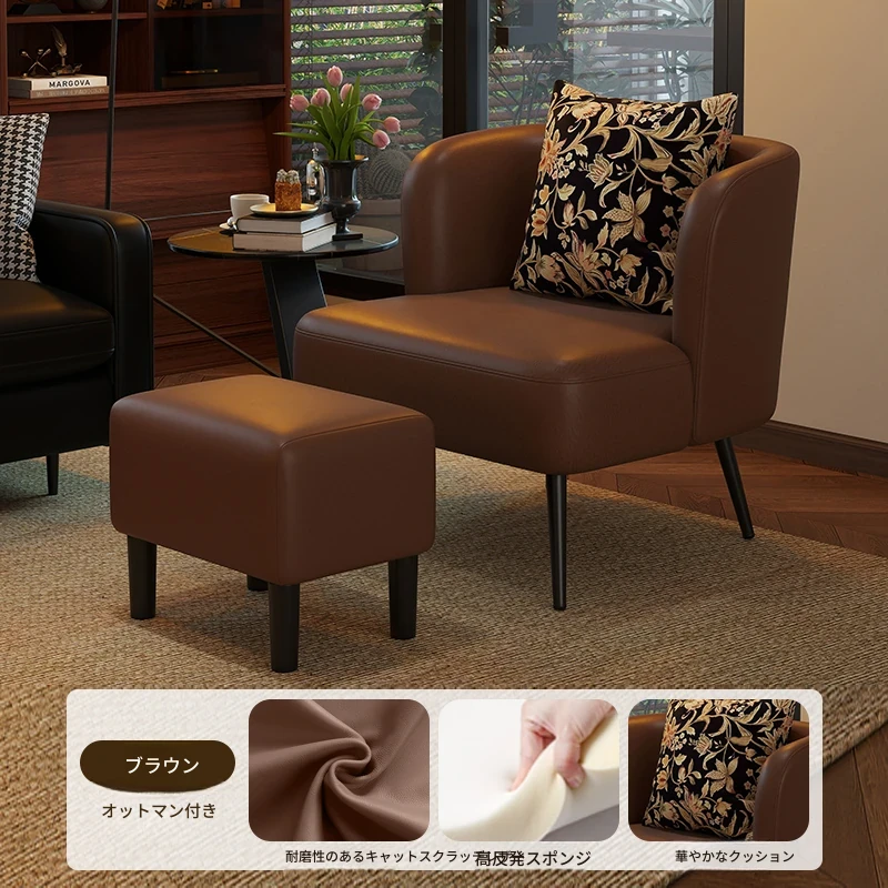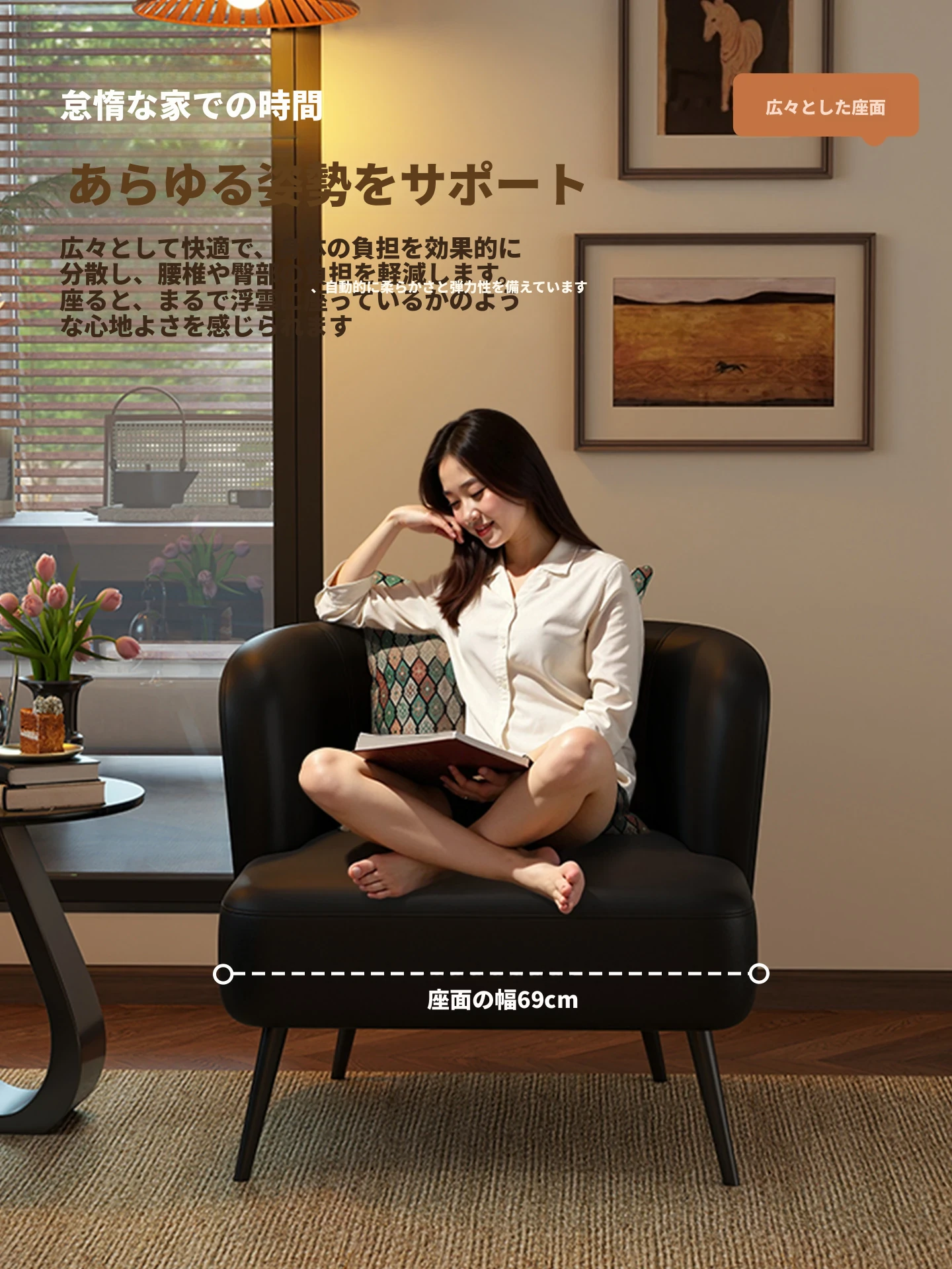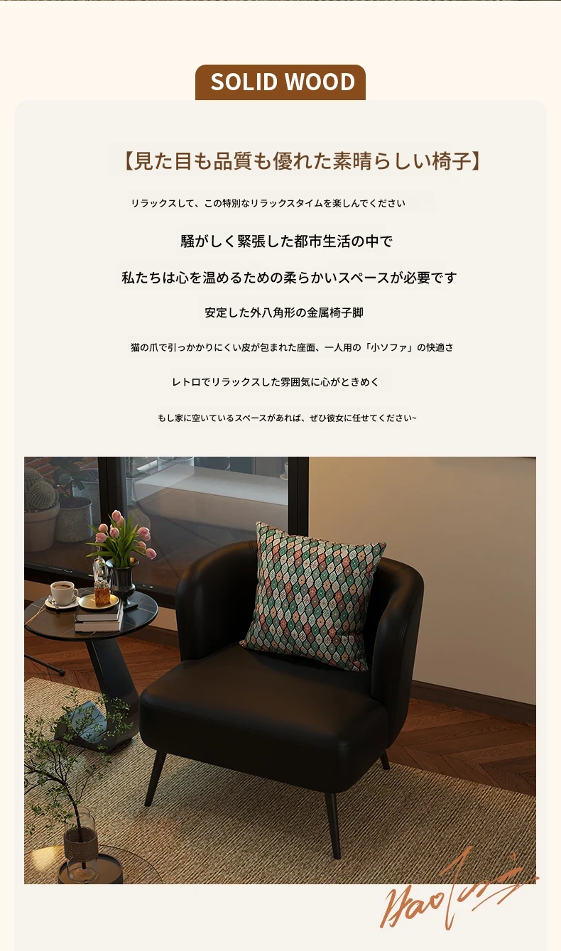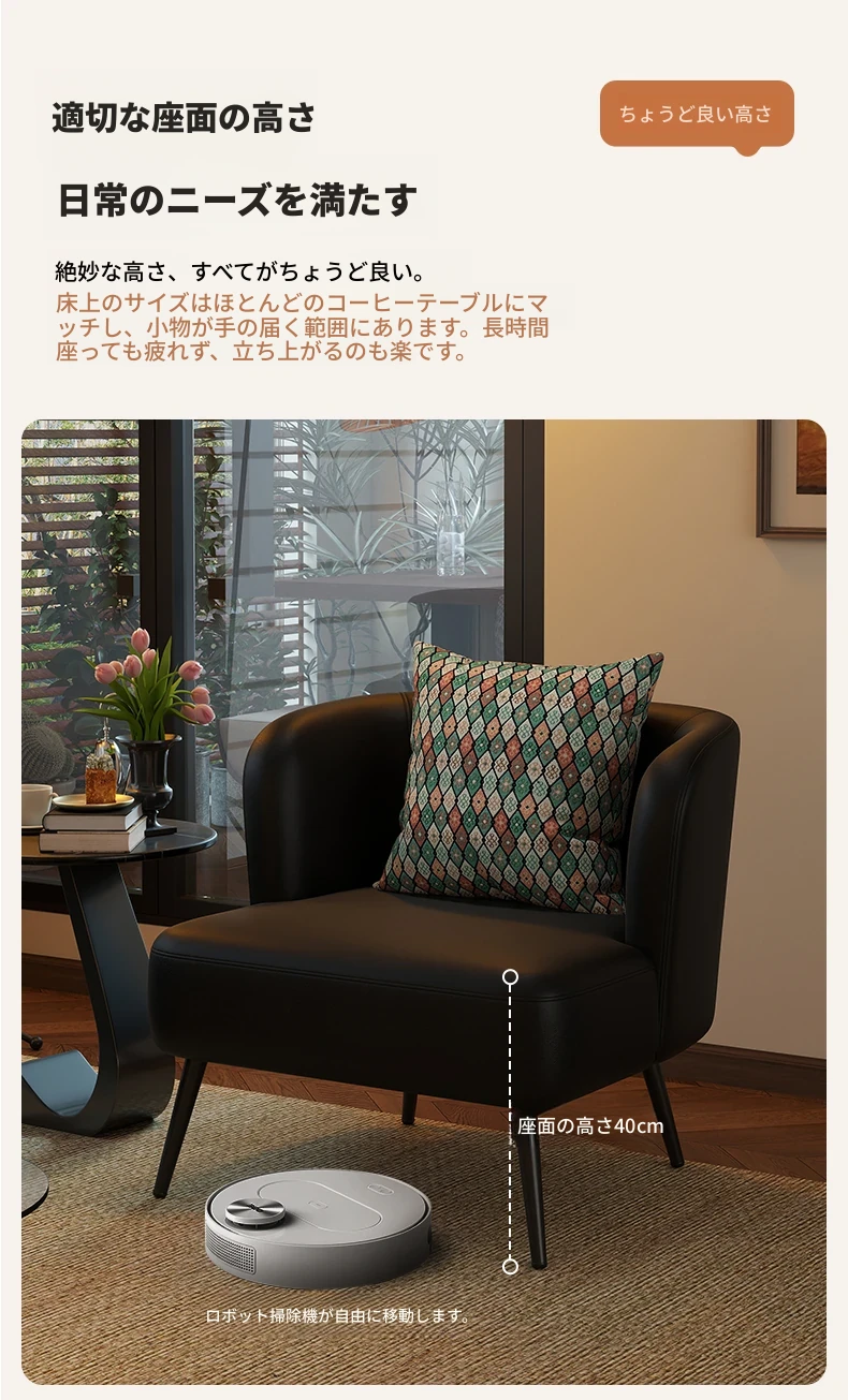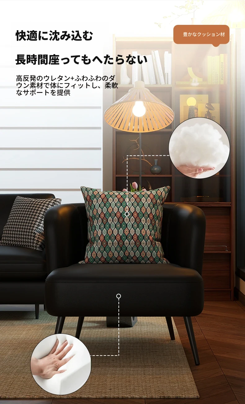 デザイナーズ感漂う中古一人用ソファチェア - モダンでシンプルなレザー製、家でも使えるおしゃれな接待椅子。小さなスペースにもぴったりのリラックスアイテム!