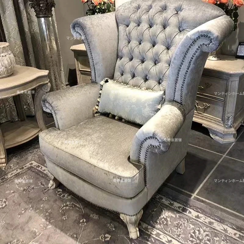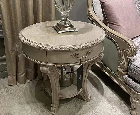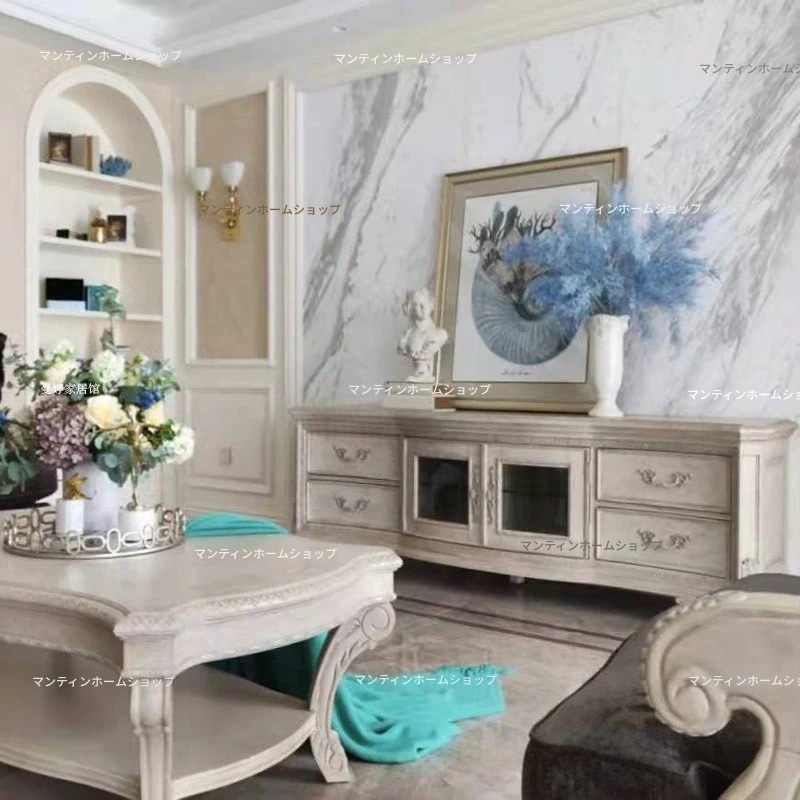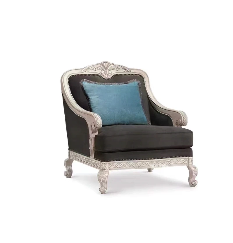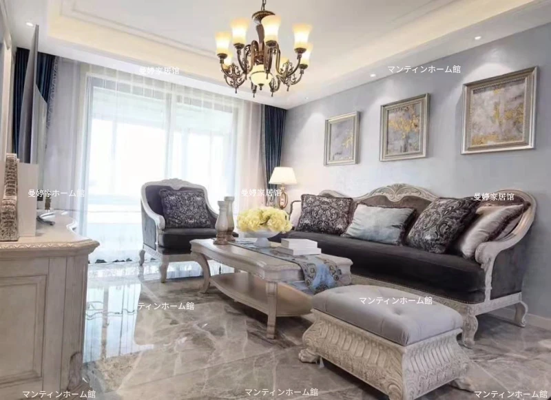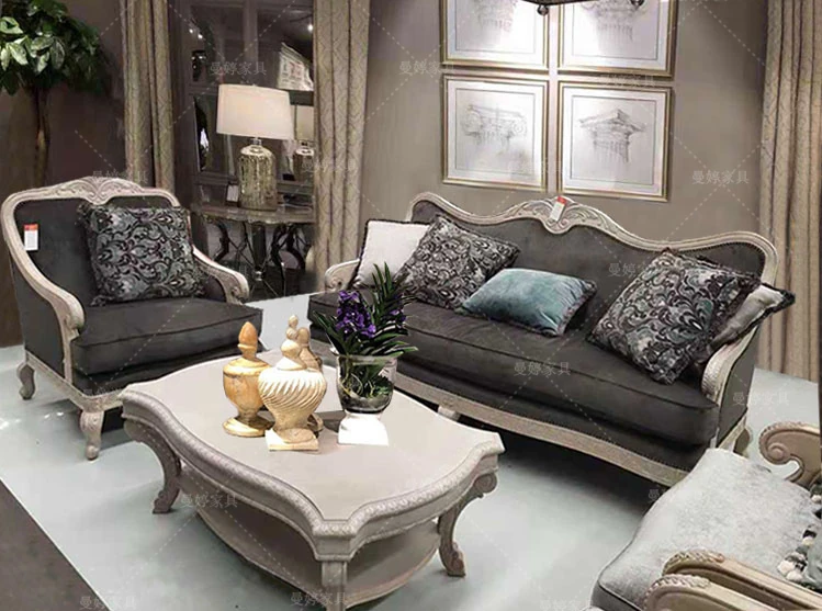 美しいアメリカン・フレンチスタイルのアート彫刻ソファ - 高級天然木製、復興の印象を与えるヴィンテージ風三人掛けソファセット。お部屋に優雅さと温かみをプラス!