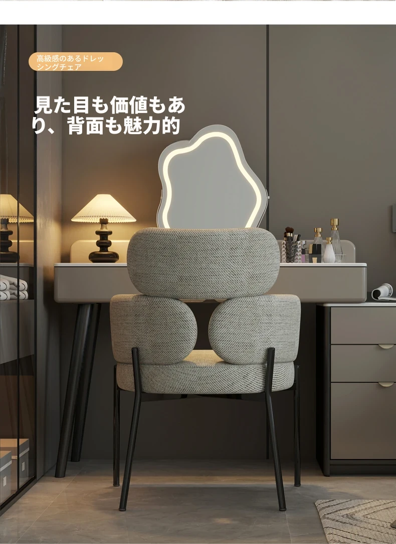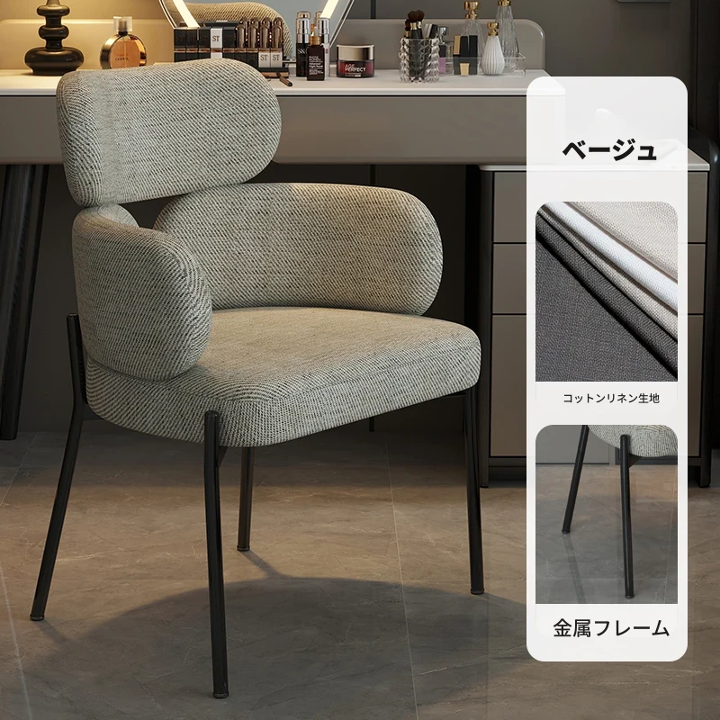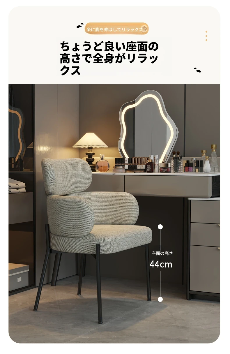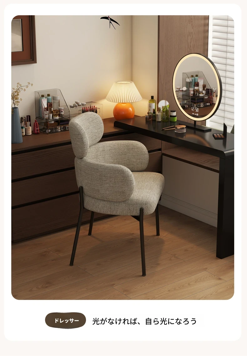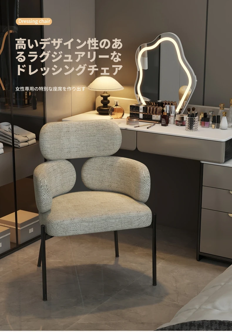高級感漂う家庭用寝室の軽奢華化粧椅子|衣装部屋にもぴったりな背もたれ付きのスタイリッシュな一人掛けソファ|ネイルアートにも最適な贅沢なデザイン!