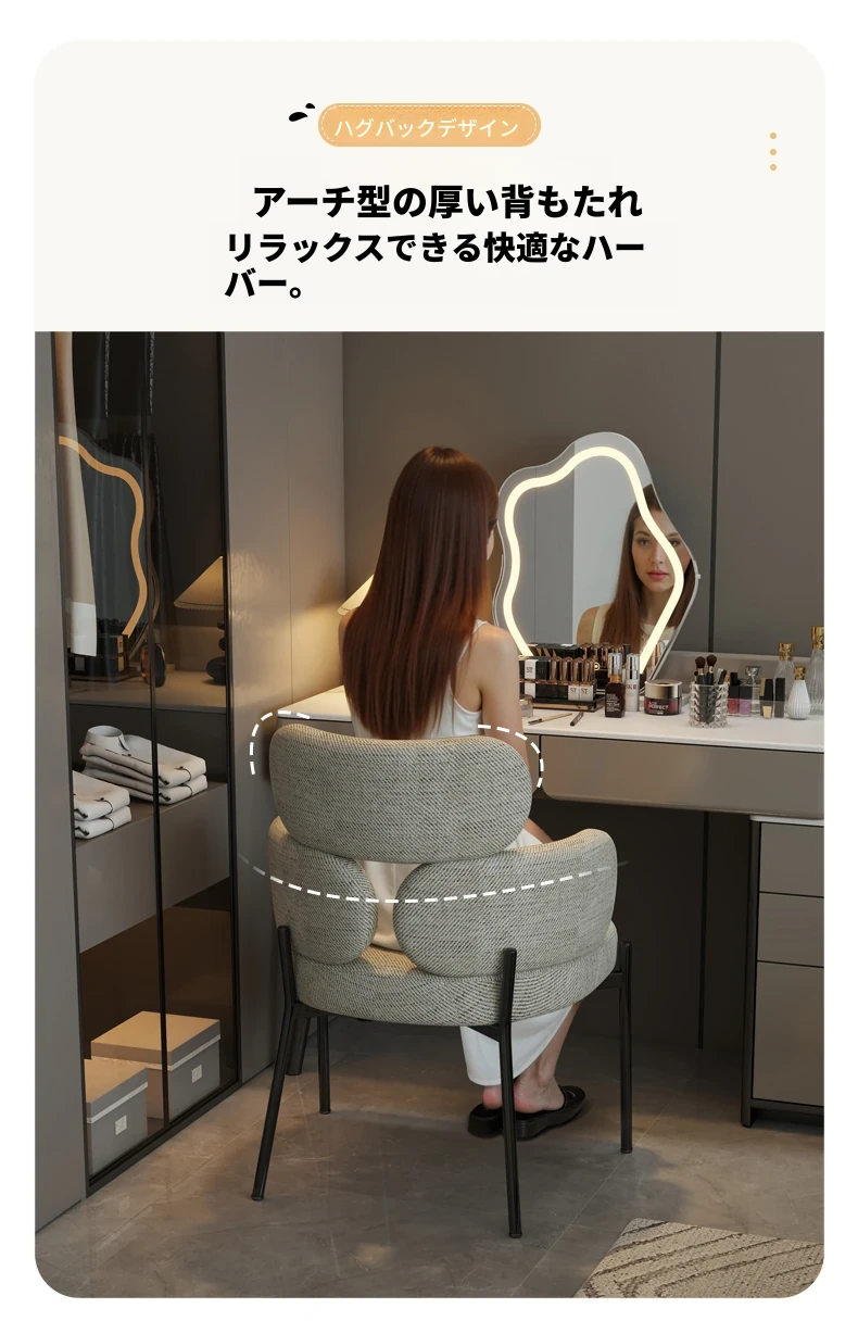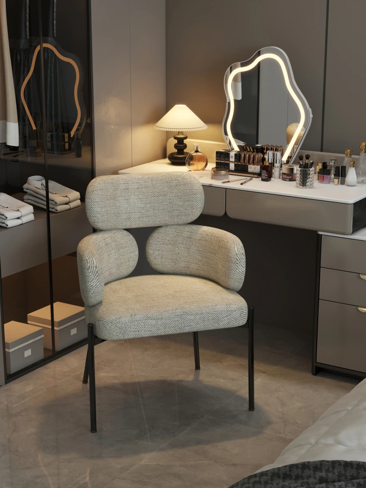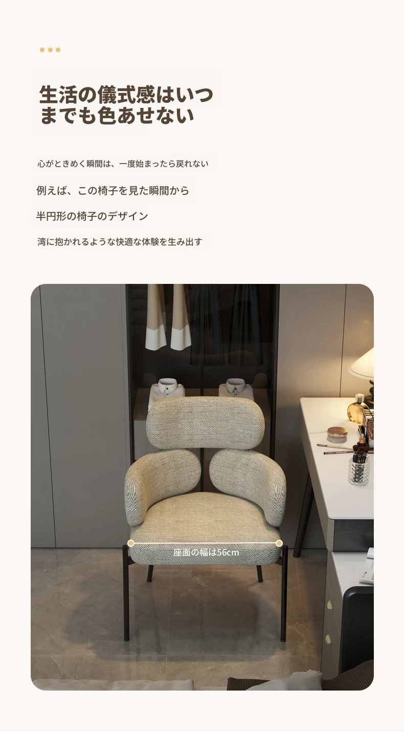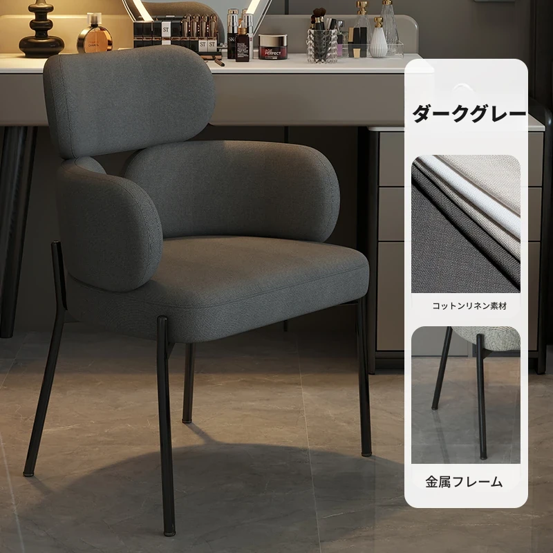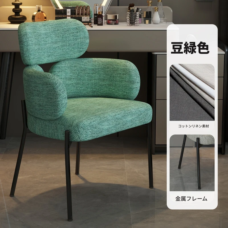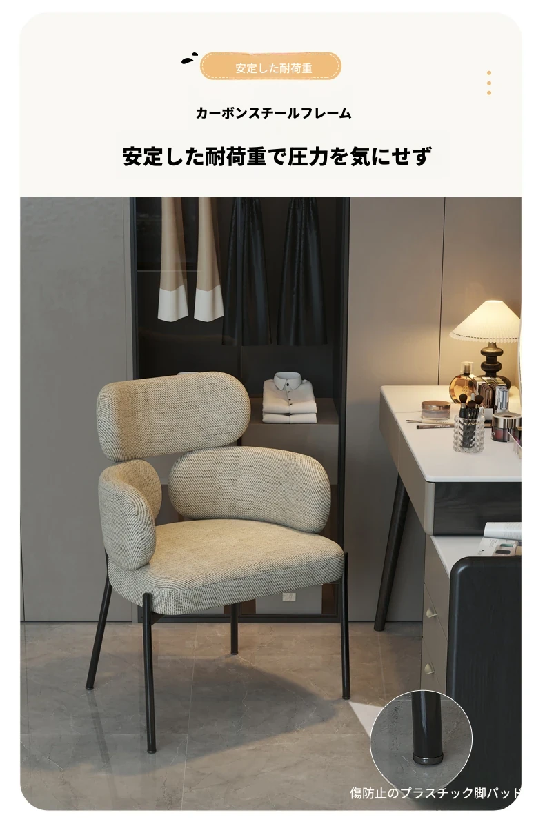 高級感漂う家庭用寝室の軽奢華化粧椅子|衣装部屋にもぴったりな背もたれ付きのスタイリッシュな一人掛けソファ|ネイルアートにも最適な贅沢なデザイン!