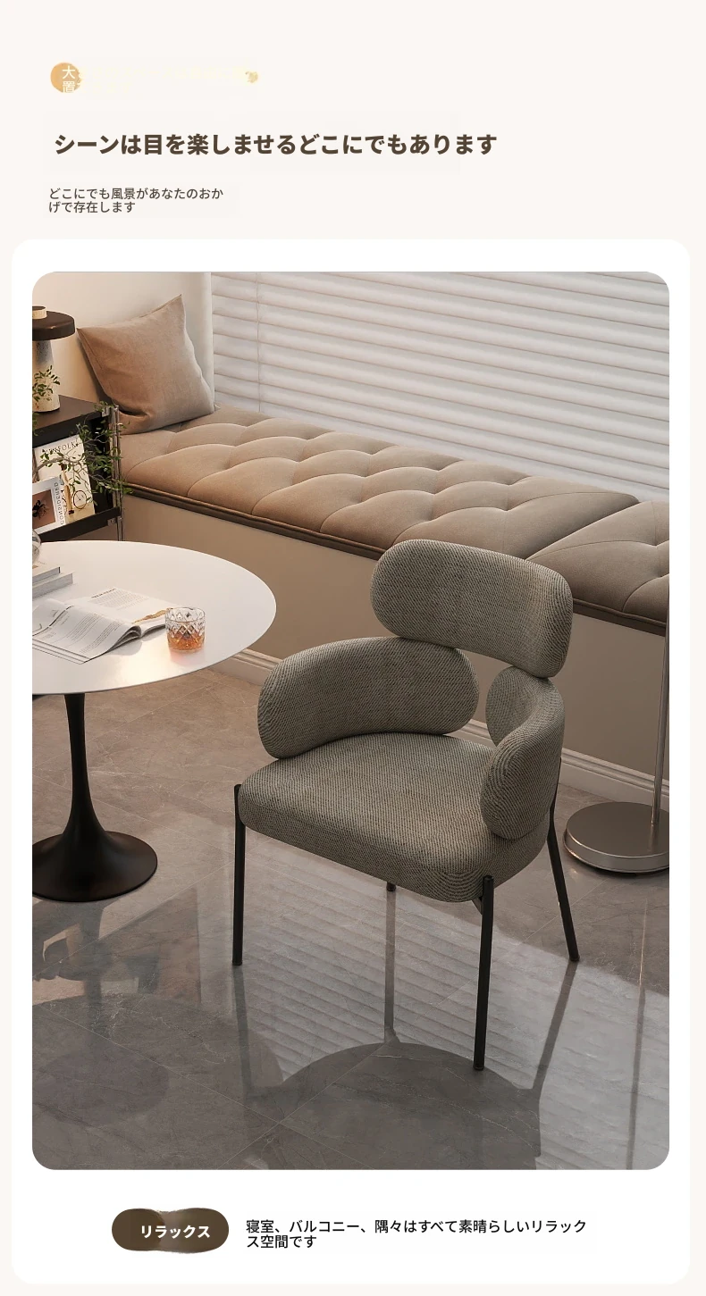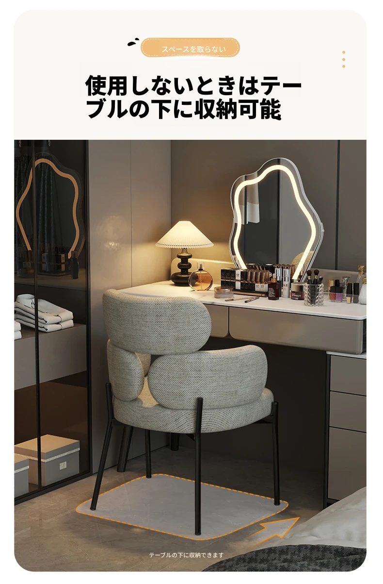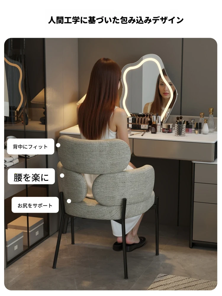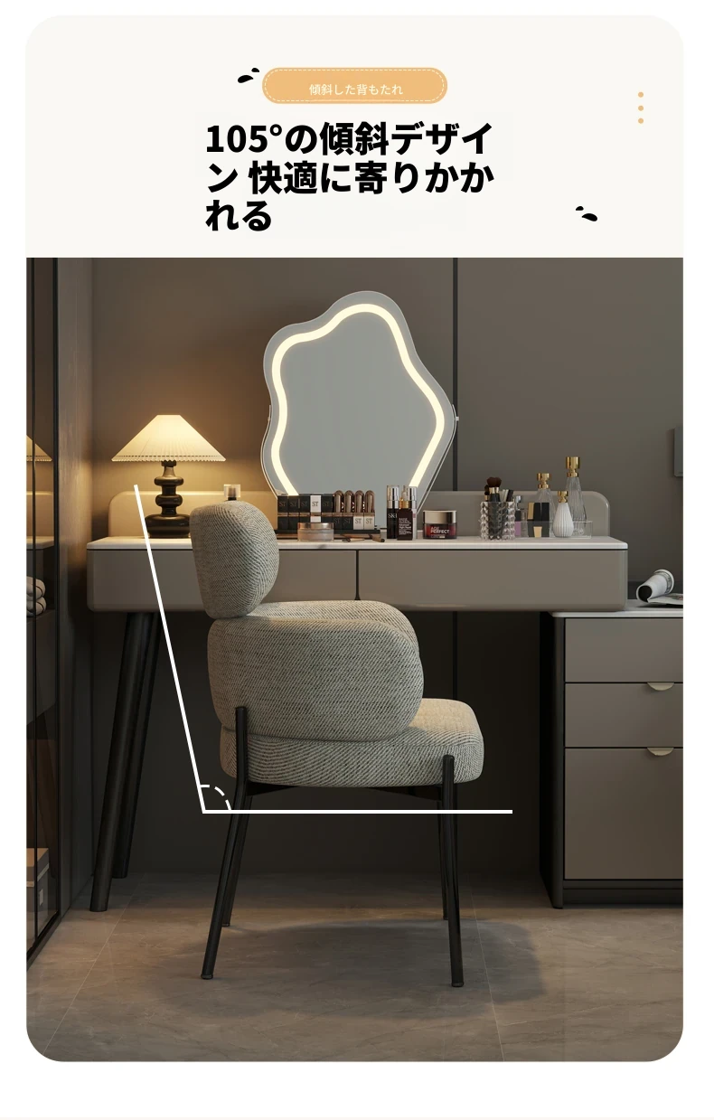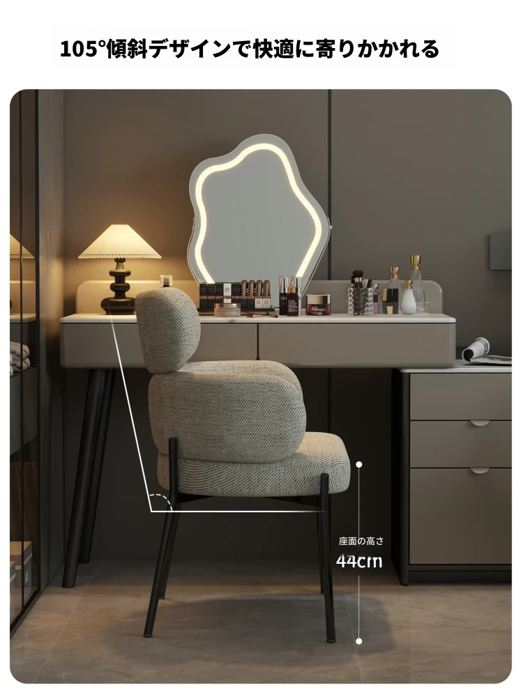 高級感漂う家庭用寝室の軽奢華化粧椅子|衣装部屋にもぴったりな背もたれ付きのスタイリッシュな一人掛けソファ|ネイルアートにも最適な贅沢なデザイン!