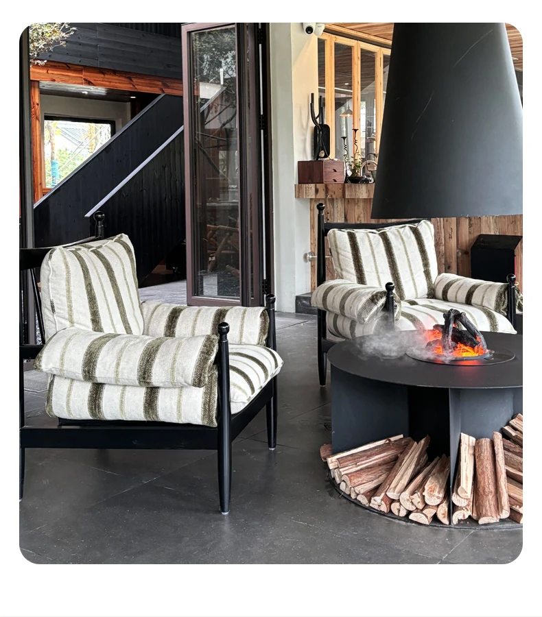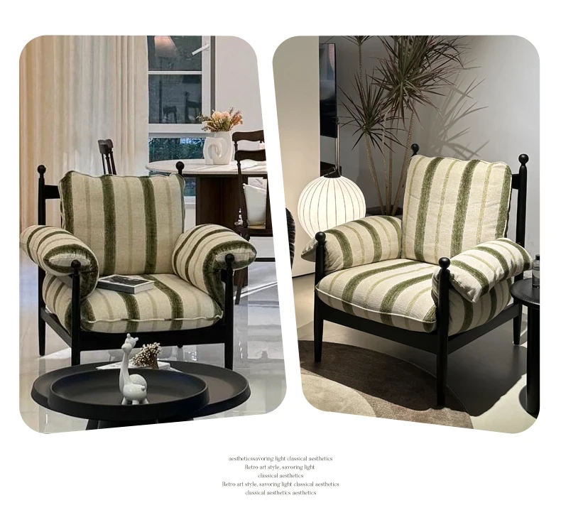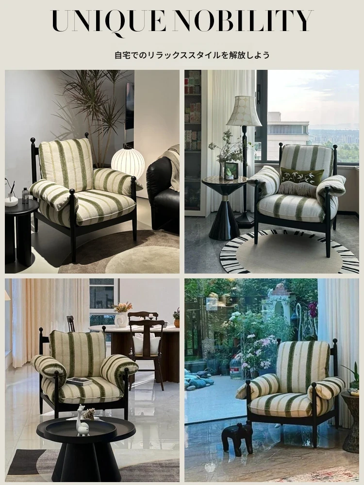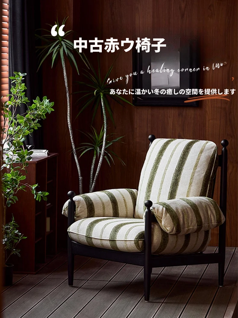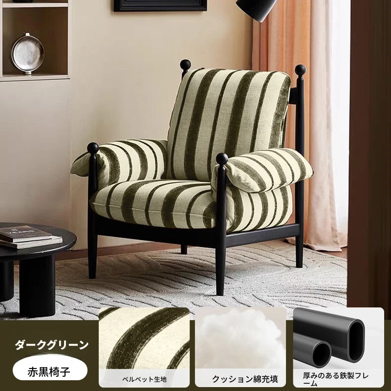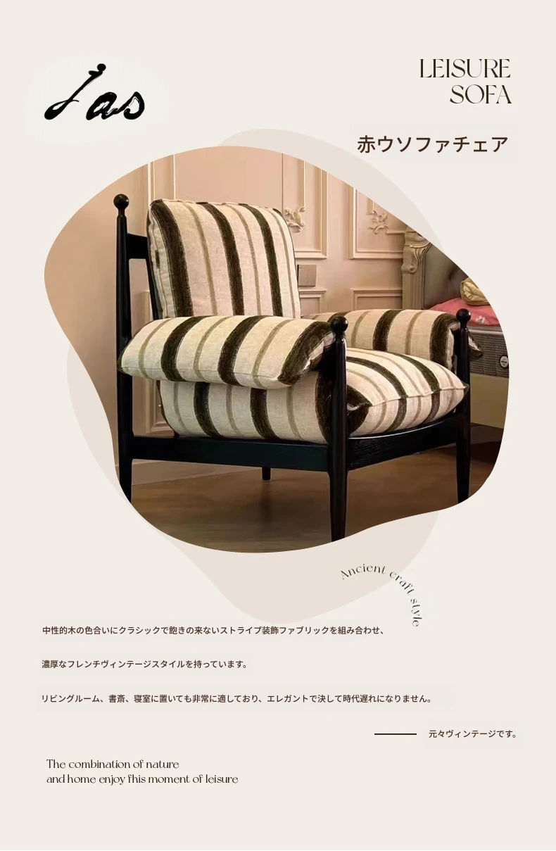 赤ウ休闲ソファチェア|実木製・高背・家庭用デザイナーフレンチヴィンテージスタイル|軽奢華・リラックスできる一人掛け椅子