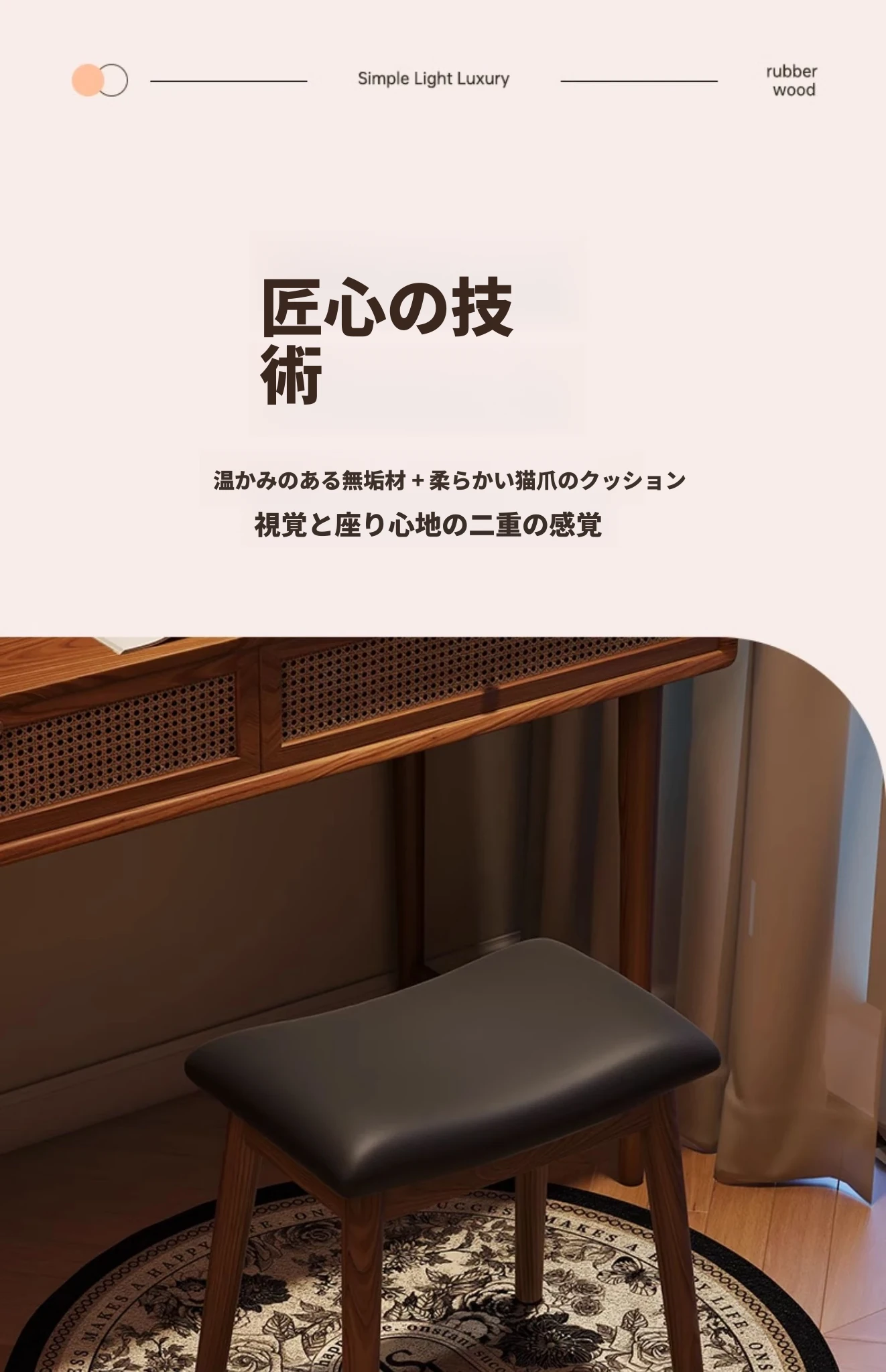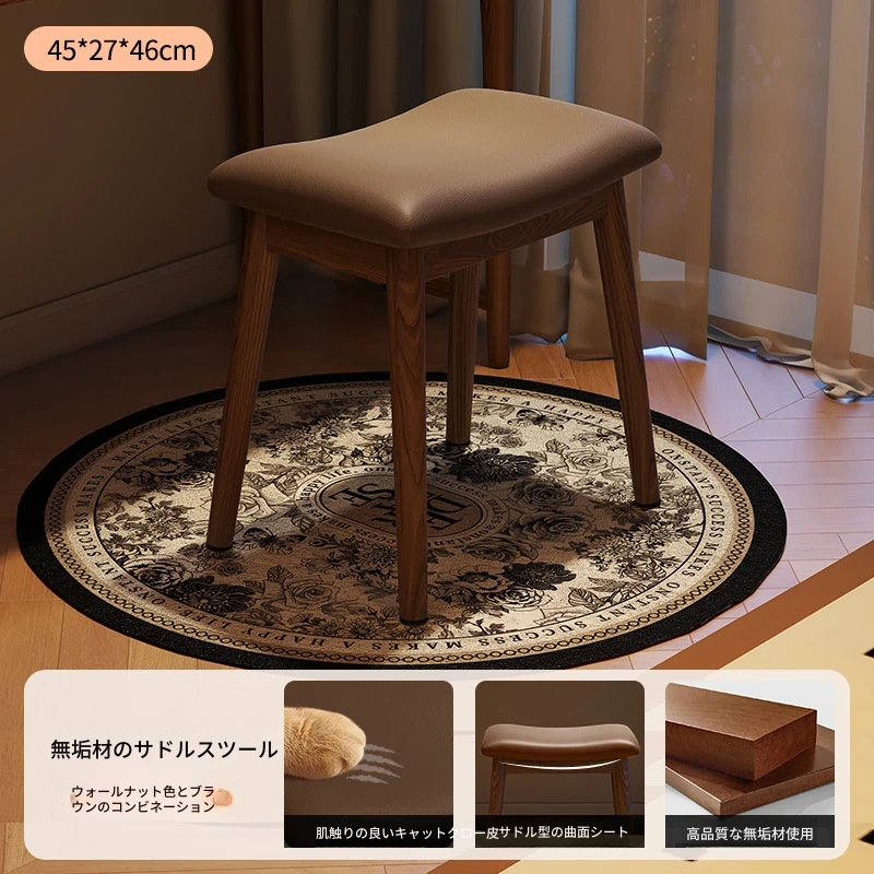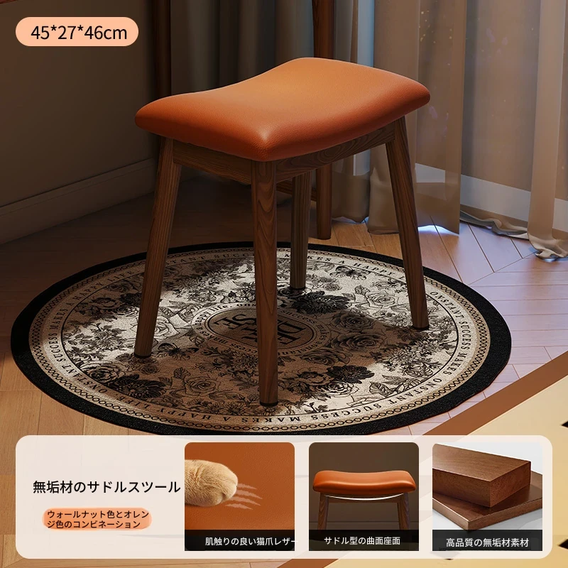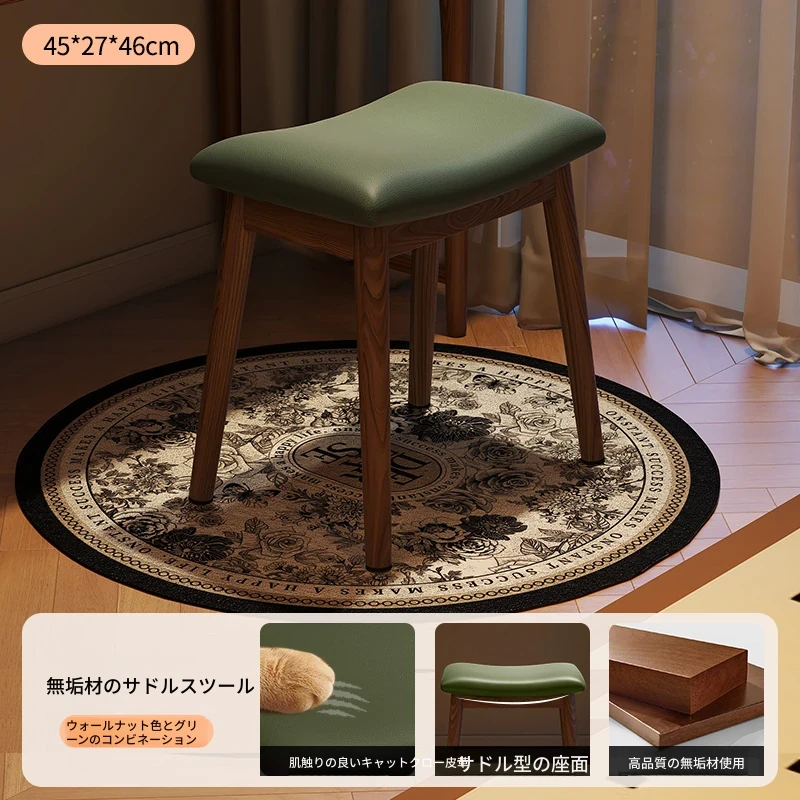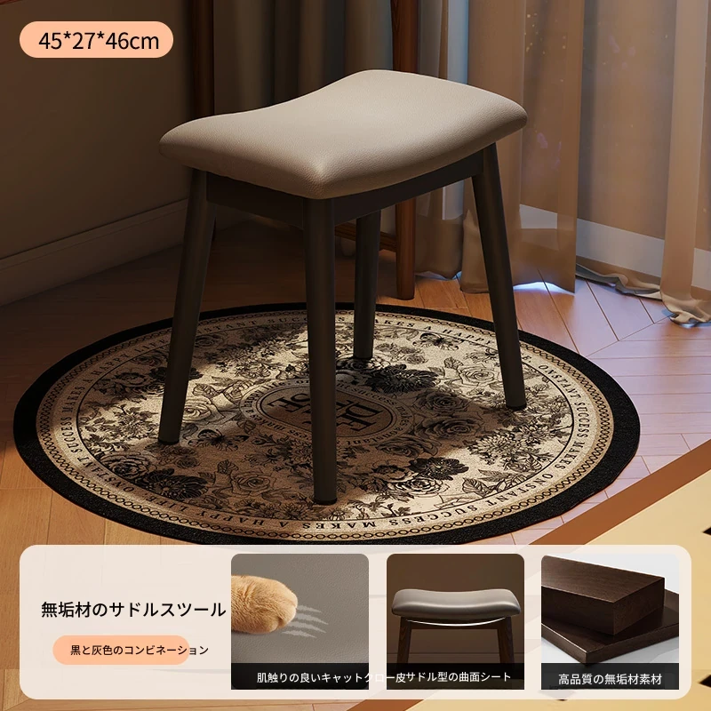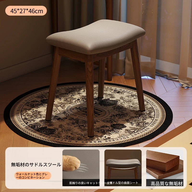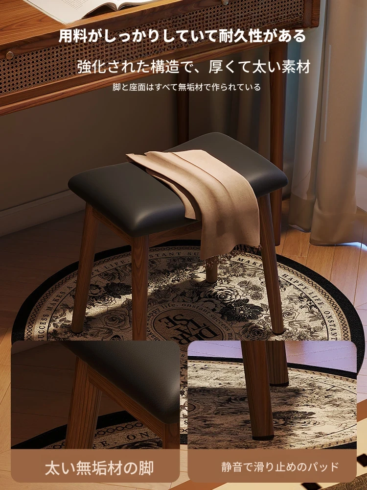 おしゃれなマドリッドスツール - 女子向け化粧台用の高級感あふれる無垢材製スツール。寝室やドレッシングルーム、さらにはダイニングテーブルにも最適な一品。優雅な佇まいであなたの空間を格上げ!