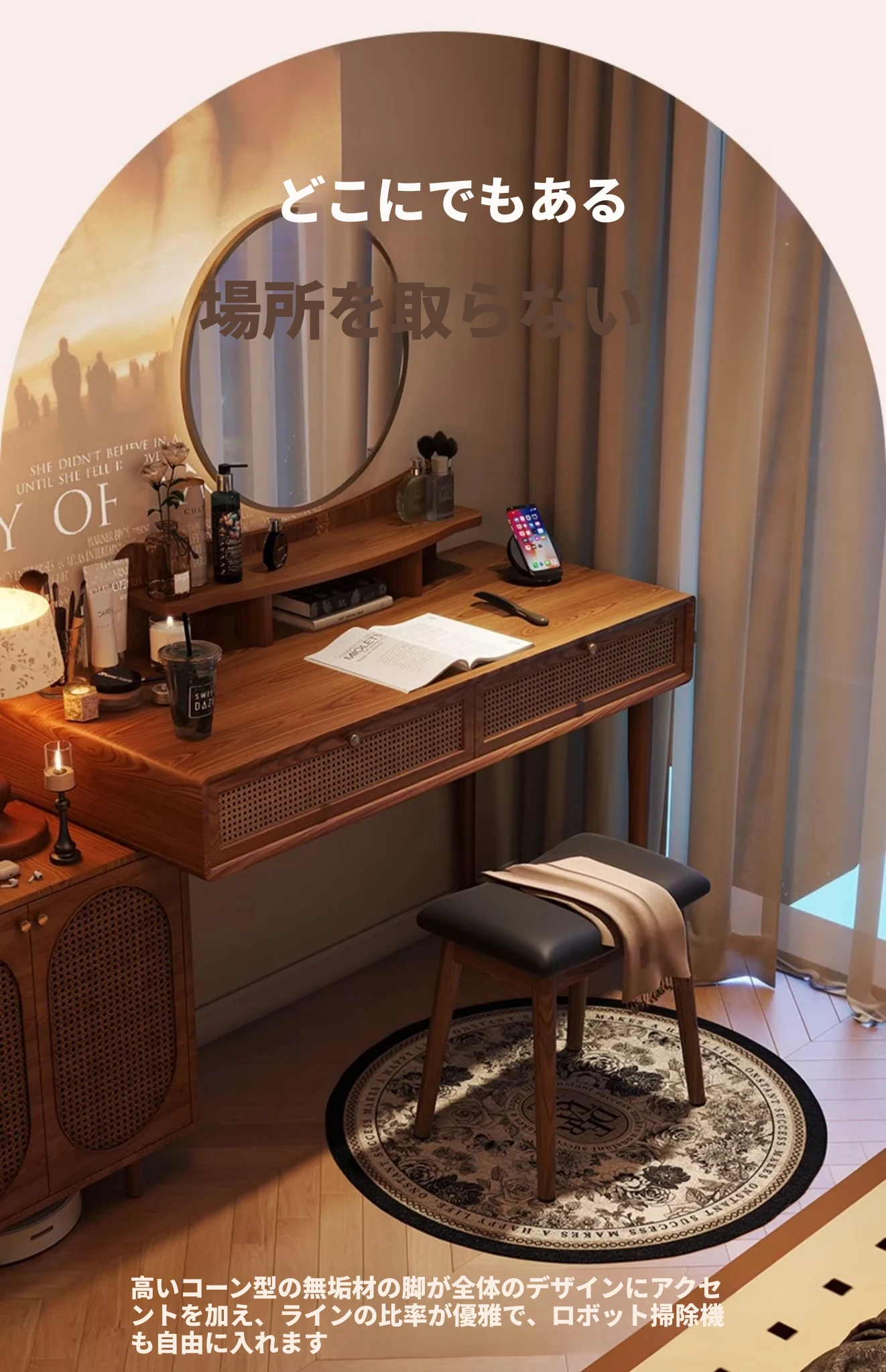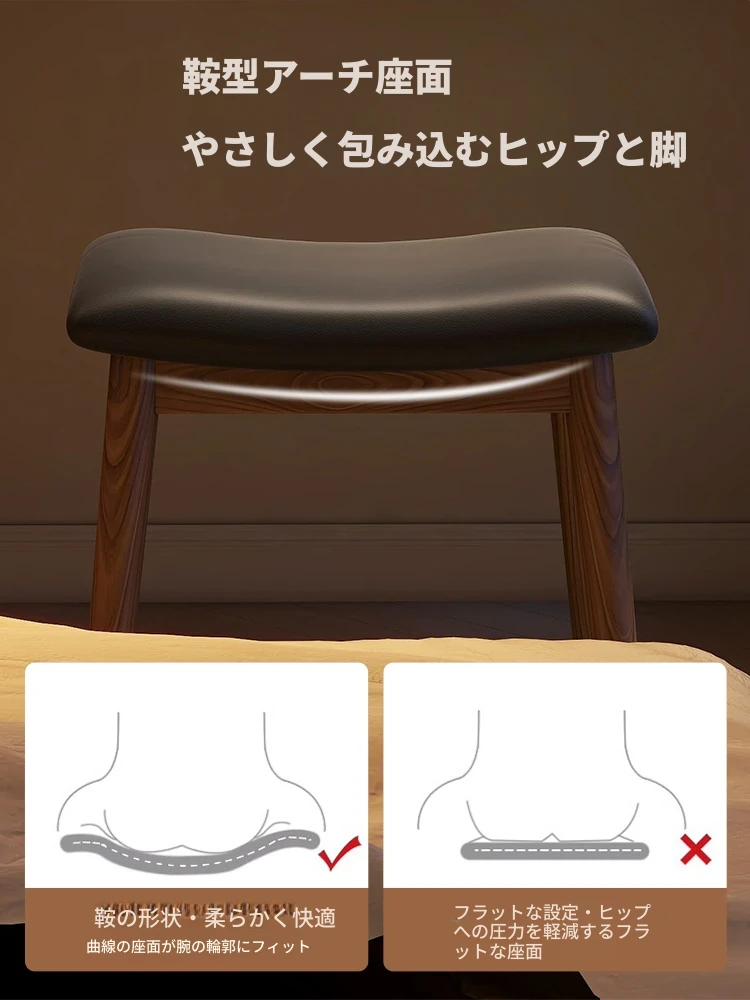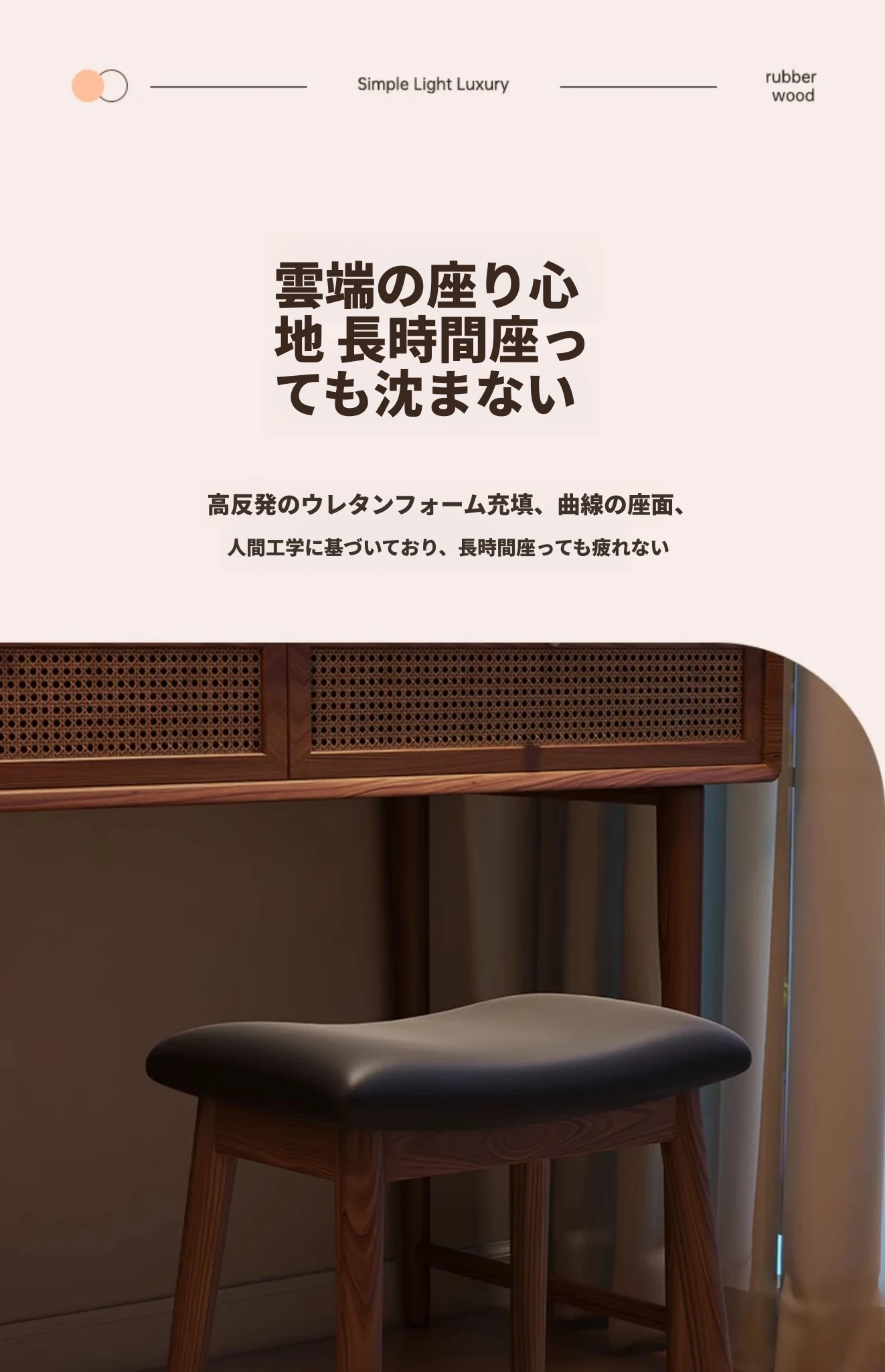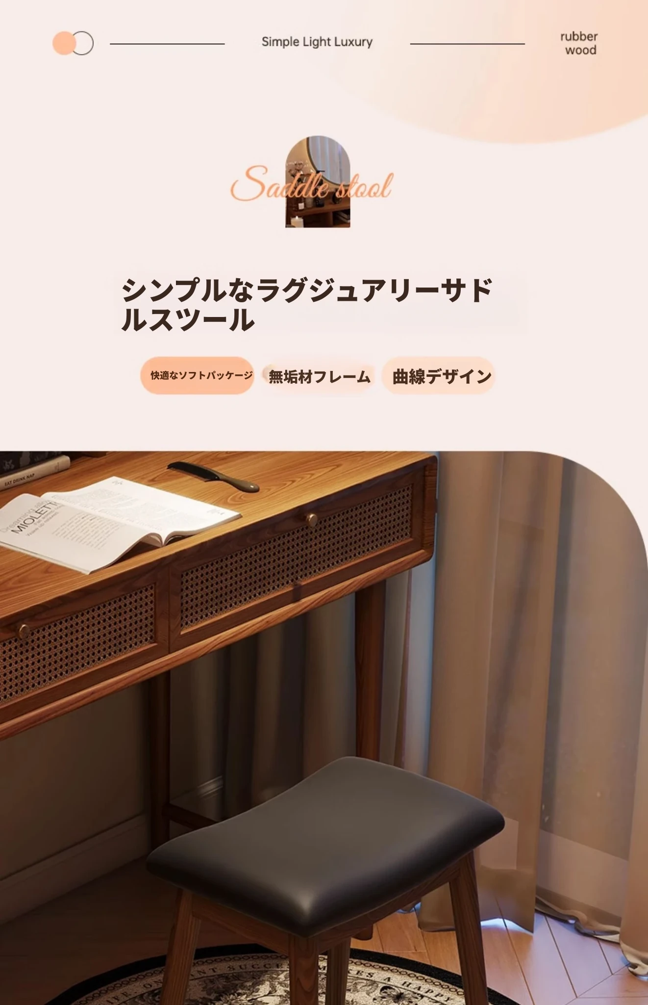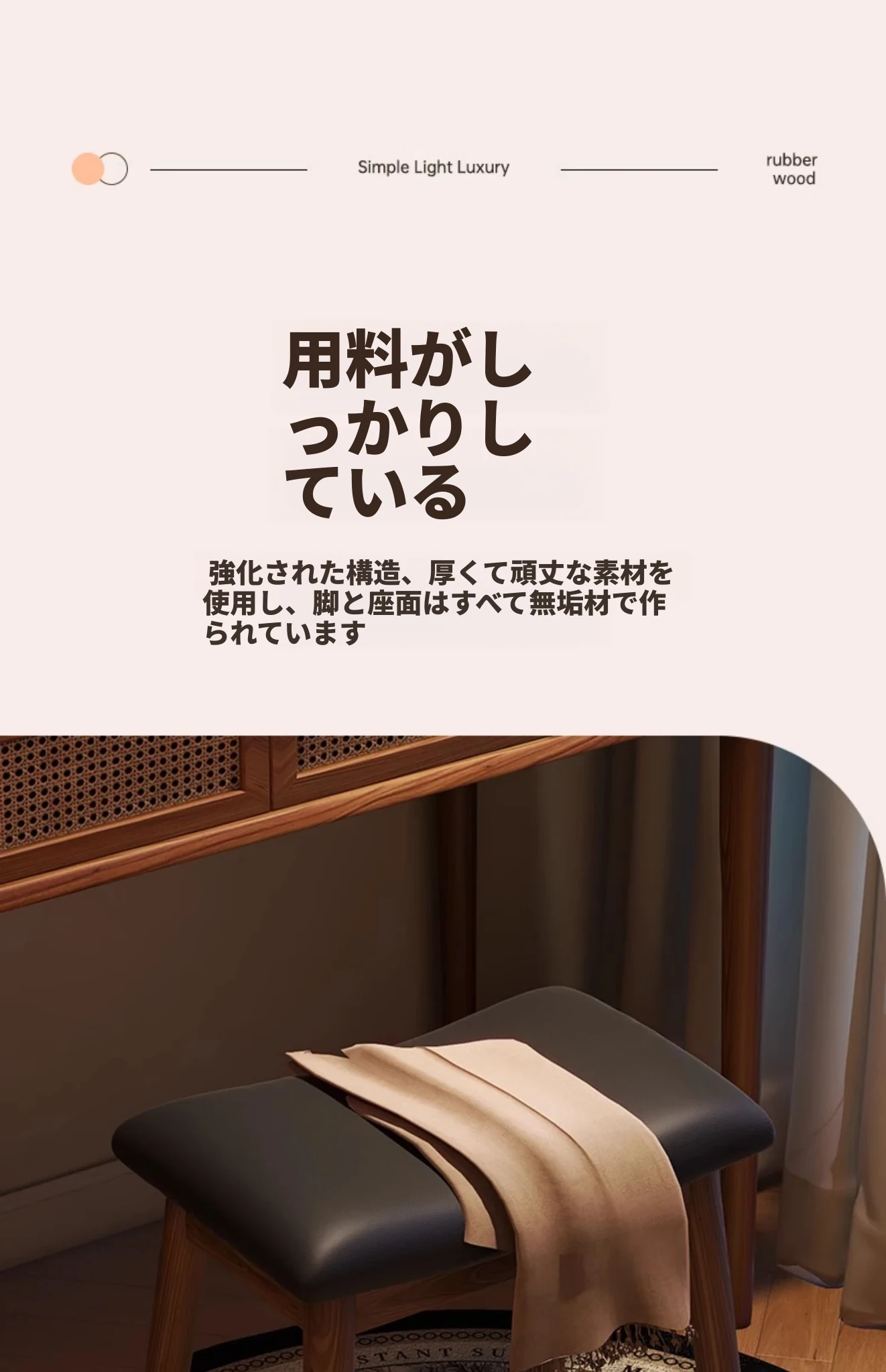 おしゃれなマドリッドスツール - 女子向け化粧台用の高級感あふれる無垢材製スツール。寝室やドレッシングルーム、さらにはダイニングテーブルにも最適な一品。優雅な佇まいであなたの空間を格上げ!