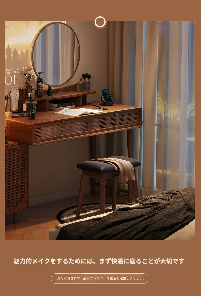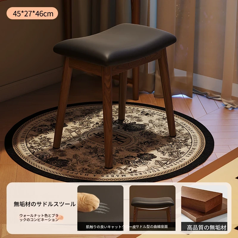 無垢材のドレッシングスツール - ブラック - ウォールナットフレーム
