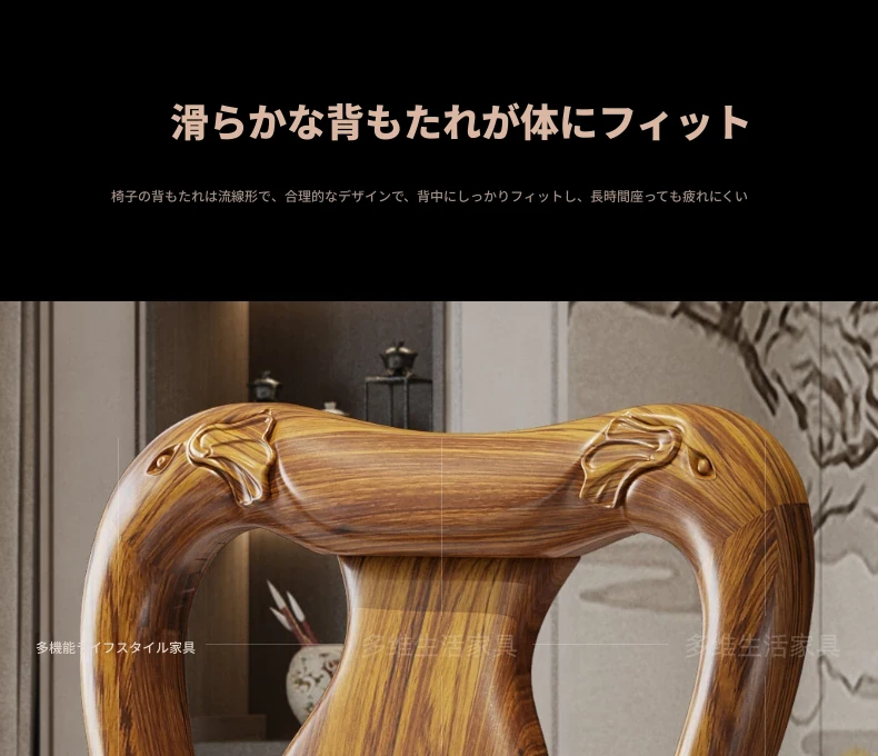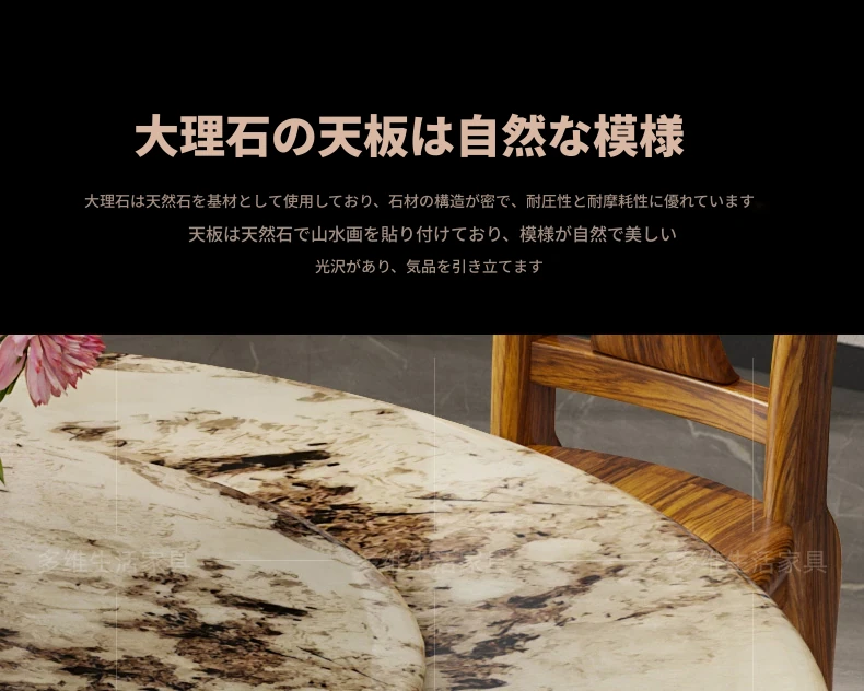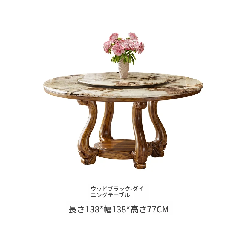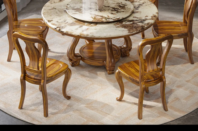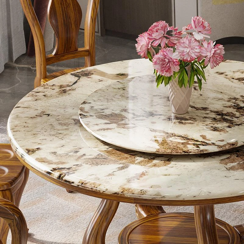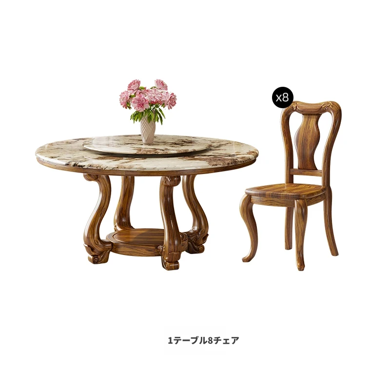 ウコン木大理石ダイニングテーブル&チェアセット 新中式ヴィラ用 家庭向け 食卓 モダン 回転式 天然木製 丸型テーブルで、洗練された食事空間を演出!