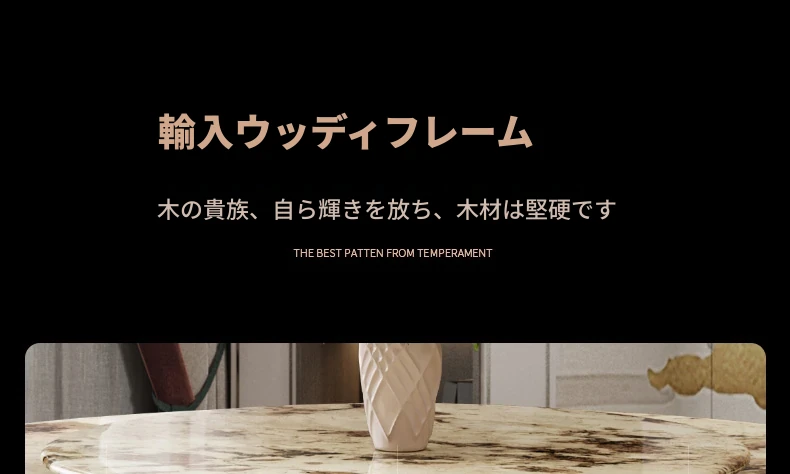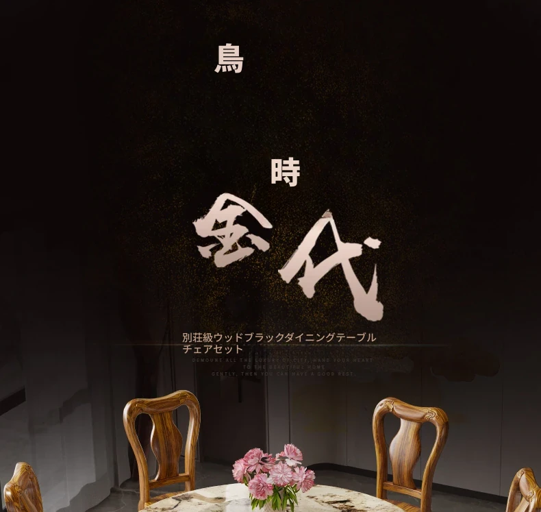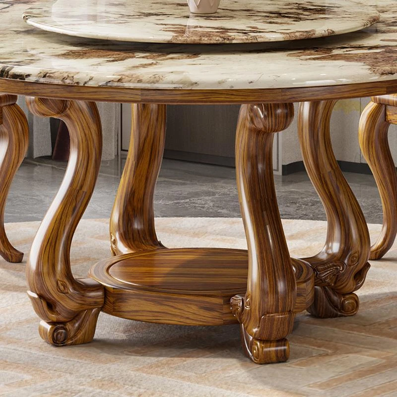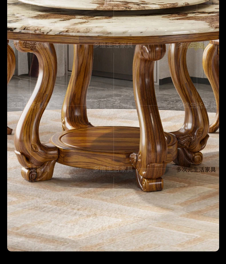新中式ウッ金材質の大理石円形ダイニングテーブル&チェアセット - 現代的で豪華な別荘リビングに最適な天然木製の食卓!