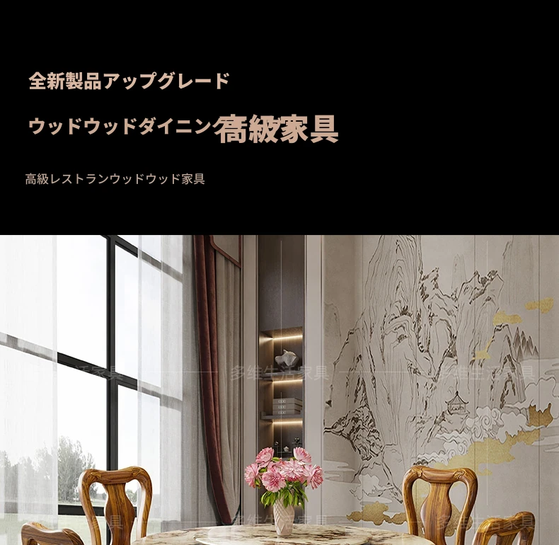 ウッディなウーキン木製ダイニングテーブル&大理石の新中式デザイン!現代的な回転式テーブル、家族団らんや友人との食事会に最適な実木テーブル&椅子セット。スタイリッシュで機能的な食卓をお楽しみください!