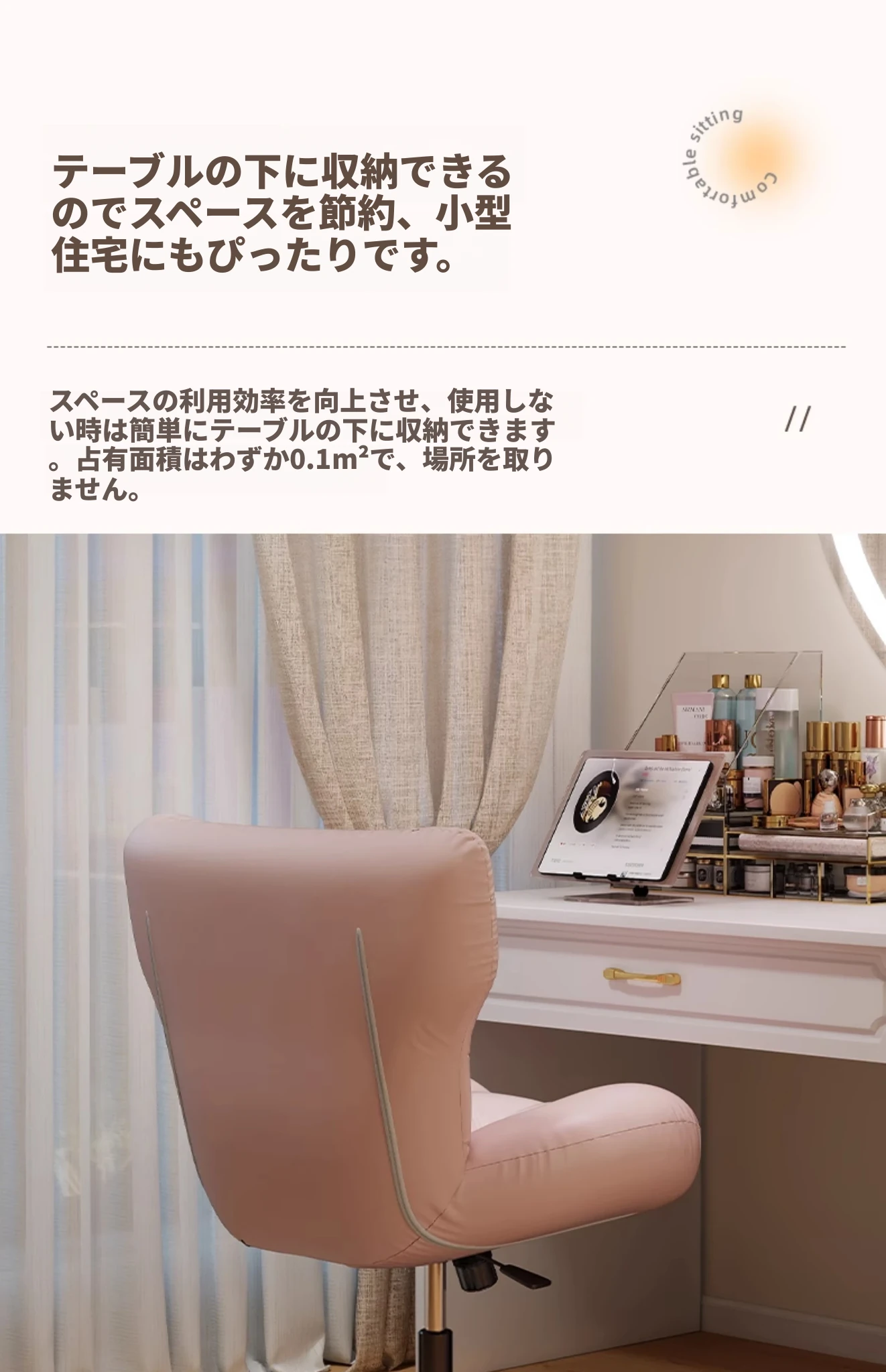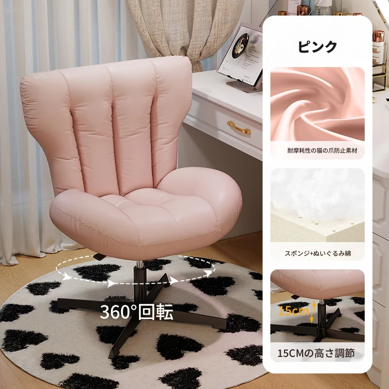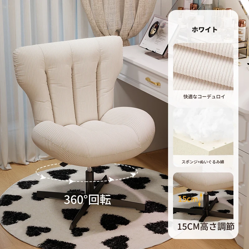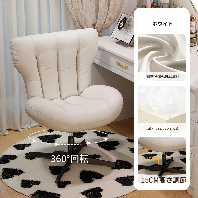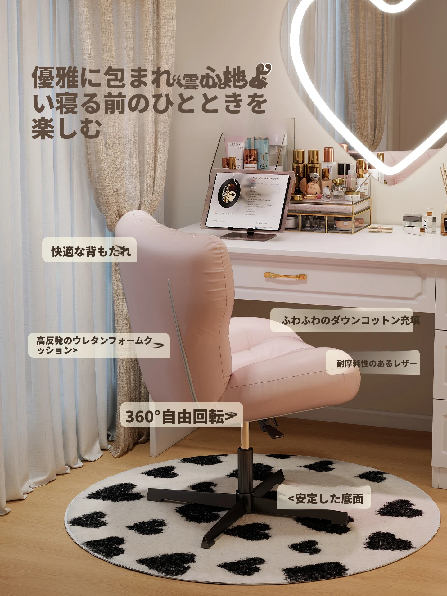 軽やかな上質感!昇降&回転機能付きの女性用ドレッサーチェア - おしゃれな寝室にぴったりの化粧台用スツール。快適な座り心地で、あなたの美容タイムをより特別に演出します!